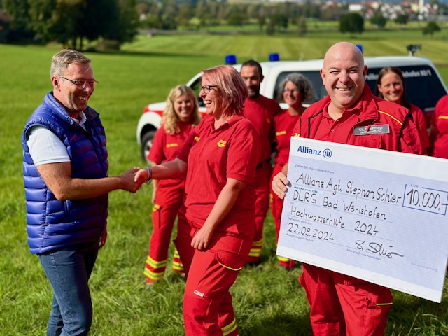Die Übergabe des Spendenschecks fand durch Stephan Schier, Inhaber der Agentur in Kaufbeuren, statt. Schier nominierte die DLRG Bad Wörishofen für die Spende und erklärte: „Es ist mir ein persönliches Anliegen, die lokalen Rettungsdienste zu unterstützen. Die Helfer haben während des Hochwassers im Juni unermüdlich gearbeitet und immense Hilfe geleistet.“