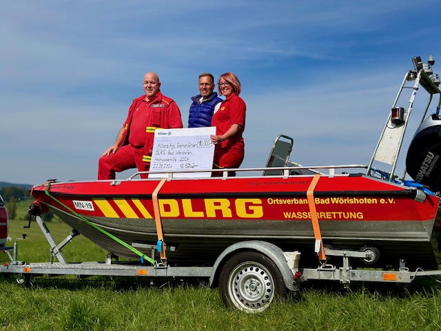 Die Allianz hat der Deutschen Lebens-Rettungs-Gesellschaft (DLRG) Bad Wörishofen eine Spende in Höhe von 10.000 Euro überreicht.