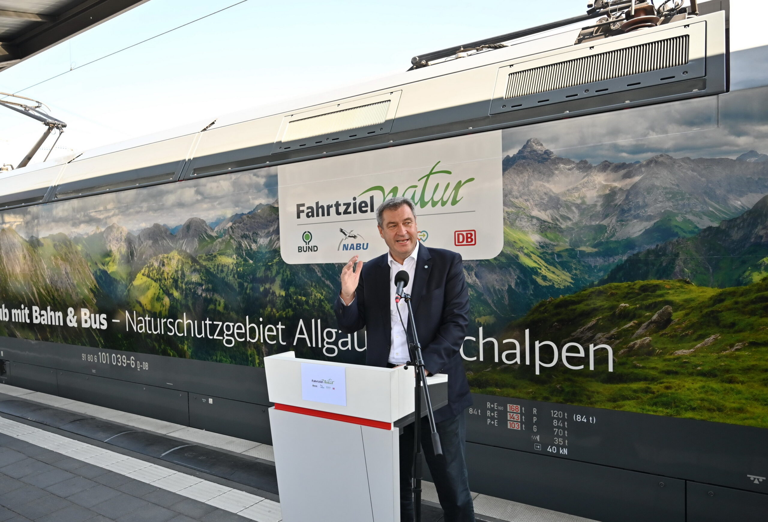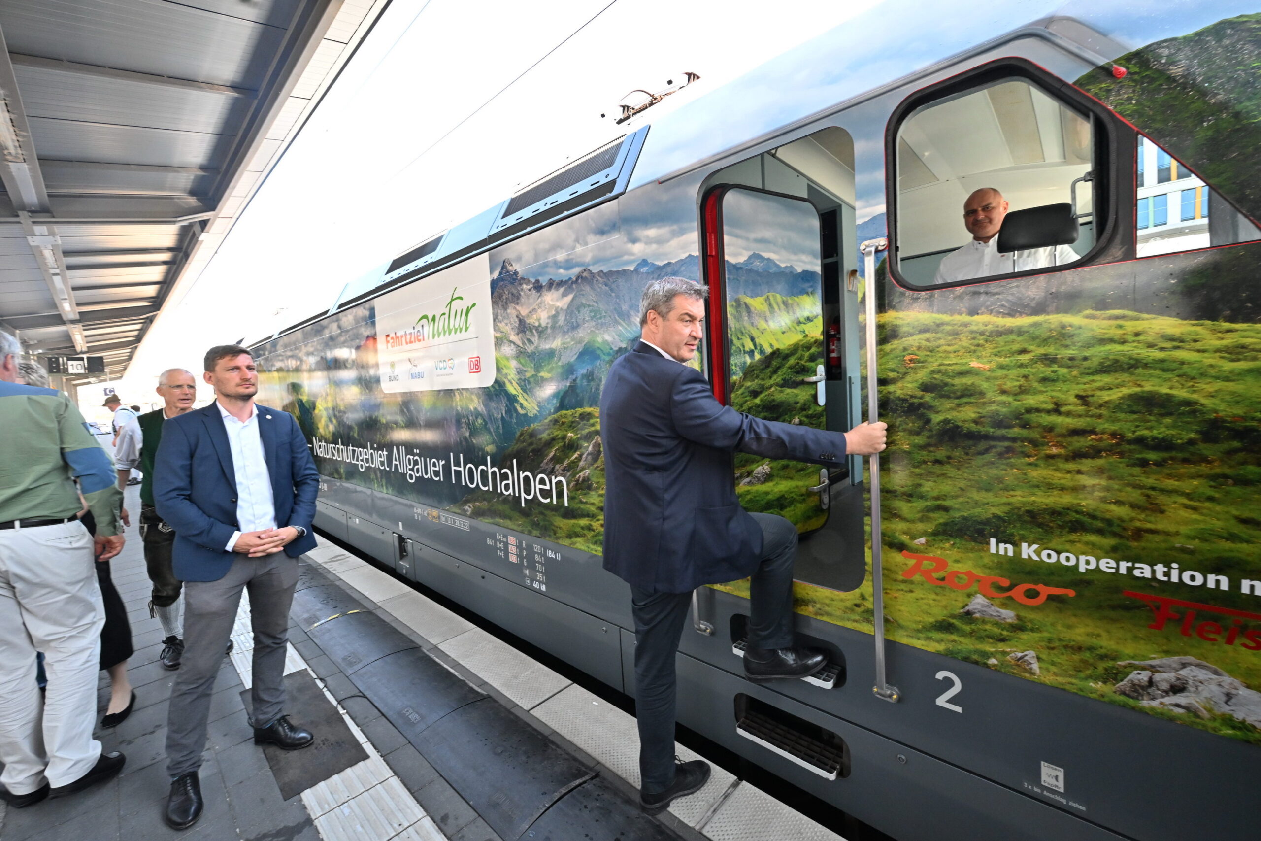 Prädikate, die der Bayerische Ministerpräsident Markus Söder bei der offiziellen Präsentation und Segnung der neuen Lok am Hauptbahnhof in München aufgriff: „Beste Werbung für eine Fahrt ins Allgäu – die Lok wird ab heute in ganz Deutschland auf das Allgäu als eine der schönsten Regionen Bayerns aufmerksam machen. Dass das Allgäu schön ist, weiß ich aus Erfahrung, denn ich bin oft und gerne dort. Diese Region steht für Tradition, Bodenständigkeit und sehr gutes Essen. Urlaub und klimafreundliche Mobilität: Dafür steht diese schöne Lok. Ich wünsche ihr allzeit eine sichere und pünktliche Fahrt!“, sagte Bayerns Ministerpräsident Dr. Markus Söder.