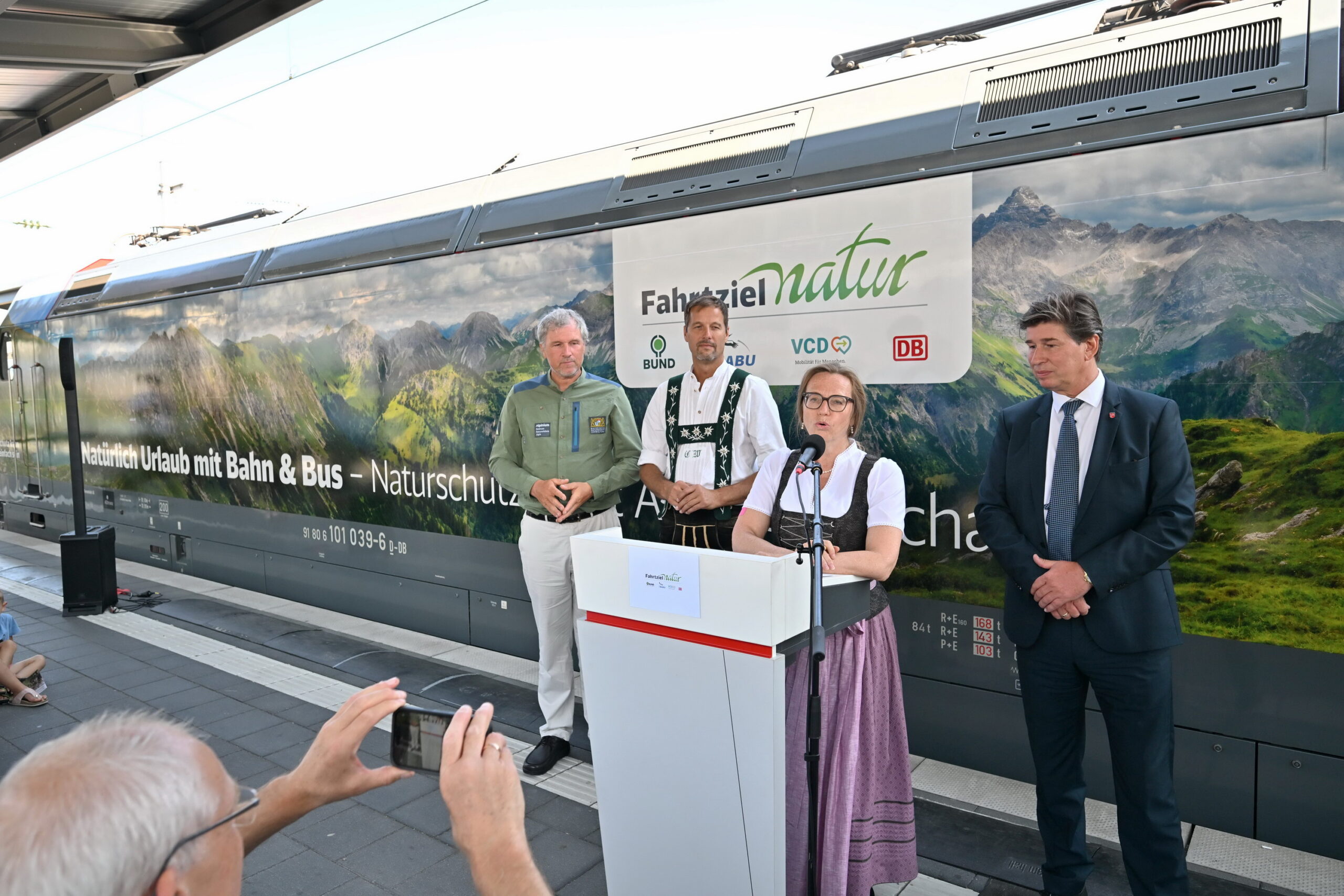 Mit der Auszeichnung 2023 sicherte sich das Naturschutzgebiet Allgäuer Hochalpen die für die Partnergemeinden kostenlose Gestaltung der Intercity-Lok, die jetzt im großen Rahmen vor zahlreichen Gästen aus Politik, Wirtschaft und Gesellschaft präsentiert wurde.