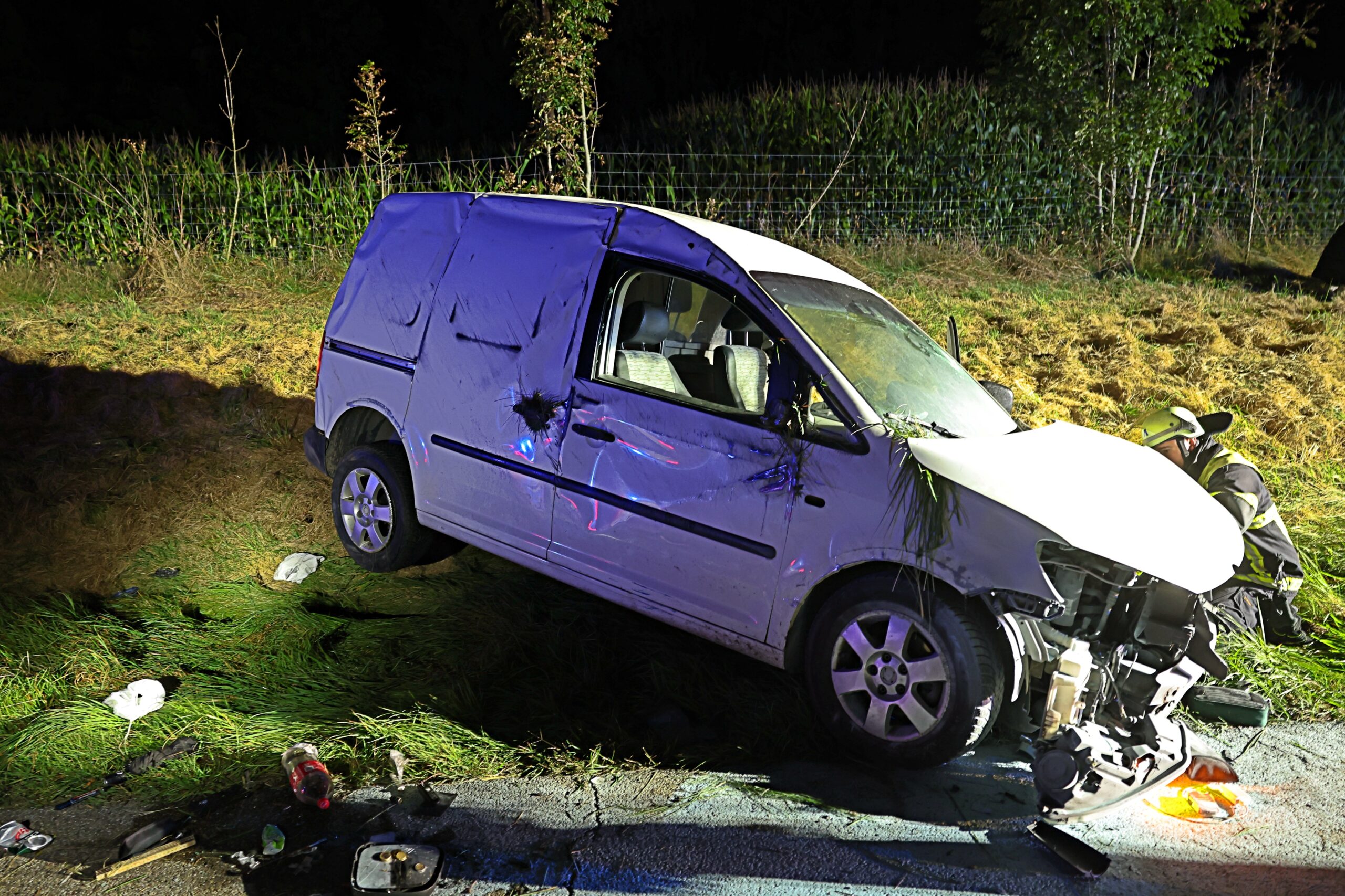 Am Sonntagabend, den 22.09.2024, gegen 22:30 Uhr, ereignete sich ein schwerer Verkehrsunfall auf der BAB 96 in Fahrtrichtung Lindau. Ein 34-jähriger Fahrer verlor kurz vor der Landesgrenze zu Baden-Württemberg die Kontrolle über sein Fahrzeug und prallte mehrfach gegen die Mittelschutzplanke. Infolge der Kollision überschlug sich das Auto mehrfach und kam schließlich auf dem Grünstreifen zum Stehen.