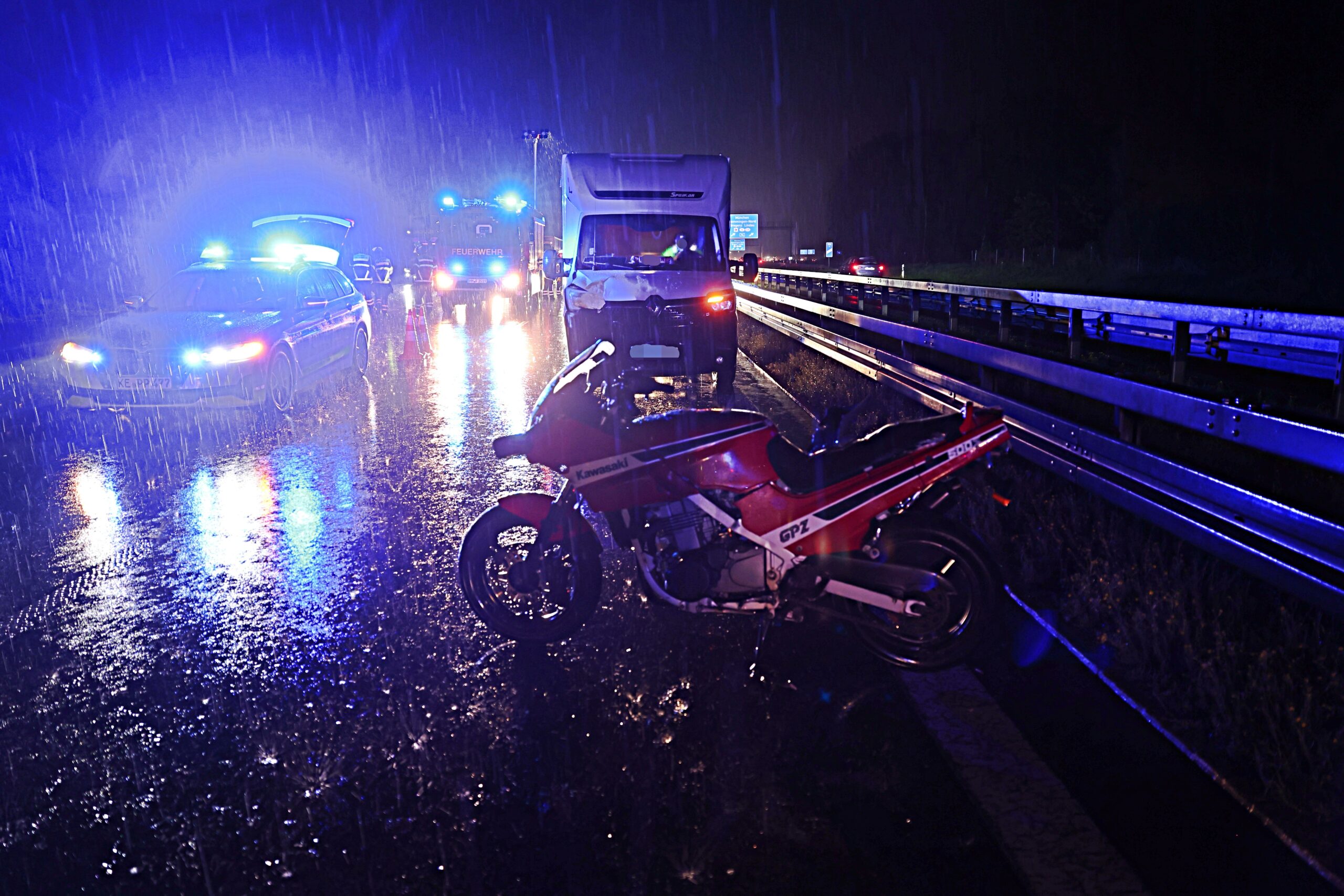 Am Montagabend, gegen 19.40 Uhr, kam es auf der A7 zu einem schweren Auffahrunfall, bei dem ein 50-jähriger Motorradfahrer verletzt wurde. Der Unfall ereignete sich, als ein 40-jähriger Fahrer eines Kleintransporters, der auf dem rechten Fahrstreifen in Richtung Würzburg unterwegs war, den vor ihm fahrenden Motorradfahrer übersah und auffuhr.