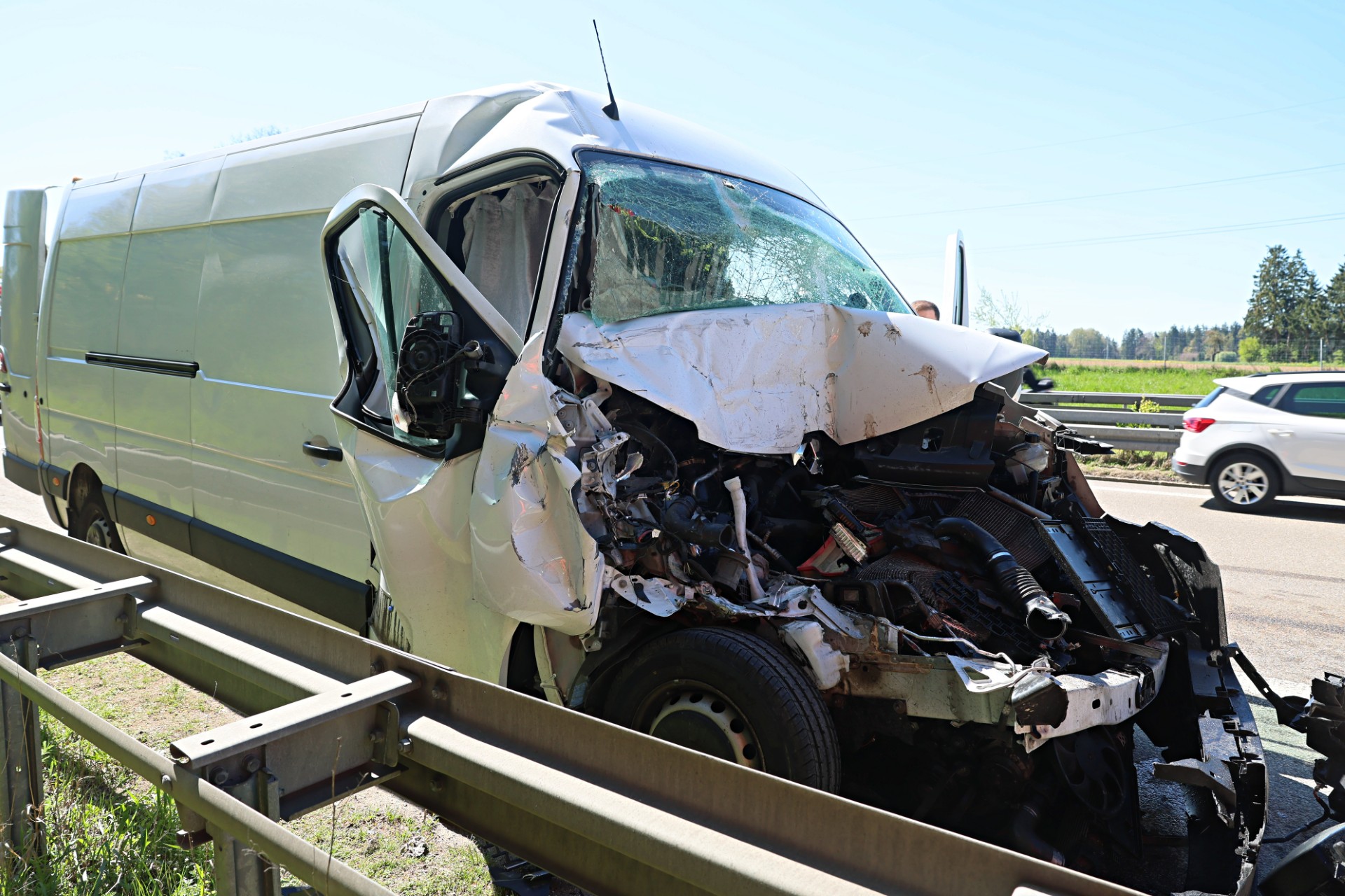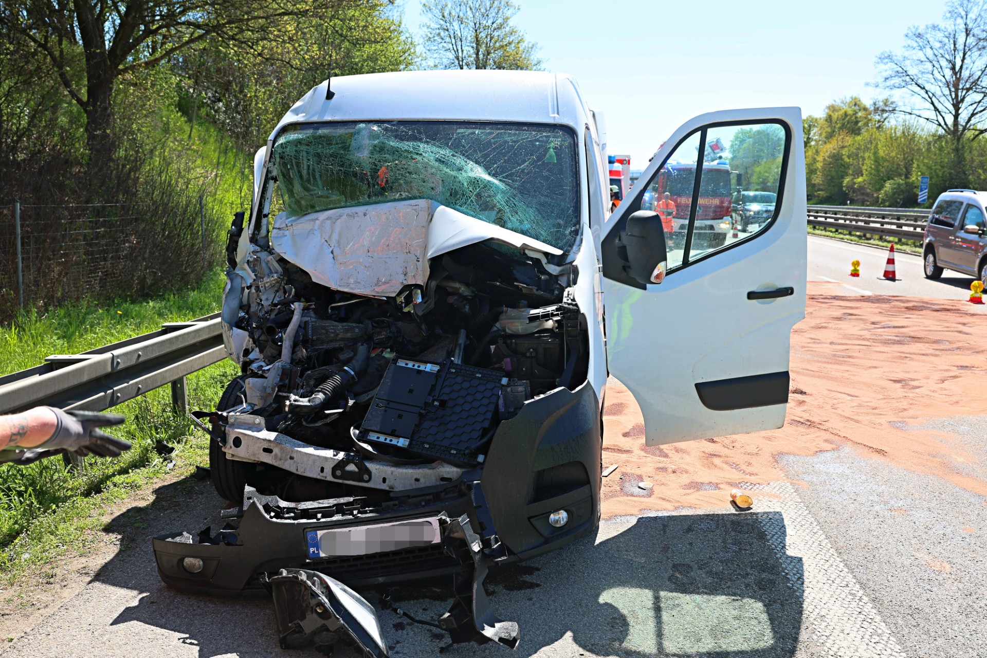 Nach Angaben der Polizei ereignete sich ein Auffahrunfall zwischen einem polnischen Transporter und einem Lkw. Dabei wurde eine Person leicht verletzt.