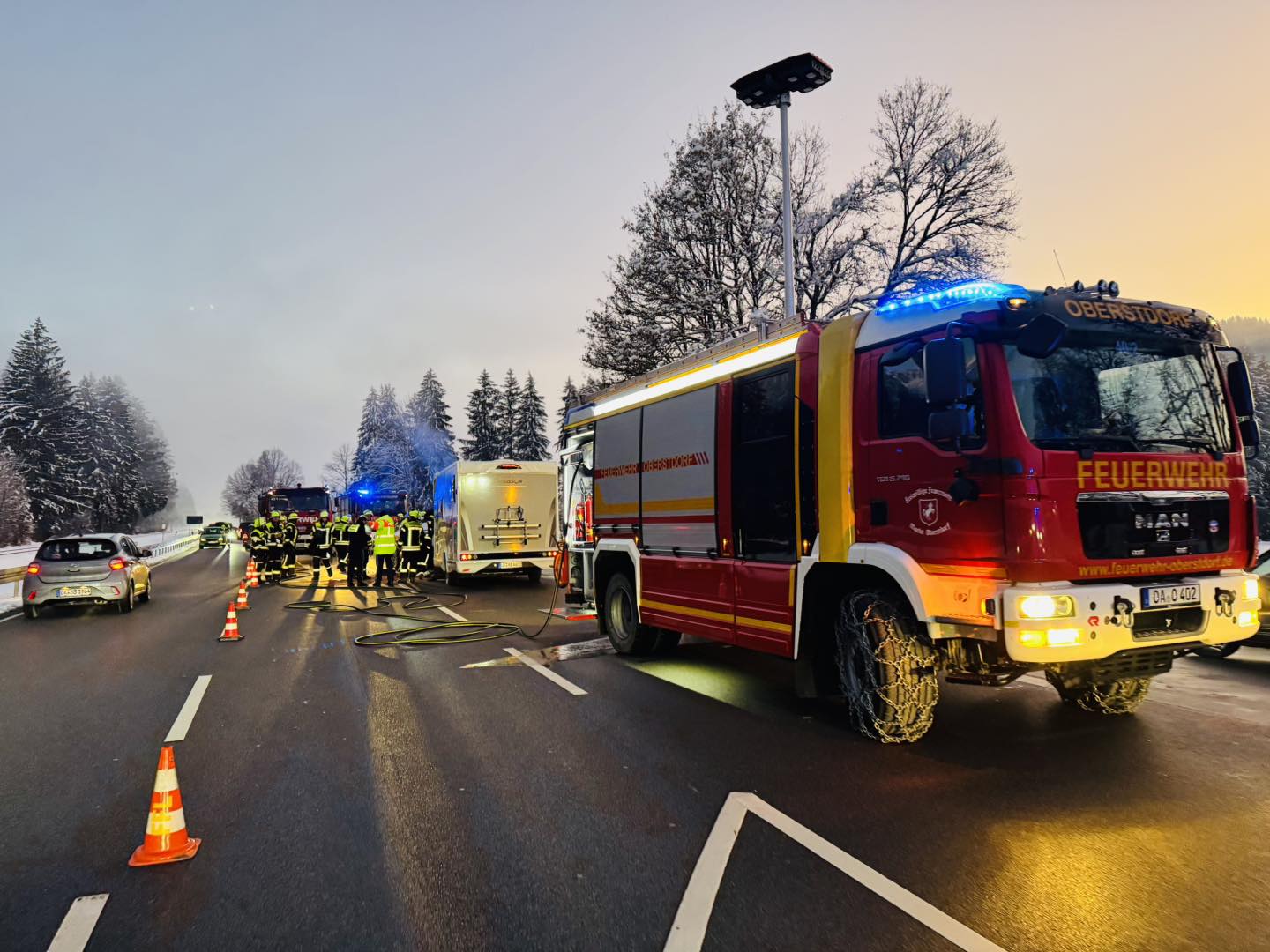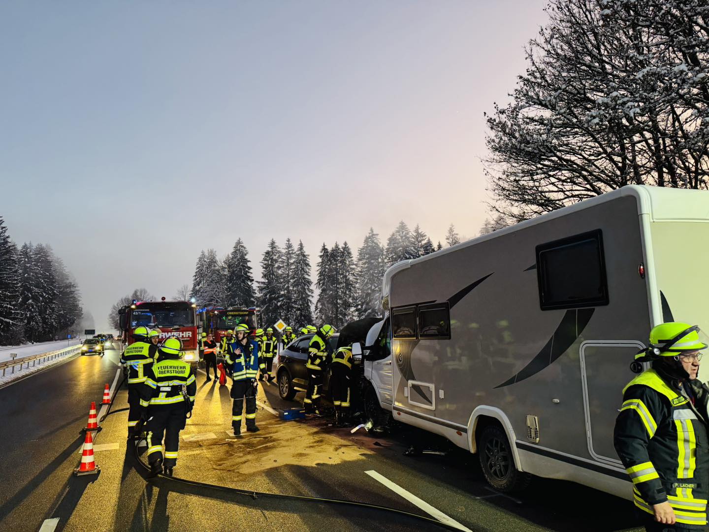 Am Abend des 27.12.2024 ereignete sich auf der B19 ein Frontalzusammenstoß zwischen einem Pkw und einem Wohnmobil. Der von Oberstdorf kommende 32-jährige Pkw-Fahrer kam aufgrund eines Sekundenschlafs nach links von der Fahrbahn ab und fuhr dem entgegenkommenden Wohnmobil in die Fahrzeugfront. Beide Fahrzeugführer sowie die Beifahrerin aus dem Wohnmobil wurden leichtverletzt mit dem Rettungswagen in umliegende Krankenhäuser verbracht. Es entstand ein Sachschaden in Höhe von ca. 40.000,- Euro. (PI Sonthofen).