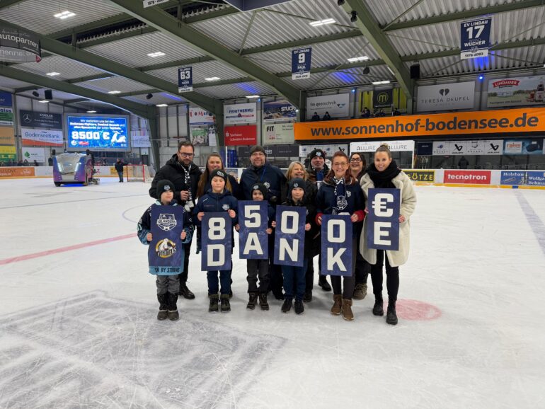 Die Nachwuchsabteilung der EV Lindau Islanders darf sich über eine großzügige Unterstützung freuen: Beim Derby gegen die ECDC Memmingen Indians übergaben die Mitglieder des Fanclubs Bodensee Fighters symbolisch 8.500 Euro aus der Weihnachtstombola an Patrick Meier, Marketingvorstand der Islanders.