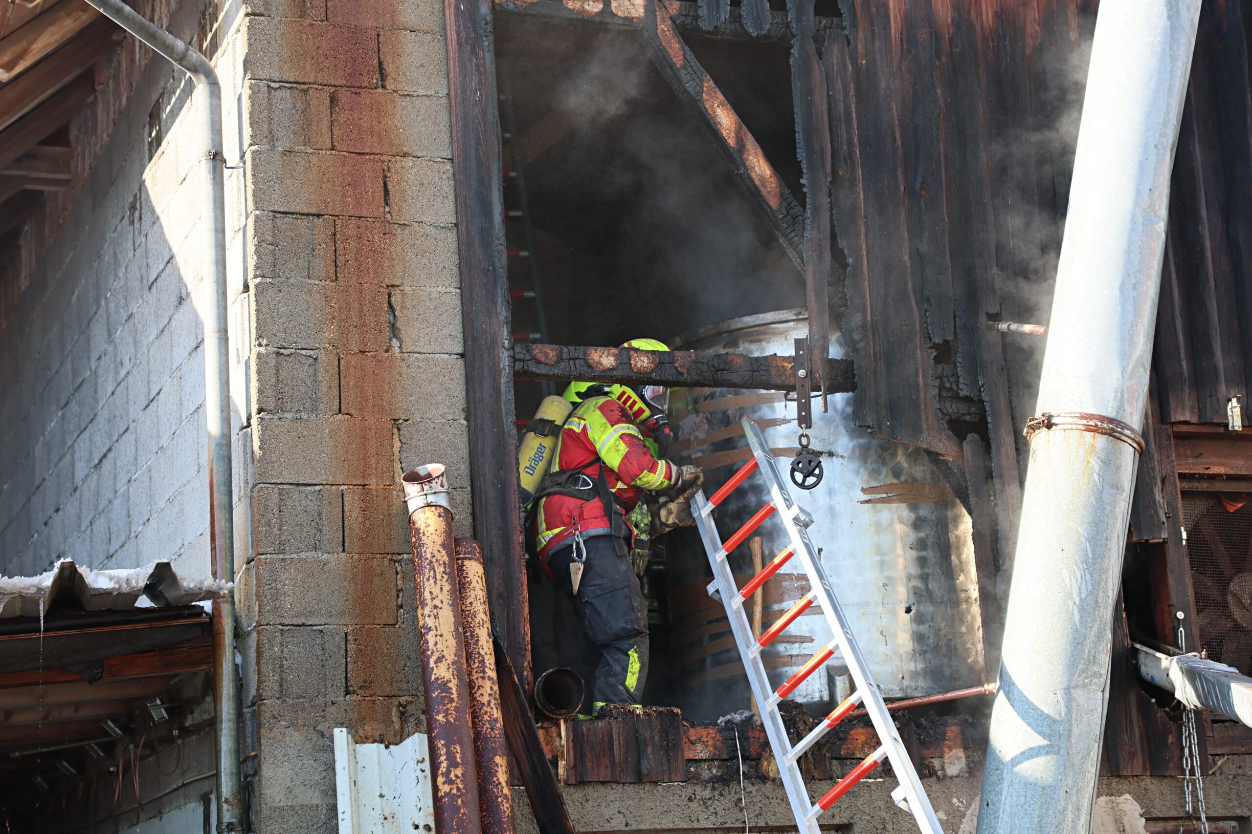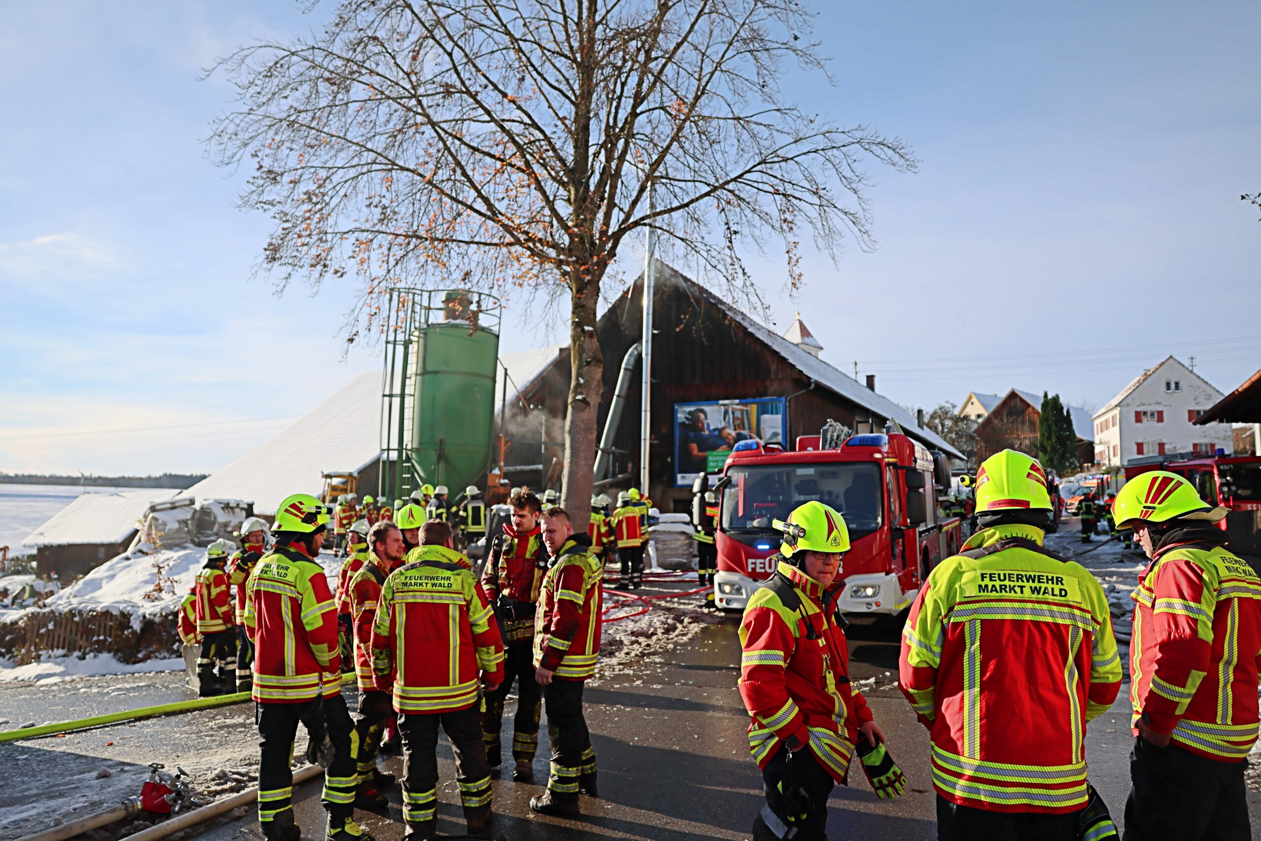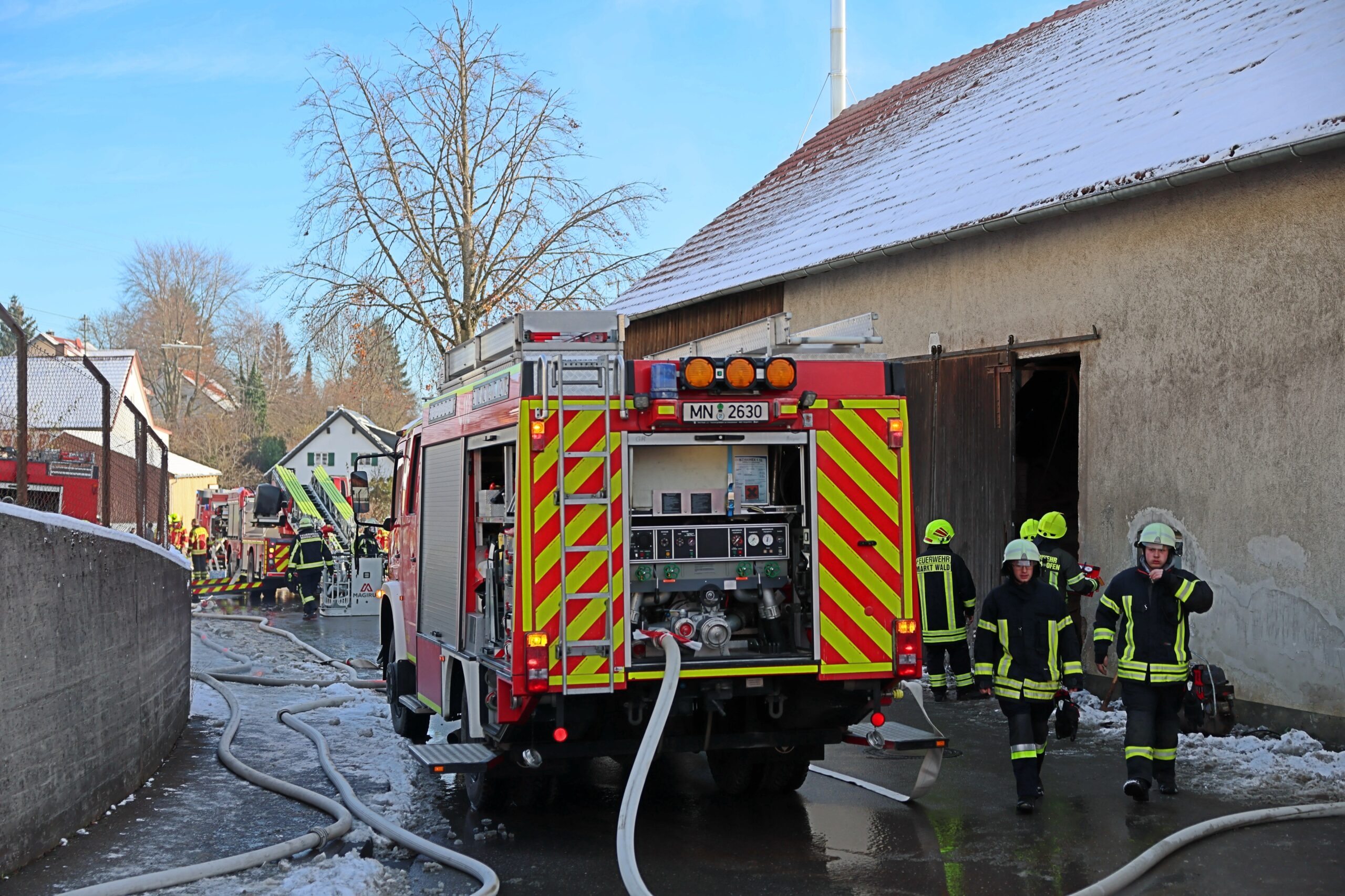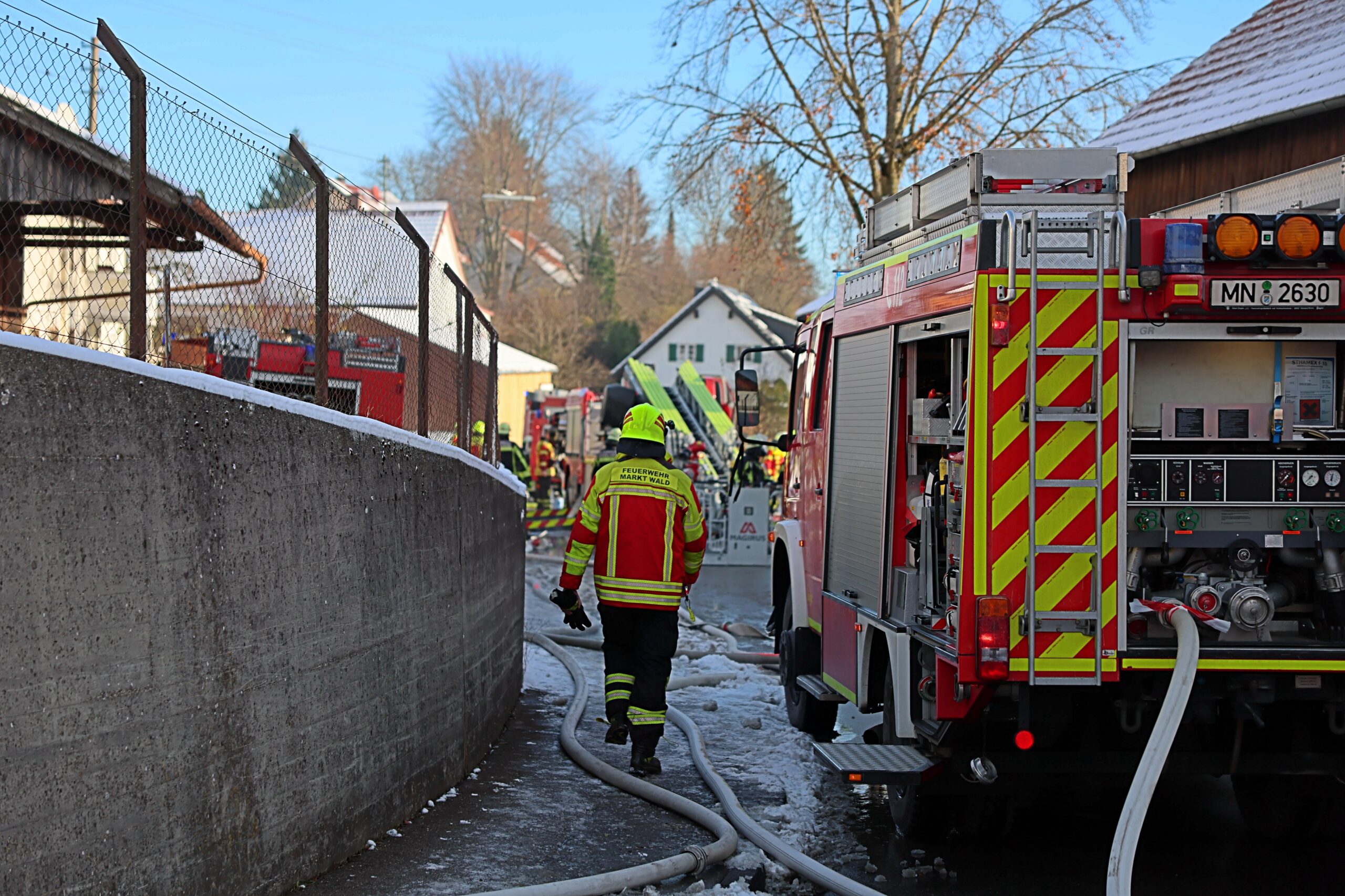 Am Morgen gegen 9 Uhr ist ein Brand in einem Gebäude in Markt Wald ausgebrochen. Nach ersten Informationen soll eine technische Einrichtung in einem Gebäude Feuer gefangen haben. Die Flammen schlugen zwischenzeitlich auch bereits aus der Außenwand.