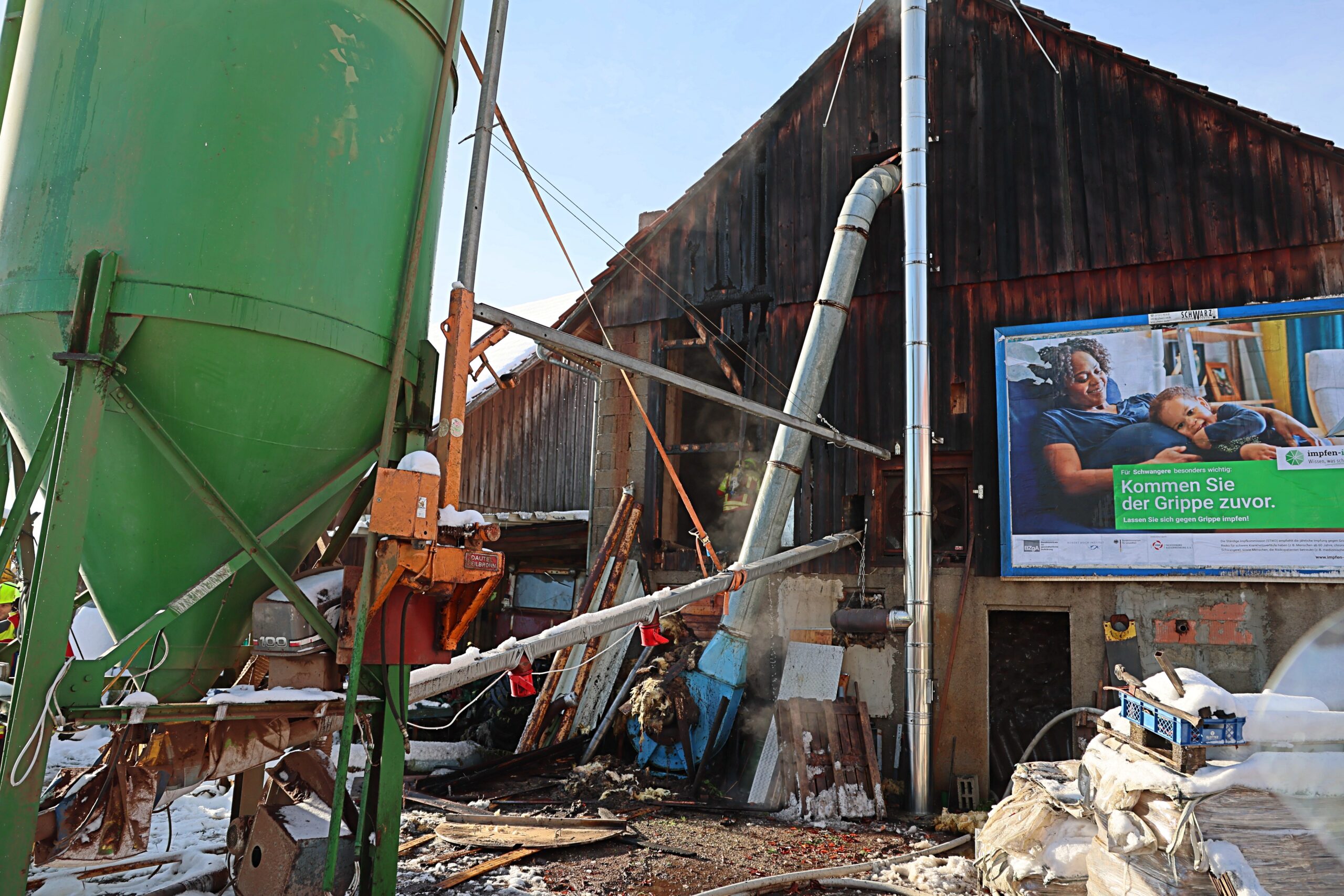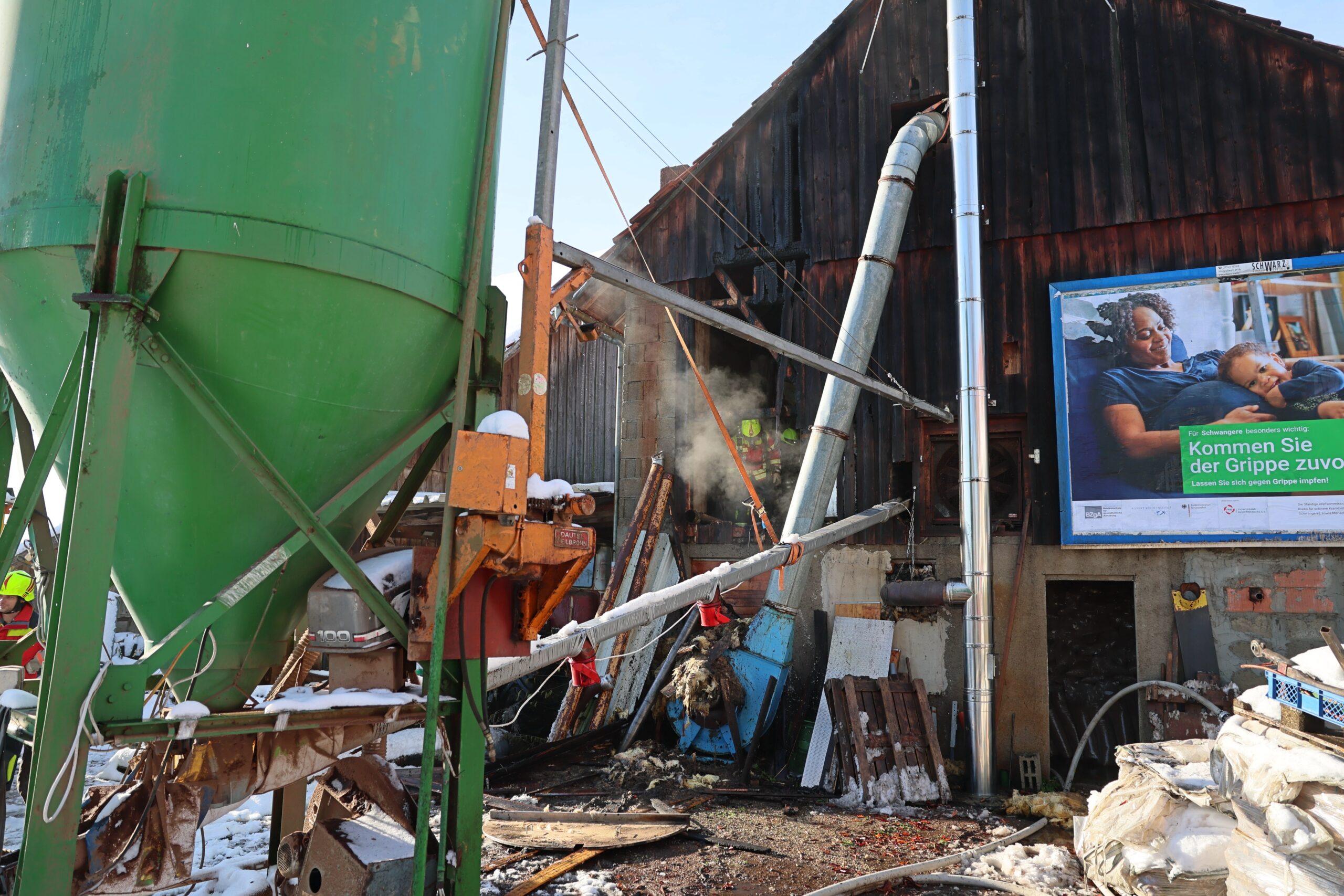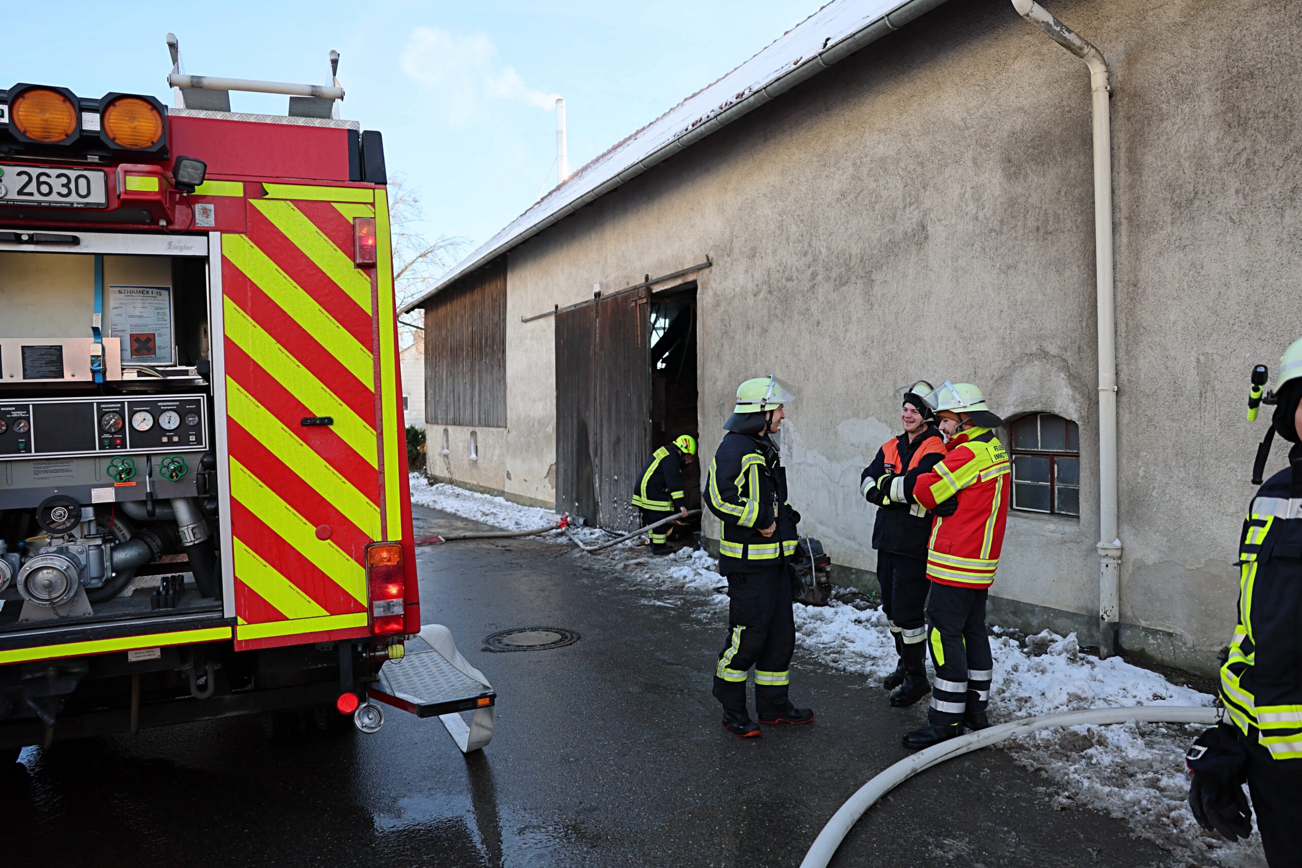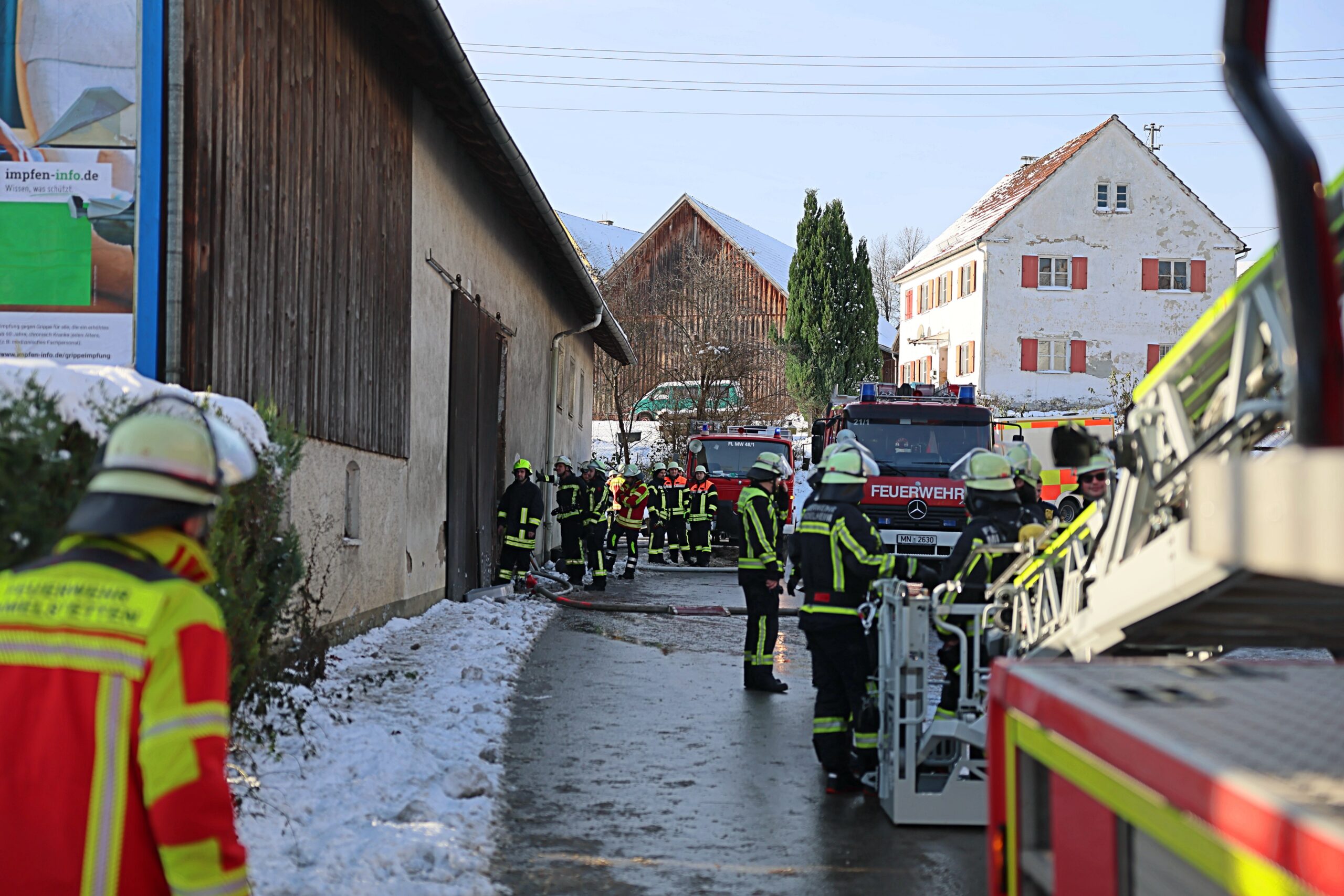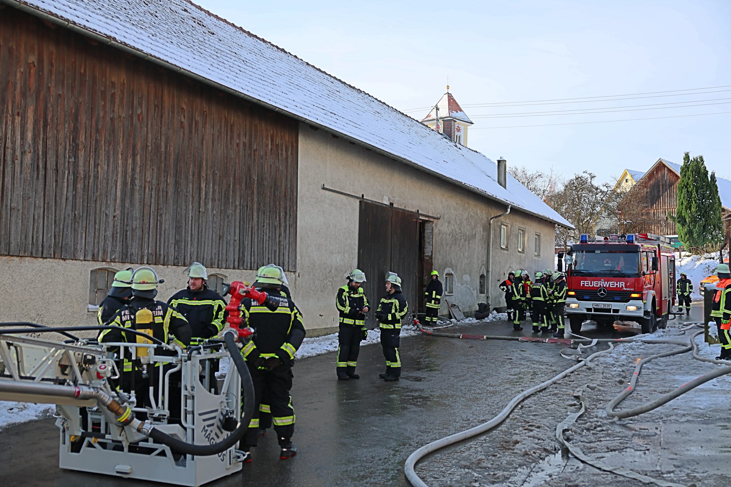 Am Morgen gegen 9 Uhr ist ein Brand in einem Gebäude in Markt Wald ausgebrochen. Nach ersten Informationen soll eine technische Einrichtung in einem Gebäude Feuer gefangen haben. Die Flammen schlugen zwischenzeitlich auch bereits aus der Außenwand.