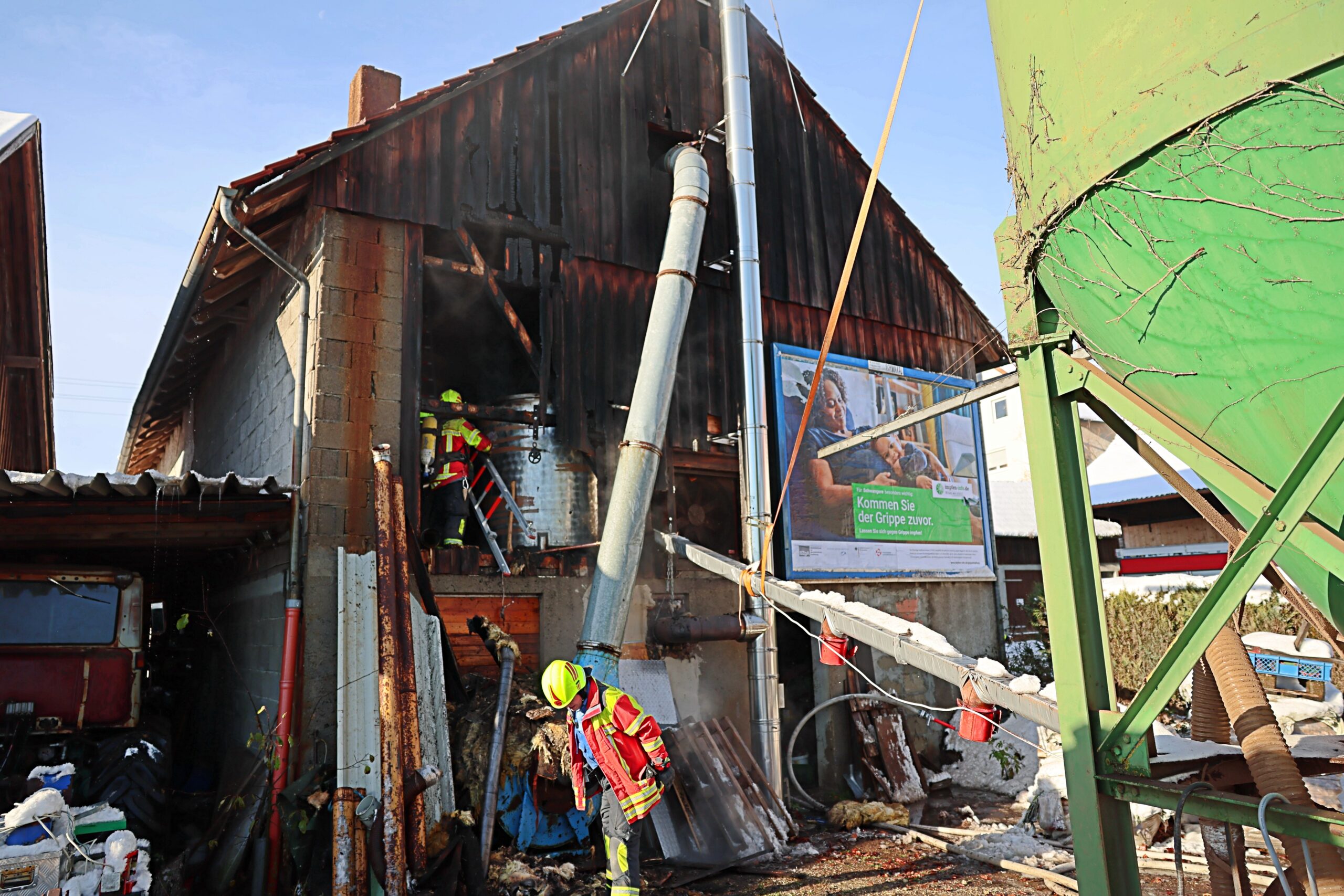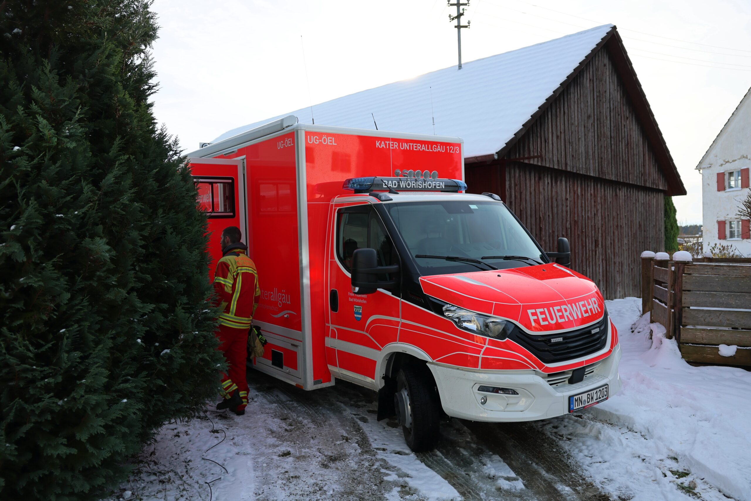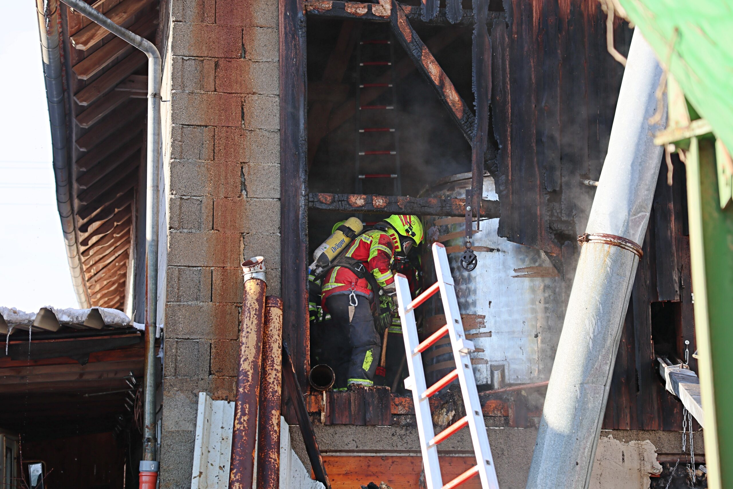 Allgäu Brand Brandbekämpfung Brandursache Einsatzkräfte feuerwehr Flammen Gebäude Markt Wald Ostallgäu Polizei Rettungsdienste Sachschaden technische Einrichtung