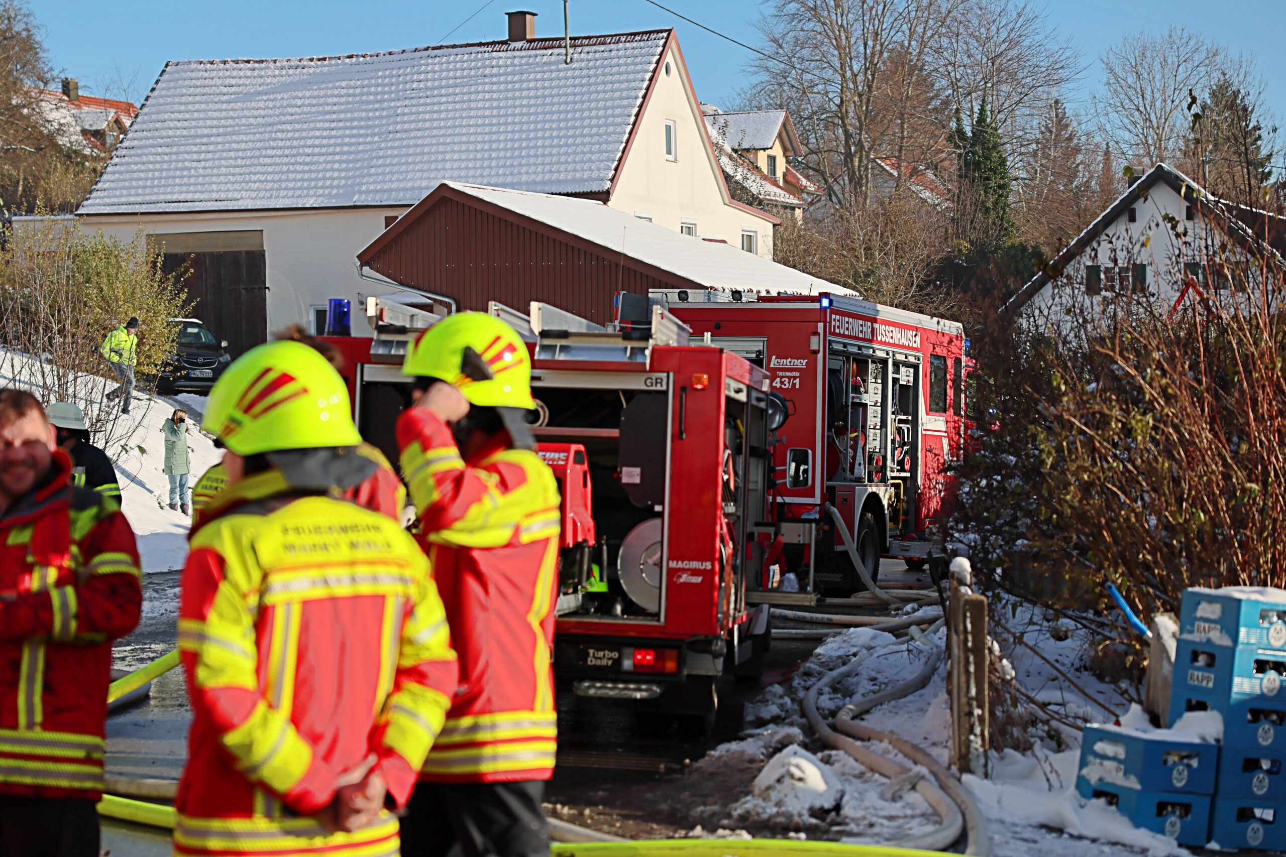 Zahlreiche Einsatzkräfte der Feuerwehr sind vor Ort, um den Brand unter Kontrolle zu bringen und eine Ausbreitung des Feuers zu verhindern. Der Sachschaden ist bislang noch unklar. Weitere Details zum Vorfall, darunter auch die Brandursache, werden noch ermittelt. Feuerwehr und Rettungsdienste arbeiten mit Hochdruck an der Brandbekämpfung.