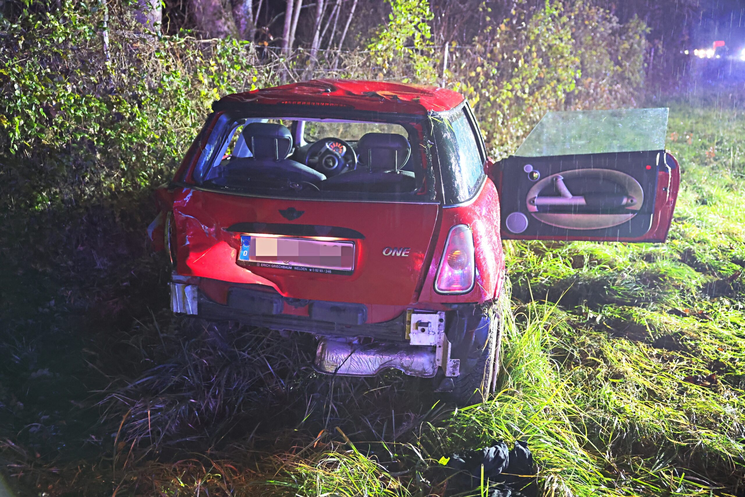 In der Nacht von Samstag auf Sonntag ereignete sich auf der A7 zwischen den Anschlussstellen Berkheim und Dettingen an der Iller in nördliche Fahrtrichtung ein Verkehrsunfall mit drei Leichtverletzten. Ein 32-jähriger Pkw-Lenker eines BMW fuhr aus noch unklarer Ursache einer 38-jährigen Fahrzeugführerin auf das Heck auf. Infolge des Zusammenstoßes schleuderte der vorausfahrende Mini auf die linke Fahrzeugseite, rutschte ins Bankett und kam im angrenzenden Feld zum Stehen. Durch die Wucht des Aufpralls wurden die drei Fahrzeuginsassen des Mini leichtverletzt in ein nahegelegenes Krankenhaus verbracht. Bei beiden Fahrzeugen entstand wirtschaftlicher Totalschaden von insgesamt 35.000 Euro. Zur Unfallaufnahme und Bergung der Fahrzeuge musste die gesamte Fahrbahn in nördliche Fahrtrichtung durch die Feuerwehr zeitweise voll gesperrt werden. Gegen den 32-Jährigen wurde ein Strafverfahren wegen fahrlässiger Körperverletzung eingeleitet. (APS Memmingen)