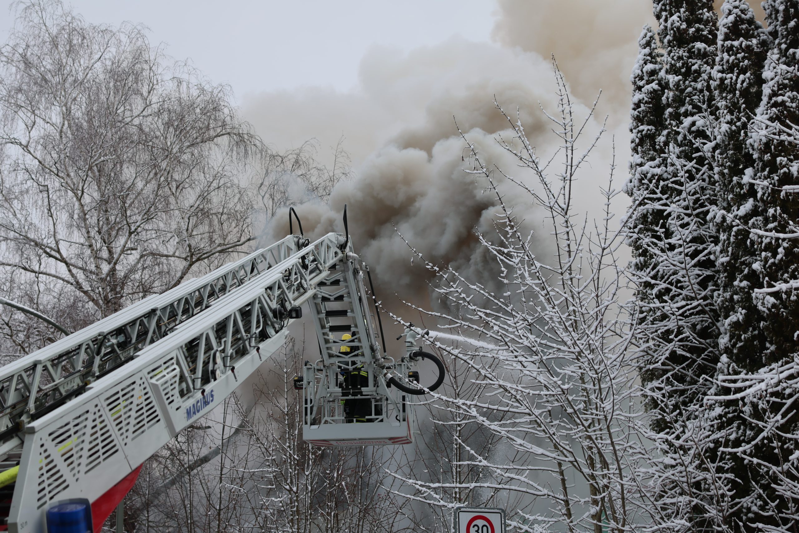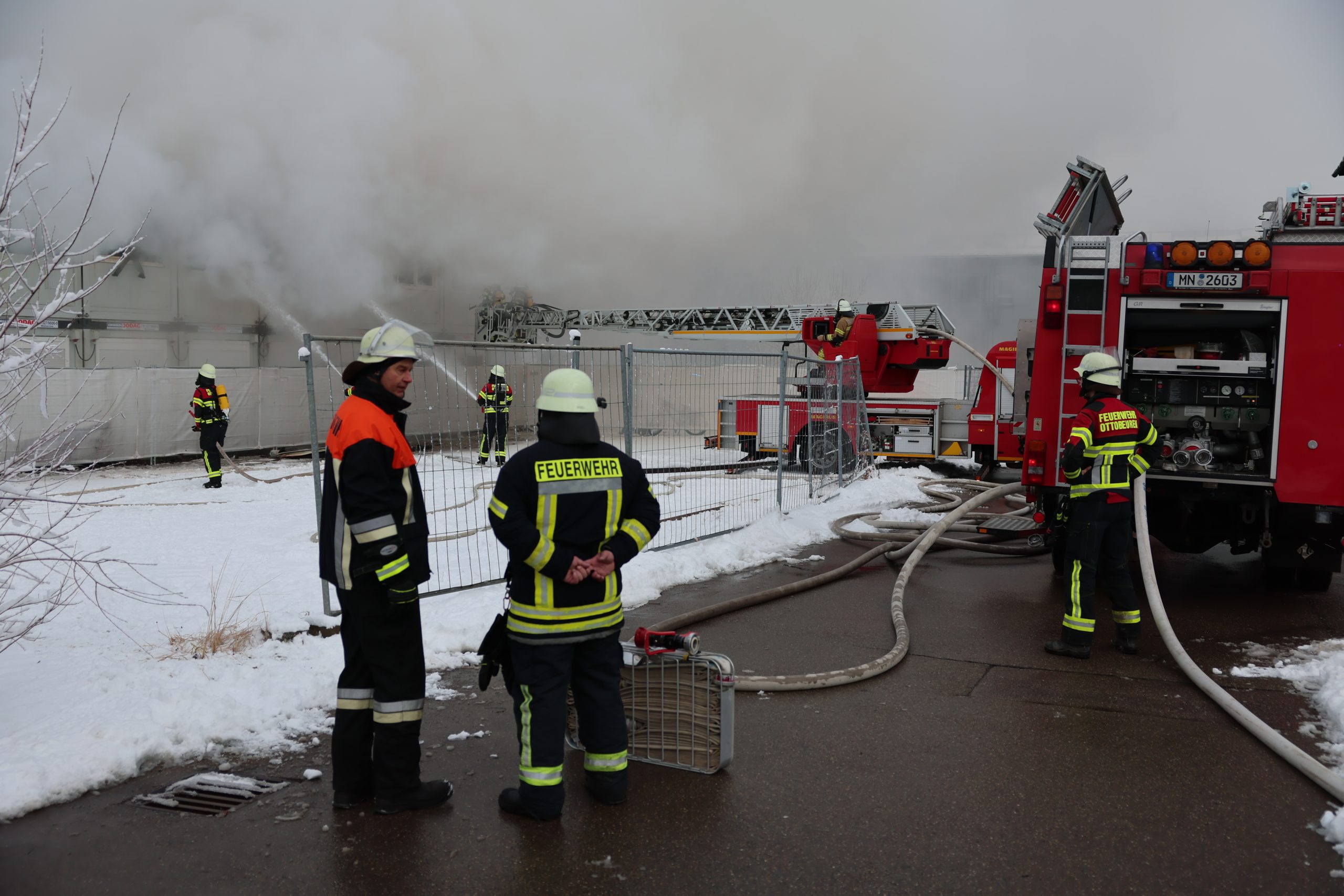 Der Einsatzleiter der Feuerwehr Ottobeuren erhöhte bereits während der Anfahrt umsichtig das Alarmstichwort auf „B4“, um zusätzliche Unterstützung anzufordern. Neben weiteren Einsatzkräften wurde auch eine zweite Drehleiter der Feuerwehr Memmingen alarmiert.