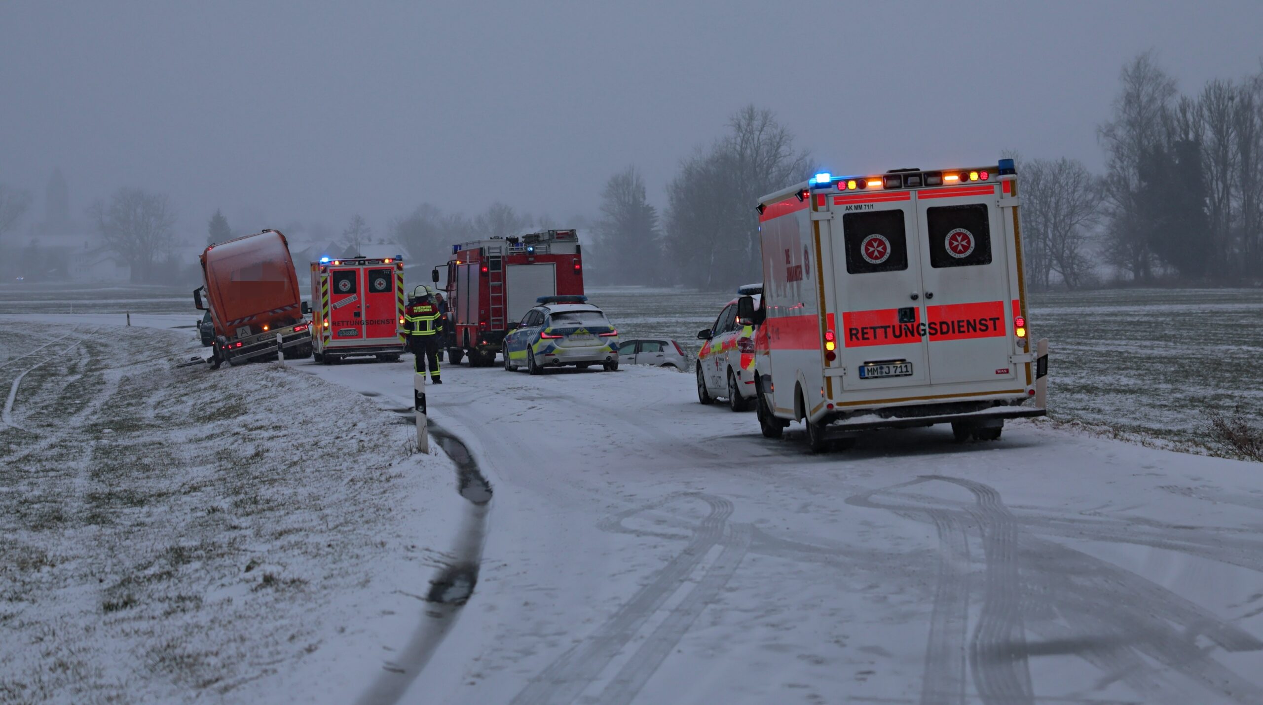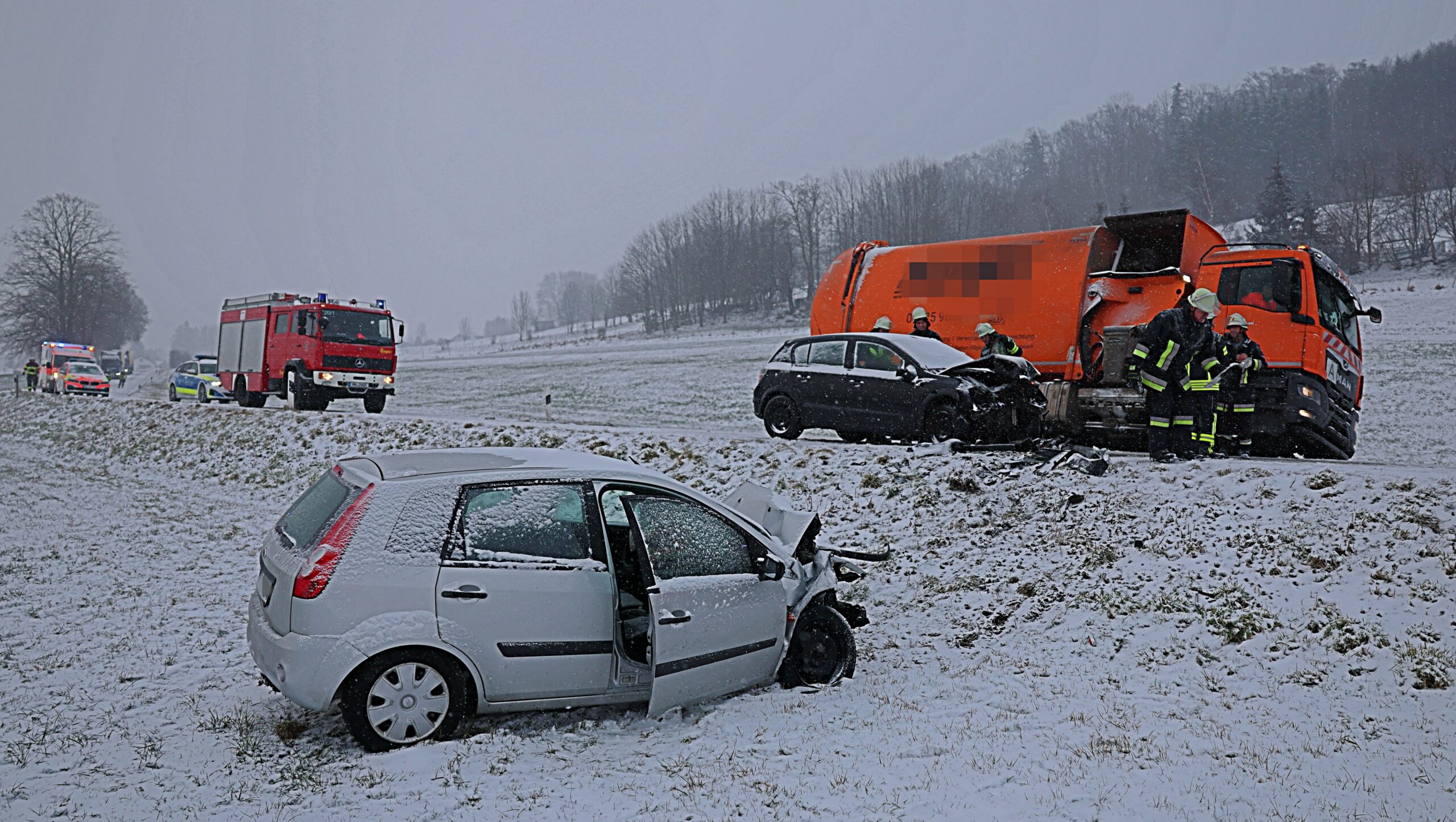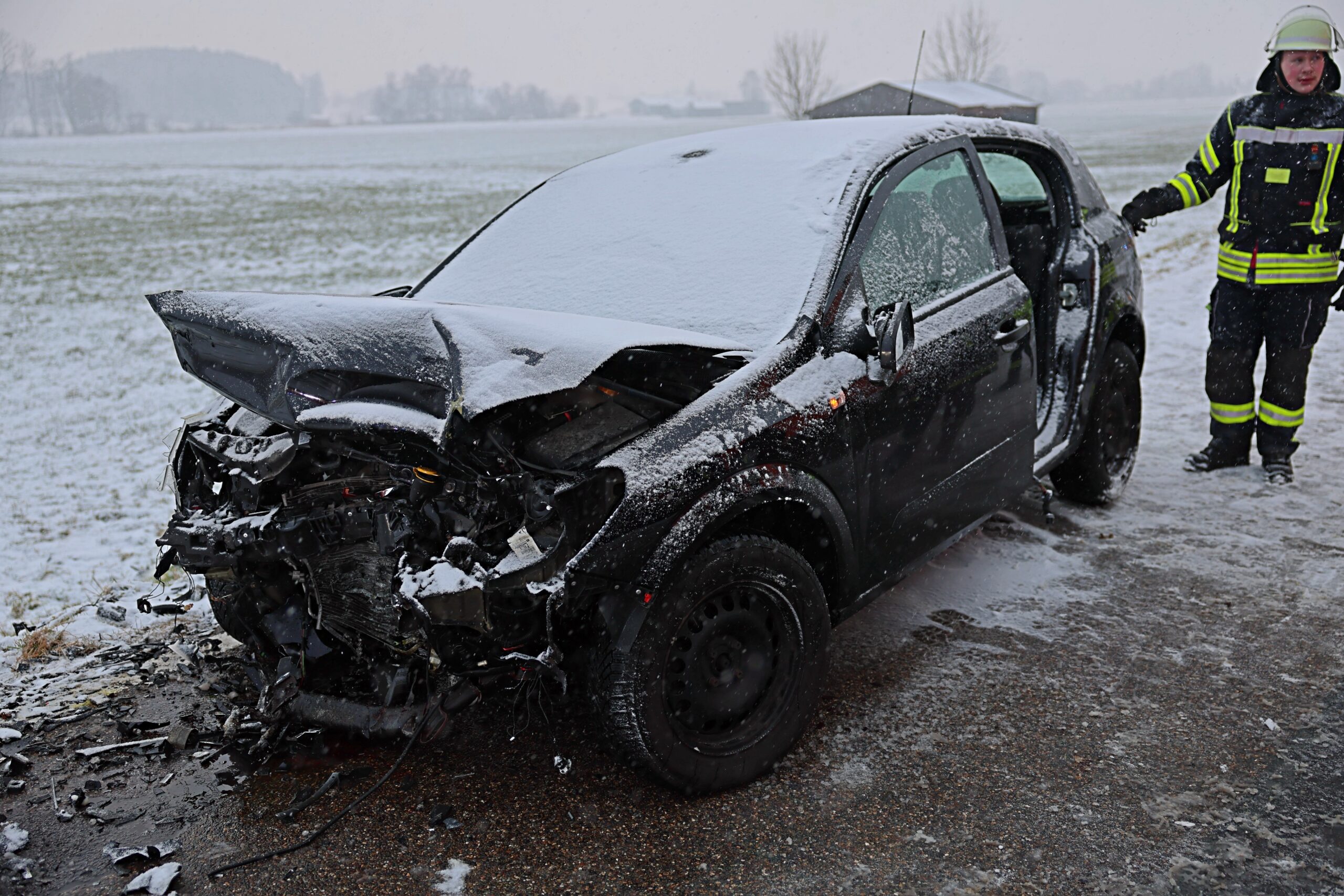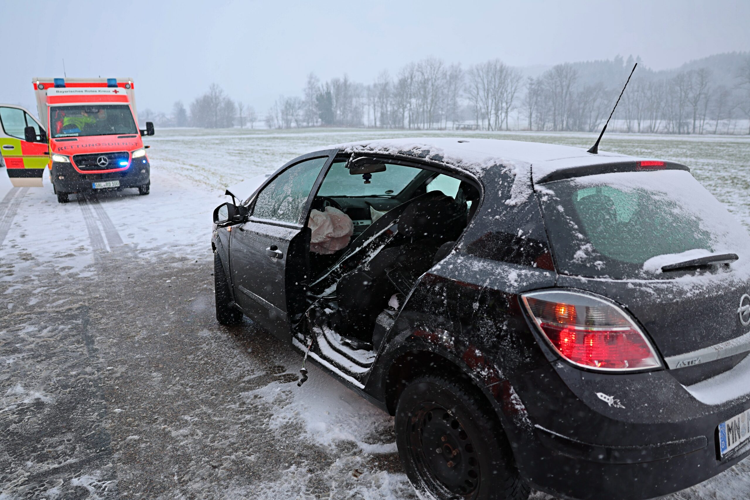 Frontalcrash bei Markt Rettenbach: Drei Verletzte auf schneebedeckter Straße
