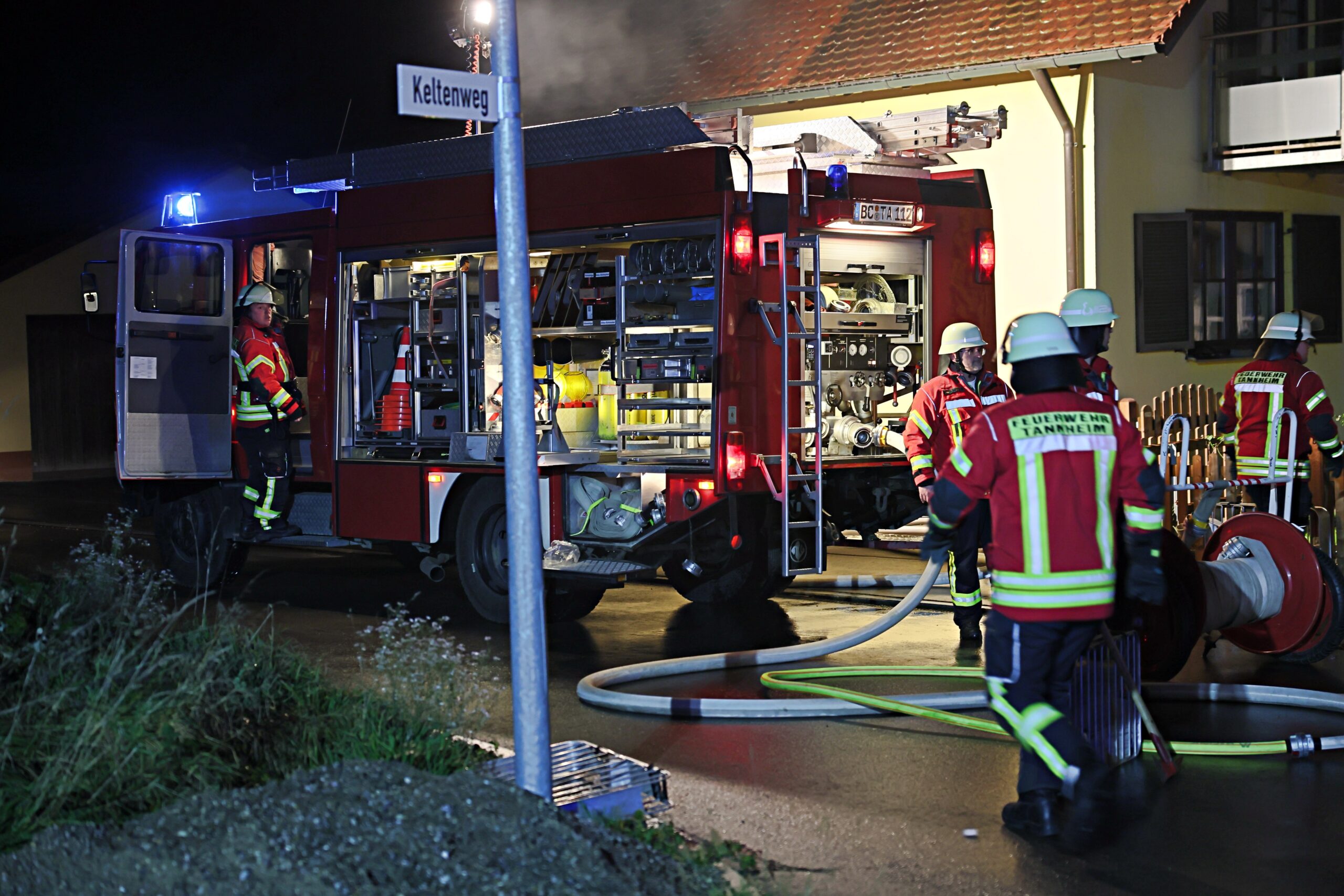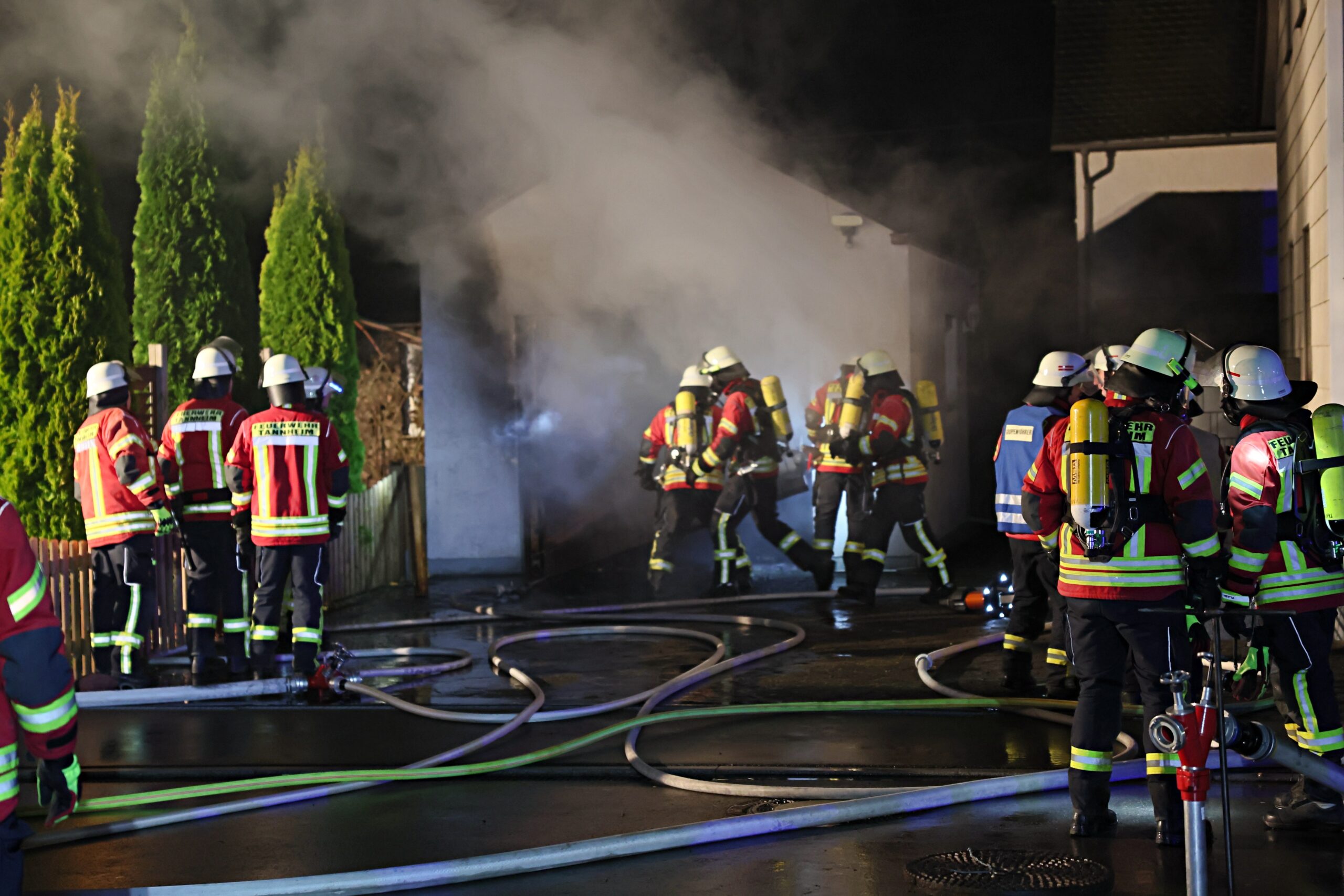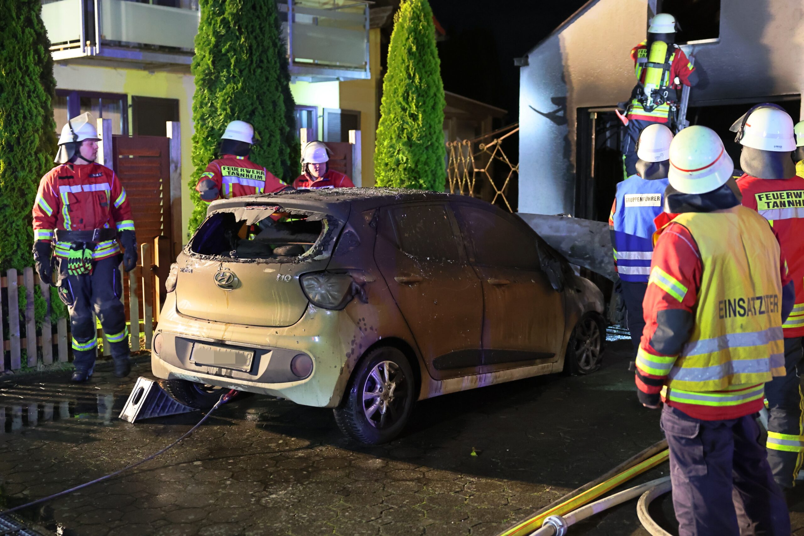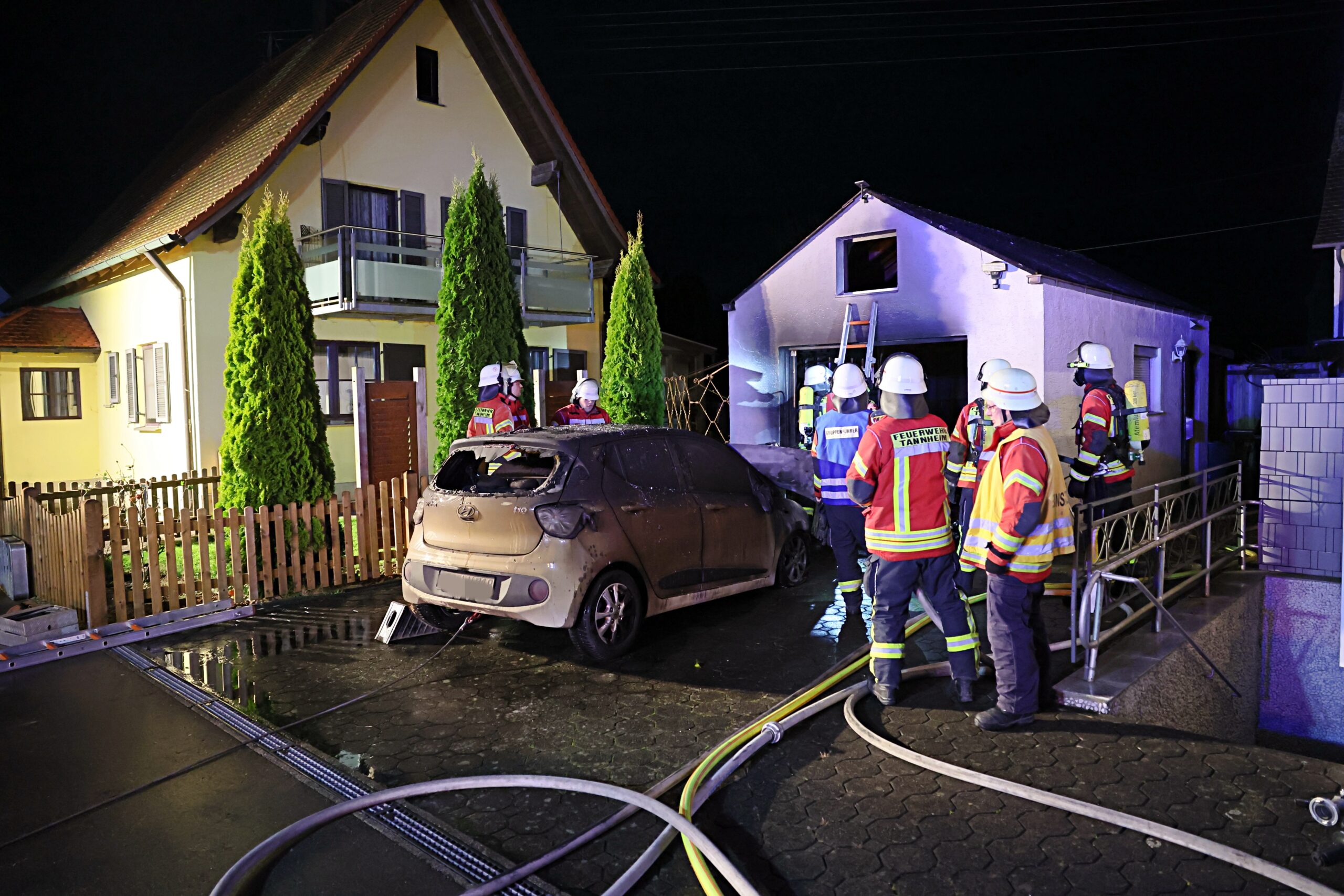Als die Feuerwehren aus Tannheim und Erolzheim eintrafen, drang dichter Rauch aus der Garage, begleitet von kleineren Explosionen. Trotz der schwierigen Bedingungen verschafften sich die Einsatzkräfte Zugang durch das Garagentor und eine seitliche Tür. Sie konnten den Brand des dort abgestellten Fahrzeugs rasch unter Kontrolle bringen und Schlimmeres verhindern.