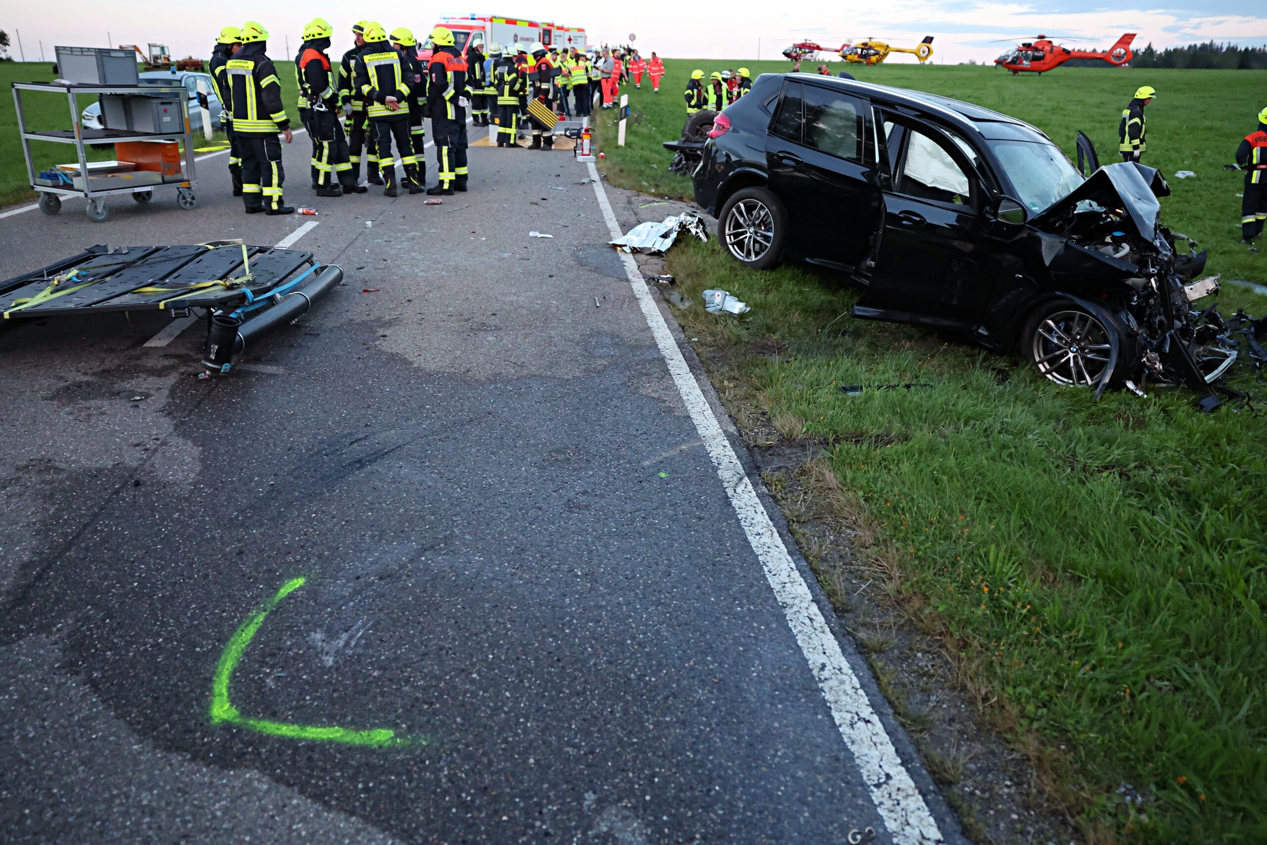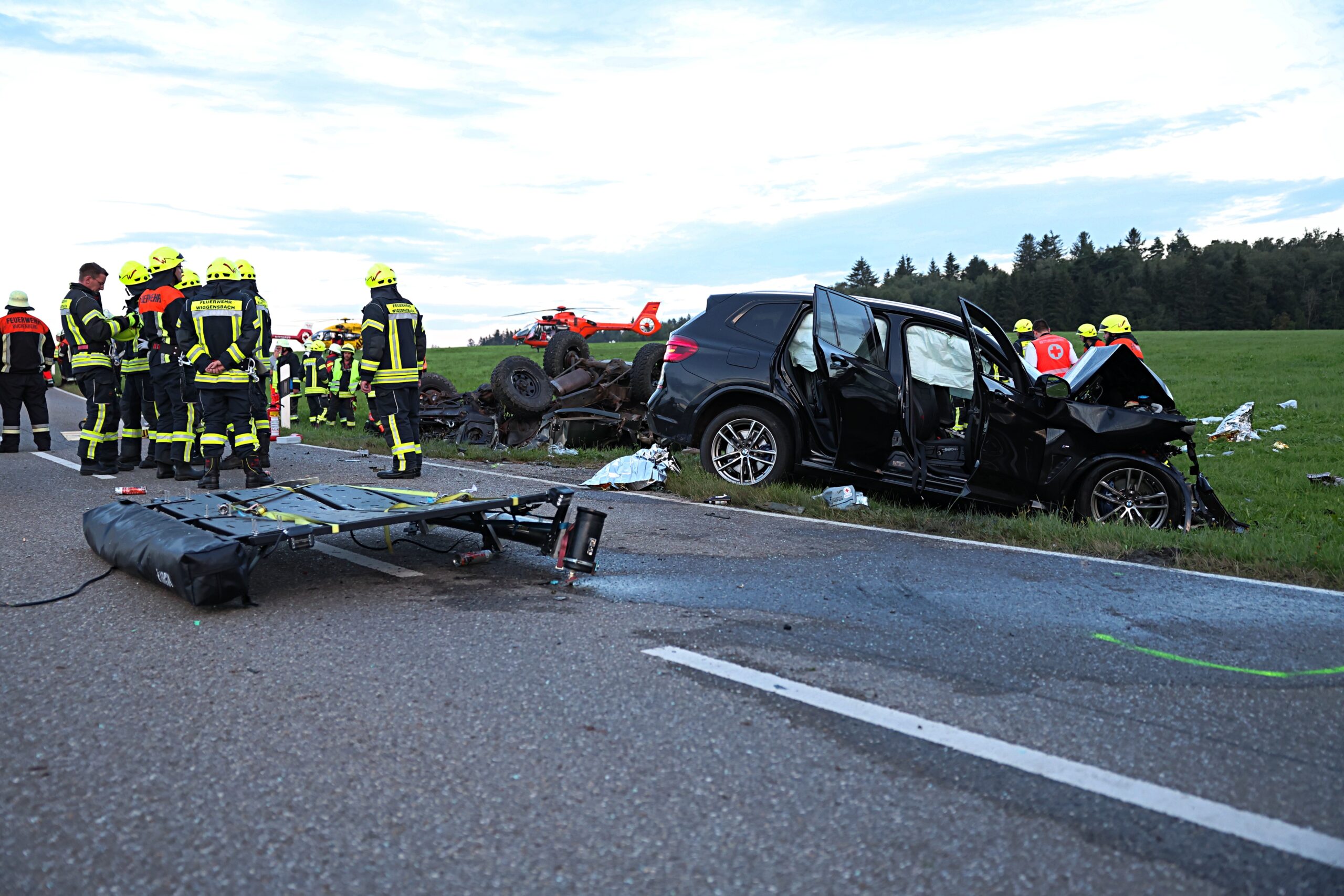 Bei dem Zusammenstoß wurden alle sechs Insassen beider Fahrzeuge, darunter auch die vier Mitfahrer des BMWs, zum Teil schwerstverletzt. Zur Versorgung der Verletzten wurden vier Rettungshubschrauber eingesetzt, die die Verletzten in umliegende Krankenhäuser brachten.