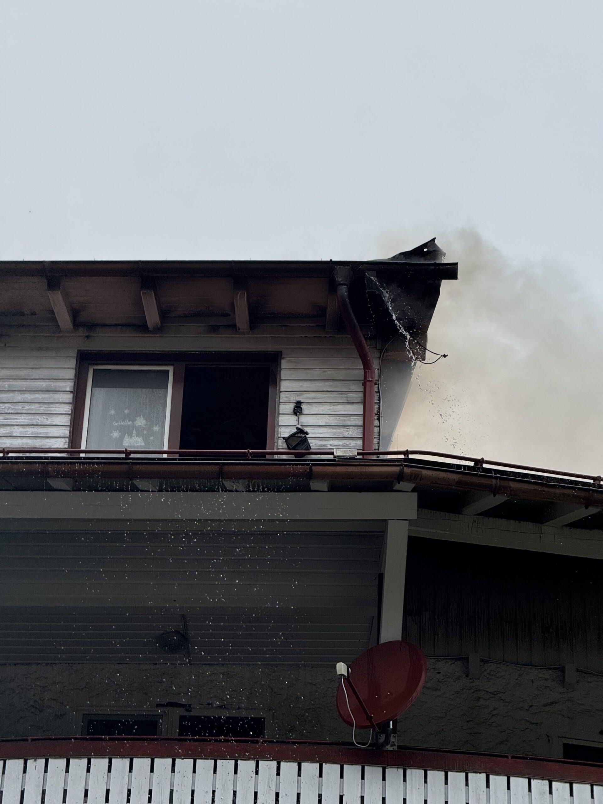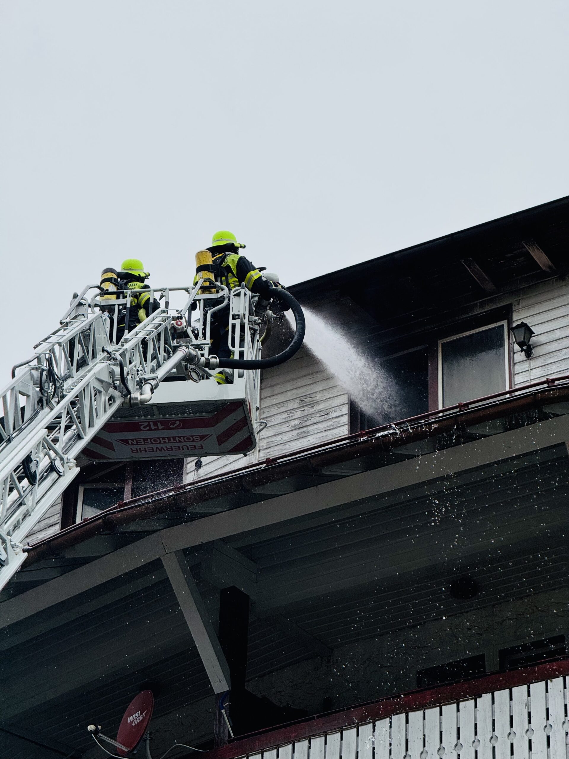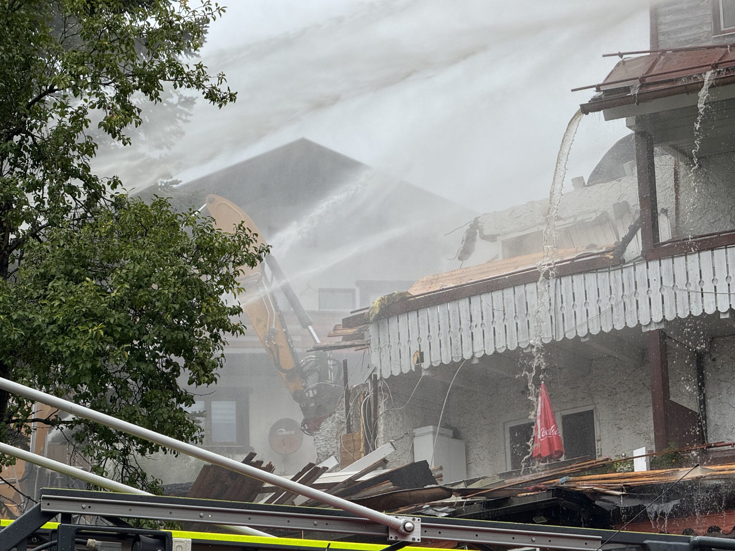 Löscharbeiten an dem Mitarbeiterhaus in Hirschegg im Kleinwalsertal / Foto: Thomas Häuslinger