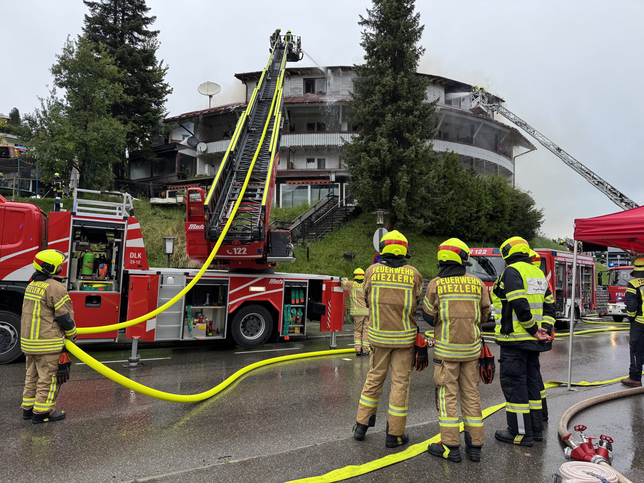 Bei einem Hausbrand in Hirschegg im Kleinwalsertal hat es neun Verletzte gegeben. Eine Person wurde schwer, drei weitere mittelschwer verletzt. Weitere Menschen erlitten leichte Verletzungen – sie hatten den Rauch eingeatmet. Das Feuer war kurz nach 12 Uhr in dem von Hotelmitarbeitern genutzten Haus ausgebrochen. Sofort begannen die Feuerwehren aus dem Kleinwalsertal mit Unterstützung aus Oberstdorf, den Fischinger Ortsfeuerwehren und der Drehleiter aus Sonthofen mit dem Löscheinsatz. Die Arbeiten waren auch nach 16 Uhr noch nicht abgeschlossen.