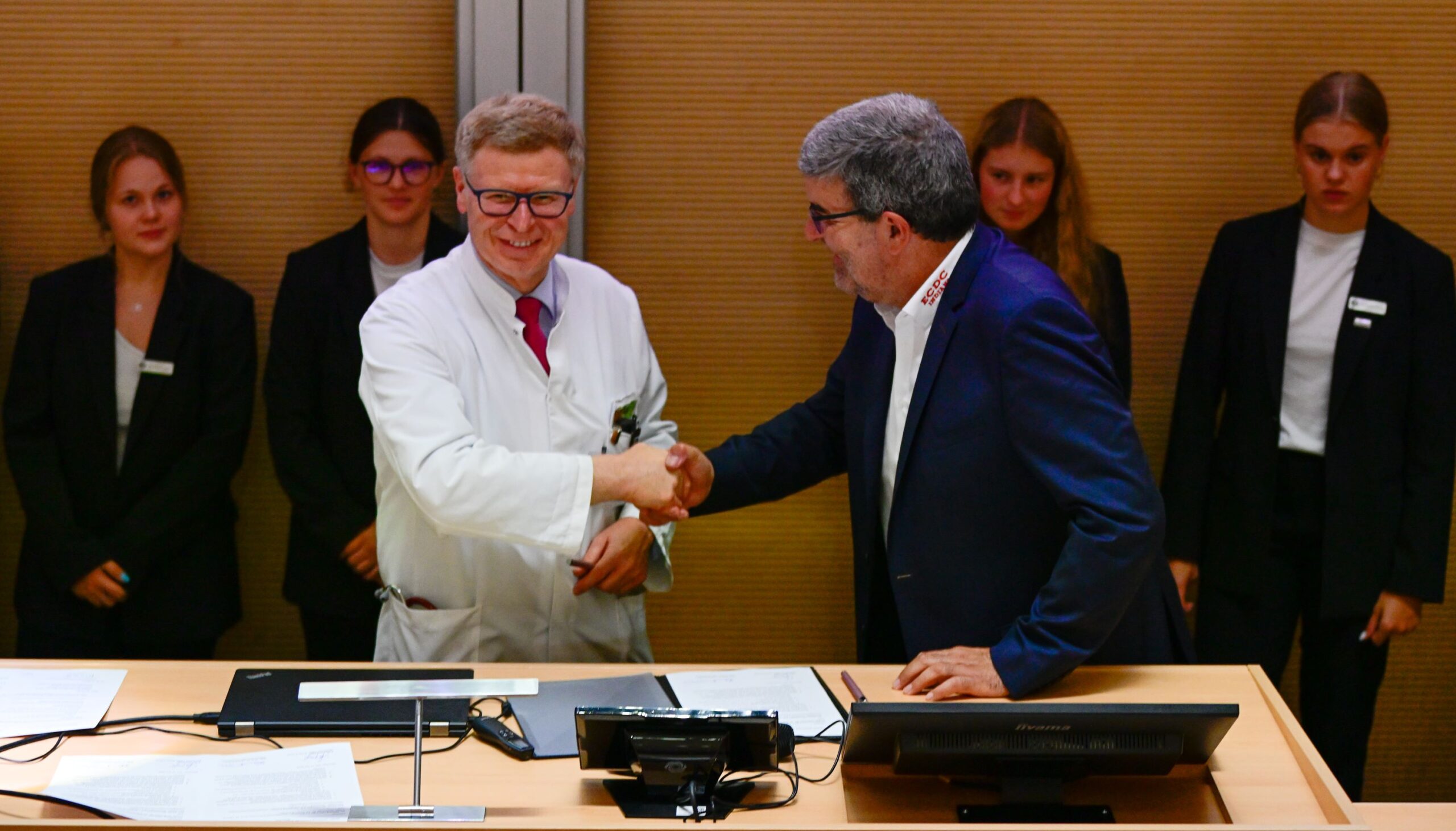 Nach dem Empfang in der Staatskanzlei ging es für das Team ins Klinikum rechts der Isar. Dort bestätigten Peter Gemsjäger und Prof. Dr. Helmut Friess die Zusammenarbeit zwischen der Stiftung Chirurgie und den ECDC Frauen als Sonderbotschafterinnen für weitere zwei Jahre.