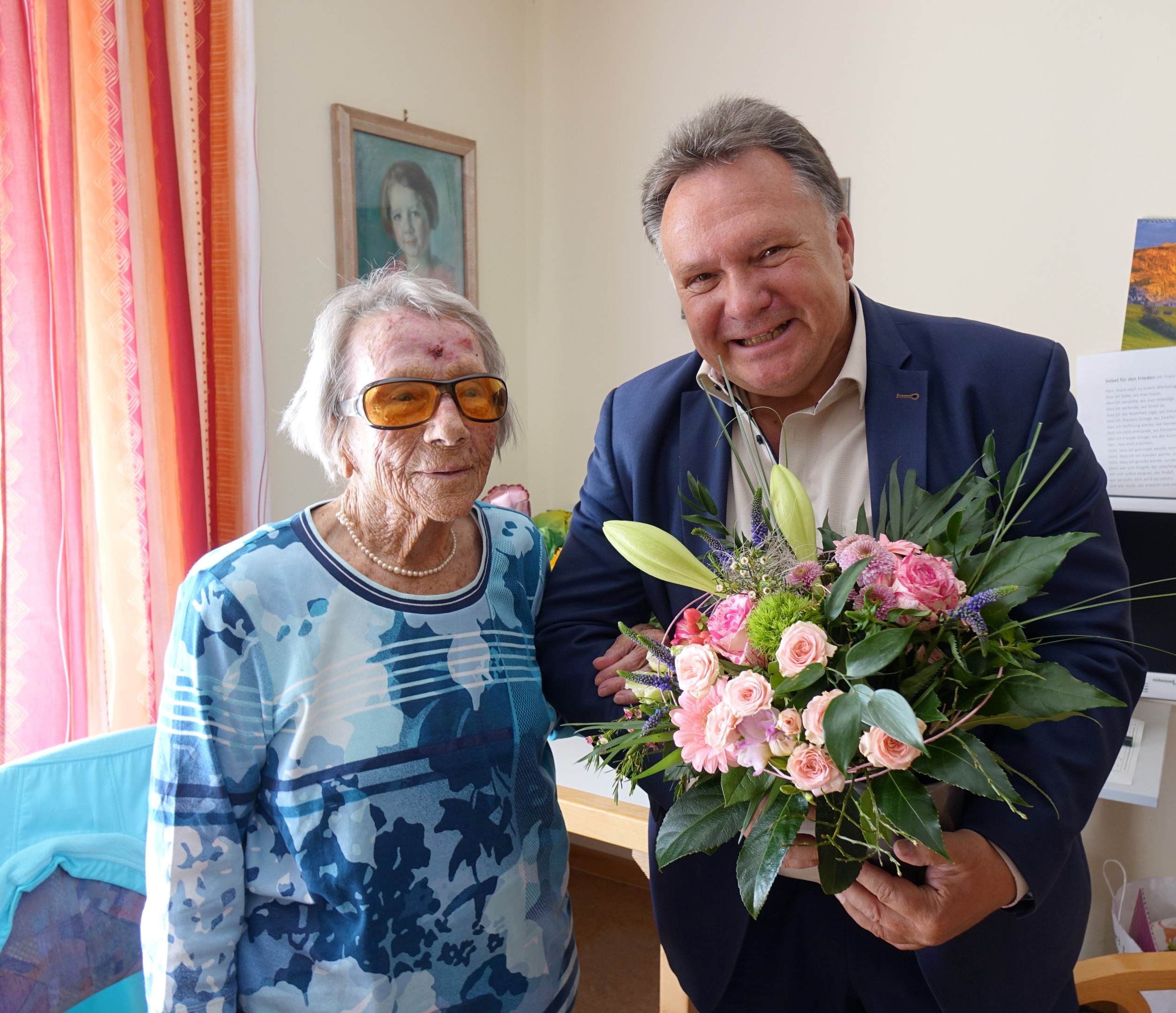 Es war ein besonderer Besuch, den Oberbürgermeister Stefan Bosse am 27. April im Seniorenheim machte: Dr. Brigitte Krieger feierte ihren 101. Geburtstag – und zählt damit zu einer kleinen, aber bemerkenswerten Gruppe von rund 20 Bürgerinnen und Bürgern in Kaufbeuren, die die Altersmarke von 100 Jahren überschritten haben.