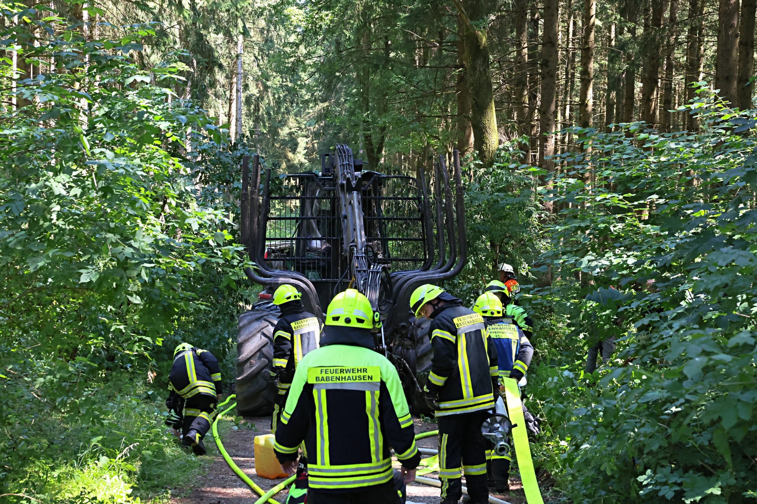 Am Mittwochvormittag, den 2. Juli 2025, kam es in einem Waldstück bei Greimeltshofen zwischen Babenhausen und Kirchhaslach zu einem gefährlichen Brand. Eine sogenannte Holzrückmaschine – eine schwere Forstmaschine, die zum Abtransport von gefällten Baumstämmen eingesetzt wird – geriet während der Arbeit plötzlich in Brand.