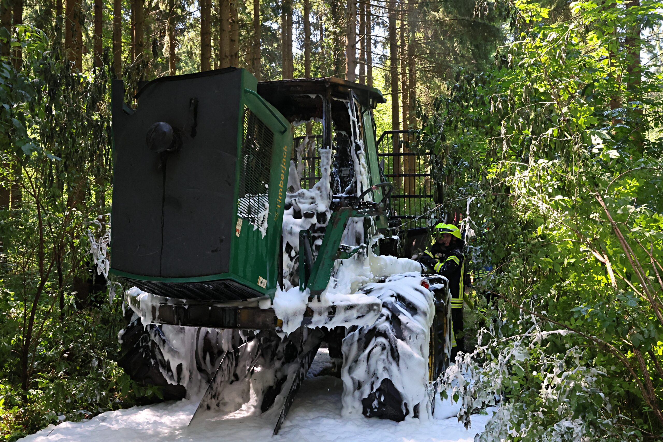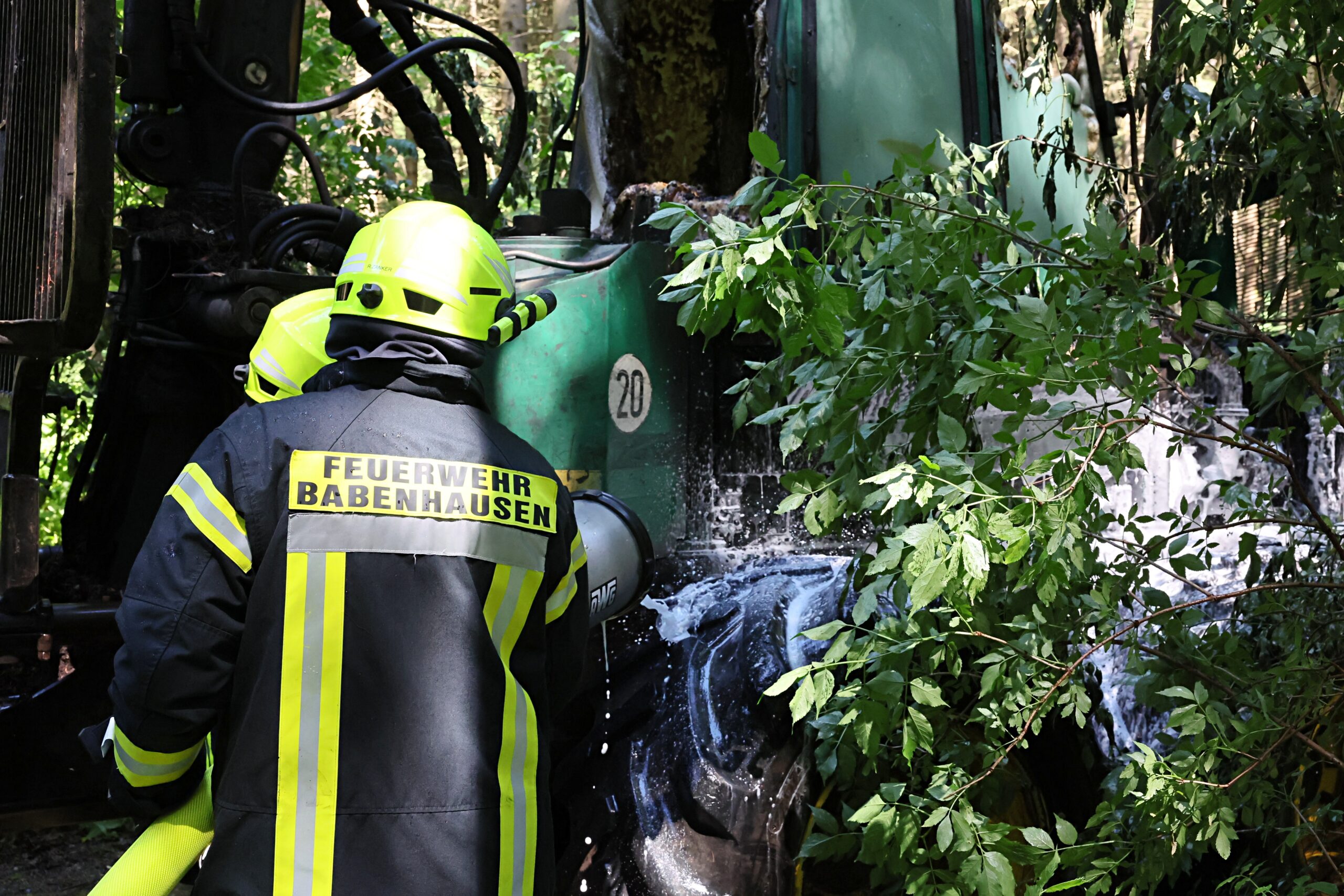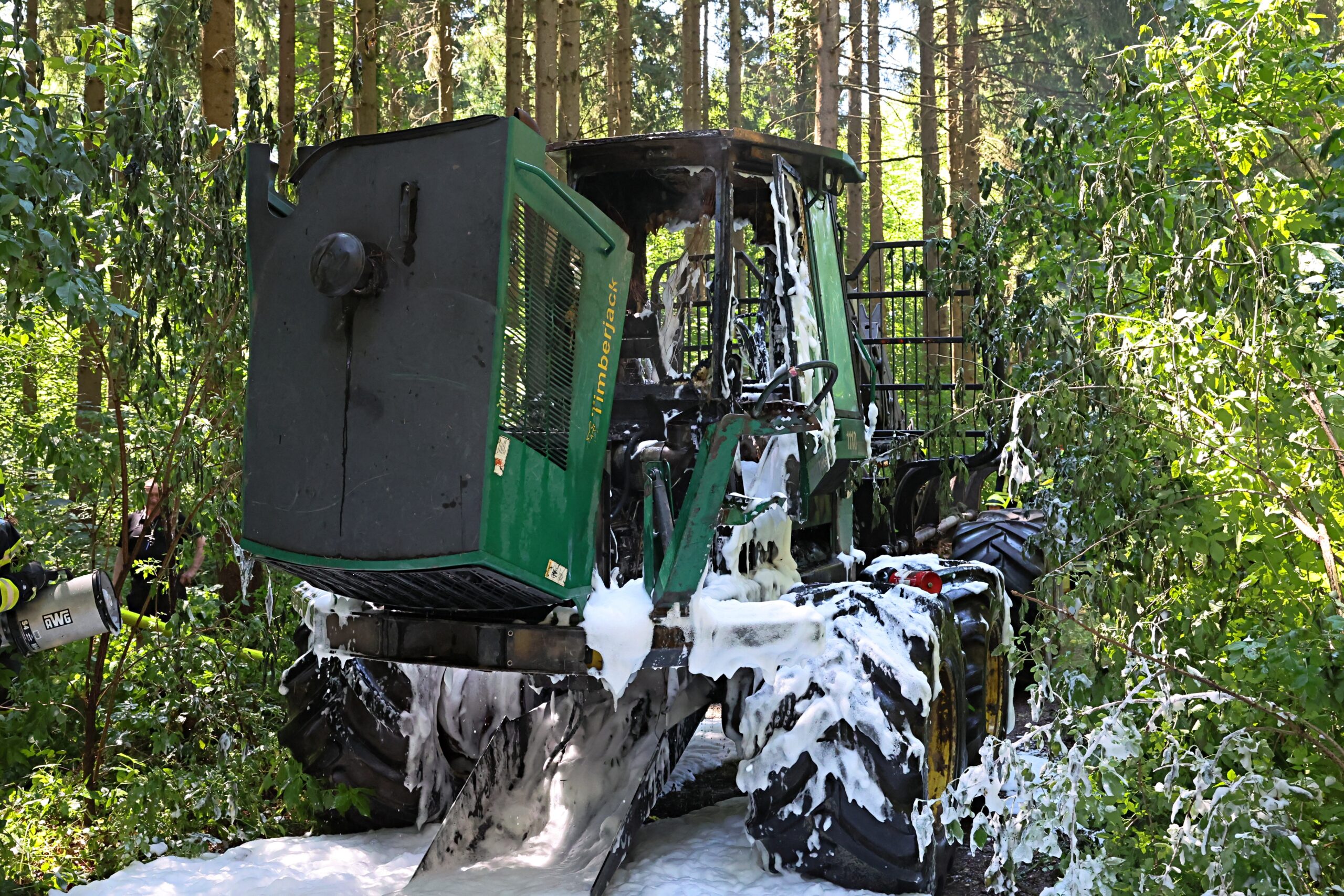 Dank des schnellen und koordinierten Einsatzes der umliegenden Feuerwehren konnte Schlimmeres verhindert werden. Die Einsatzkräfte waren rasch vor Ort, löschten den Brand zügig und kühlten die Maschine ab. Durch ihr schnelles Handeln wurde ein Übergreifen der Flammen auf den angrenzenden Wald verhindert – ein möglicher großflächiger Waldbrand konnte so abgewendet werden.