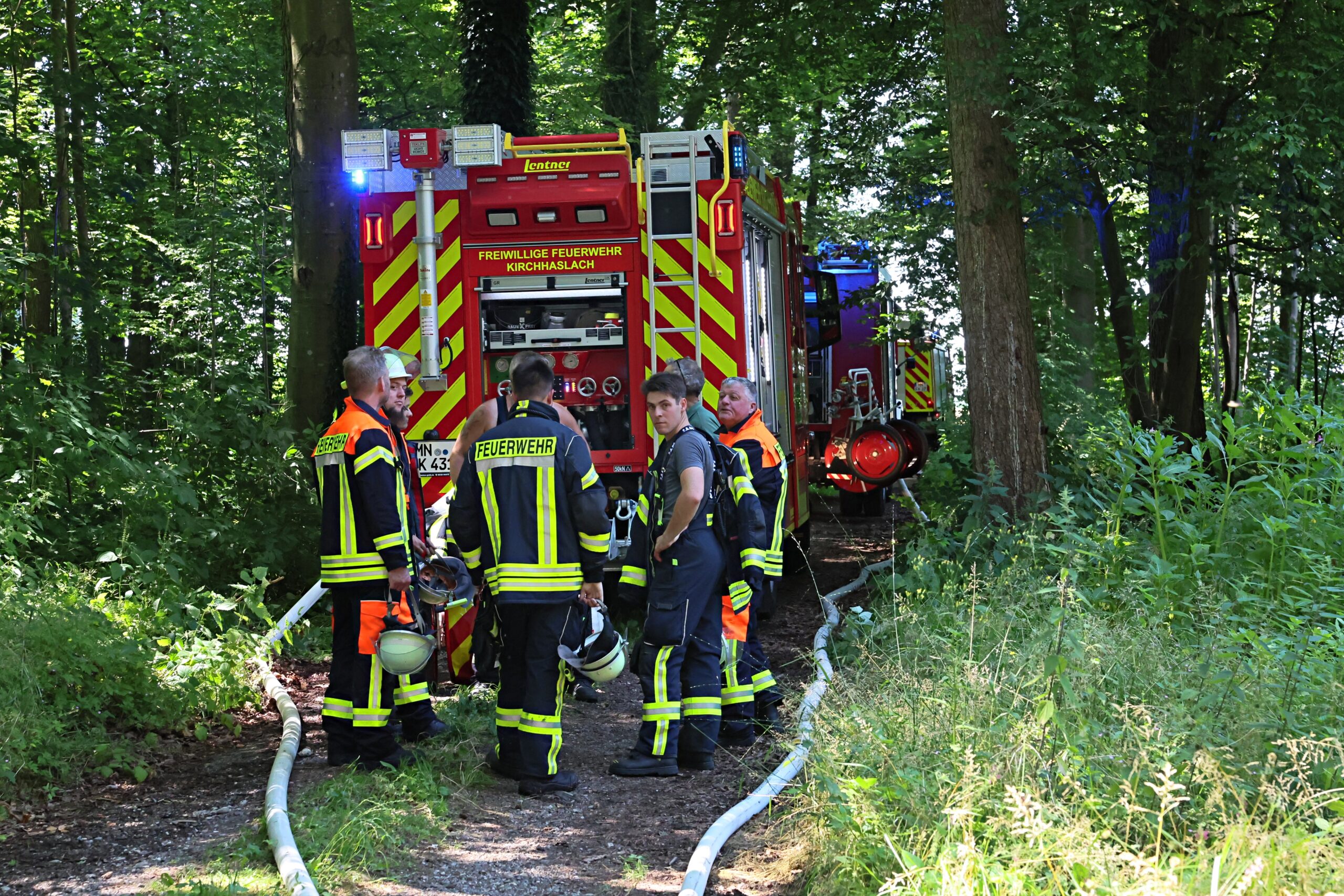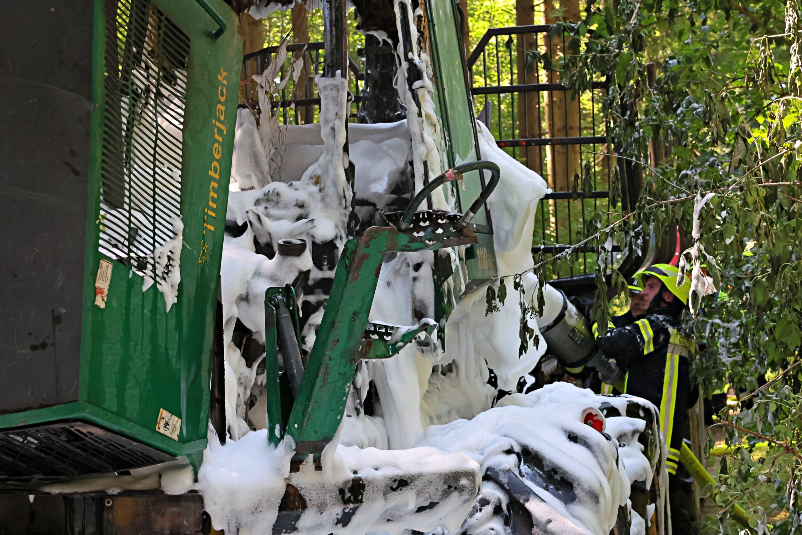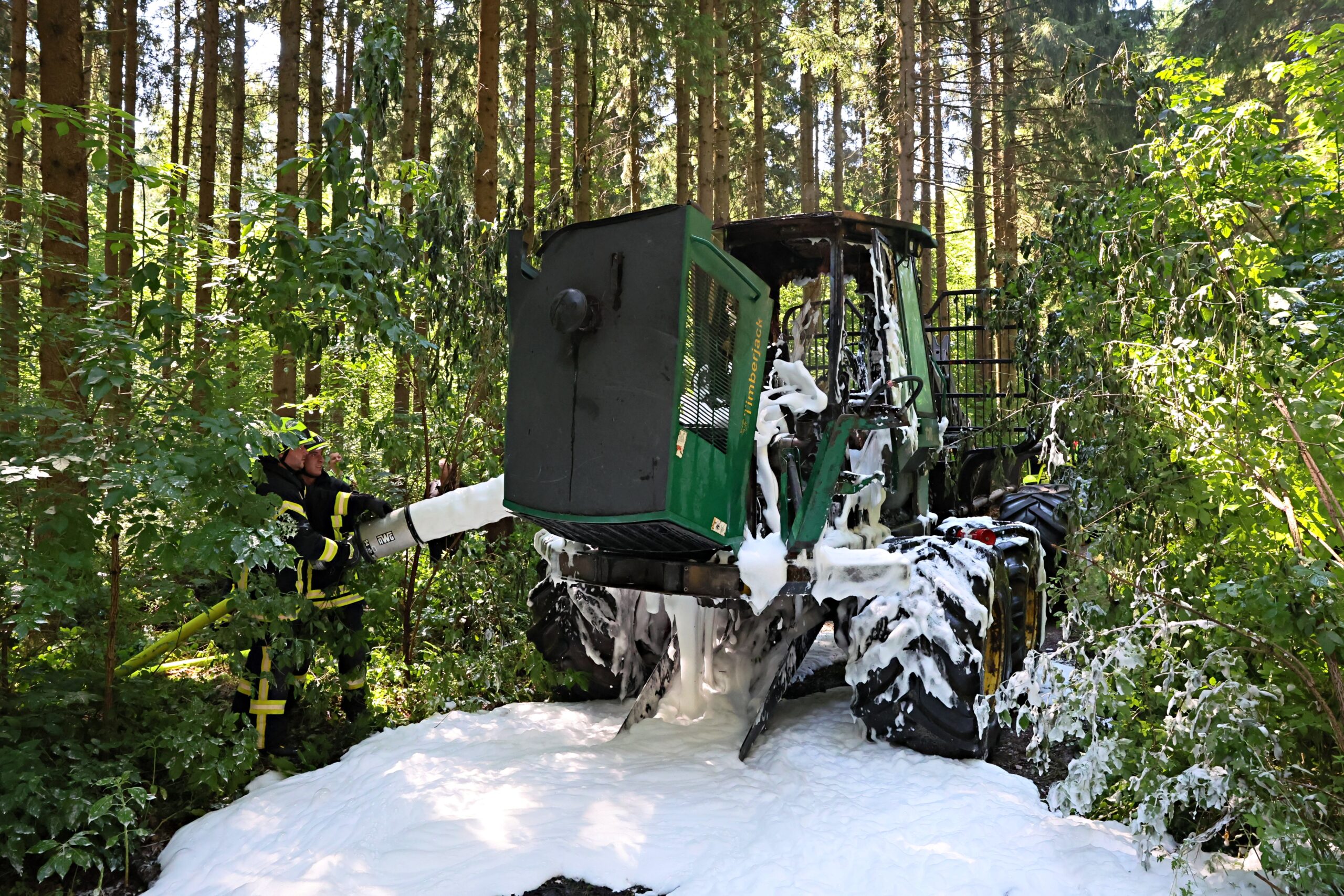 Dank des schnellen und koordinierten Einsatzes der umliegenden Feuerwehren konnte Schlimmeres verhindert werden. Die Einsatzkräfte waren rasch vor Ort, löschten den Brand zügig und kühlten die Maschine ab. Durch ihr schnelles Handeln wurde ein Übergreifen der Flammen auf den angrenzenden Wald verhindert – ein möglicher großflächiger Waldbrand konnte so abgewendet werden.