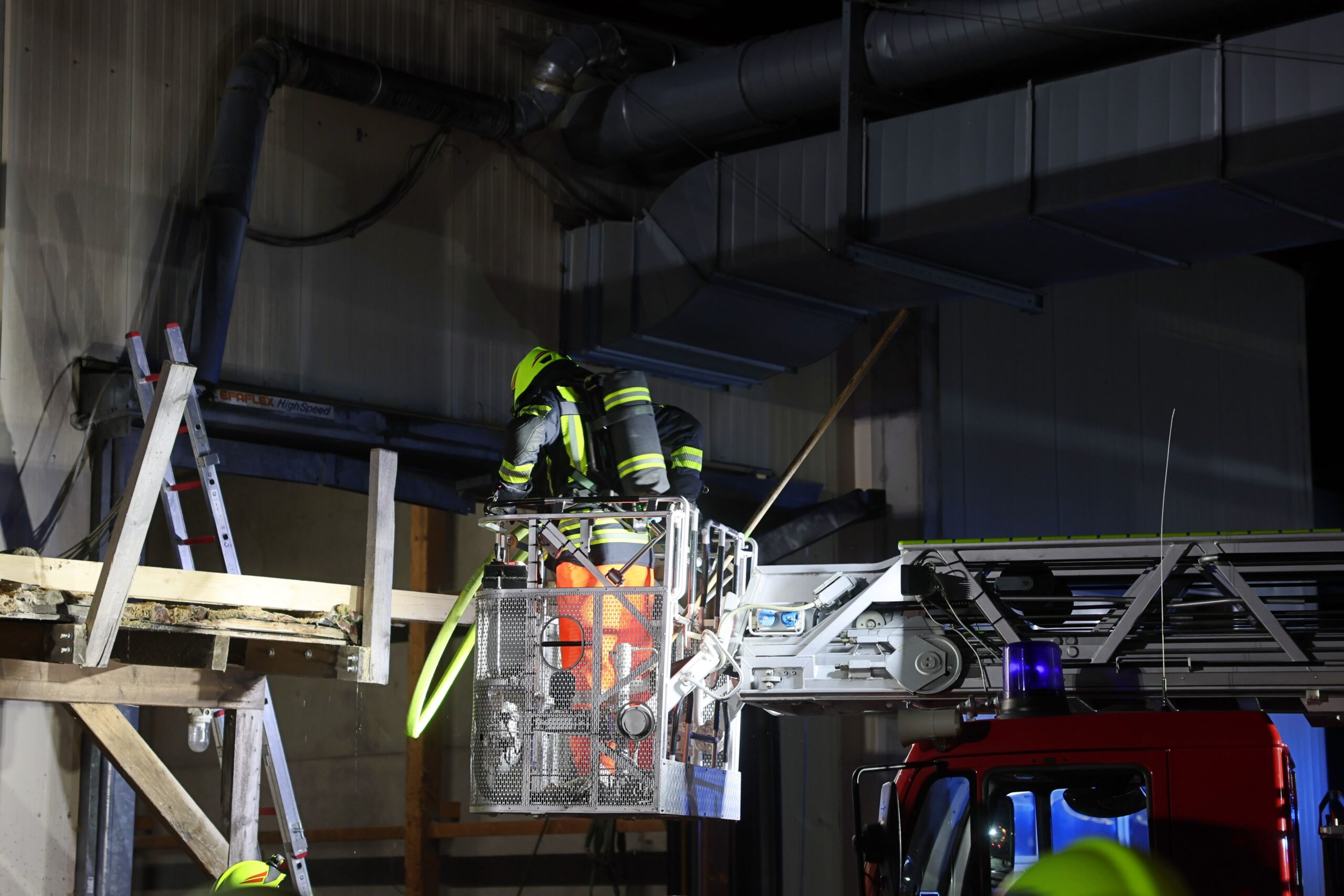 Beim Eintreffen der Feuerwehren stand zunächst die Gefahrenbeurteilung im Vordergrund. Mit Wärmebildkameras wurden angrenzende Gebäudeteile überprüft, um eine Ausbreitung des Feuers auszuschließen. Über die Drehleiter der Feuerwehr Altenstadt an der Iller öffneten die Einsatzkräfte anschließend die Blechabdeckung des Silos, um an den Brandherd zu gelangen. Unter schwerem Atemschutz wurde das Silo händisch mit Schaufeln ausgeräumt und die Seitenverkleidung weiter geöffnet – ein kräftezehrender und zeitintensiver Einsatz.