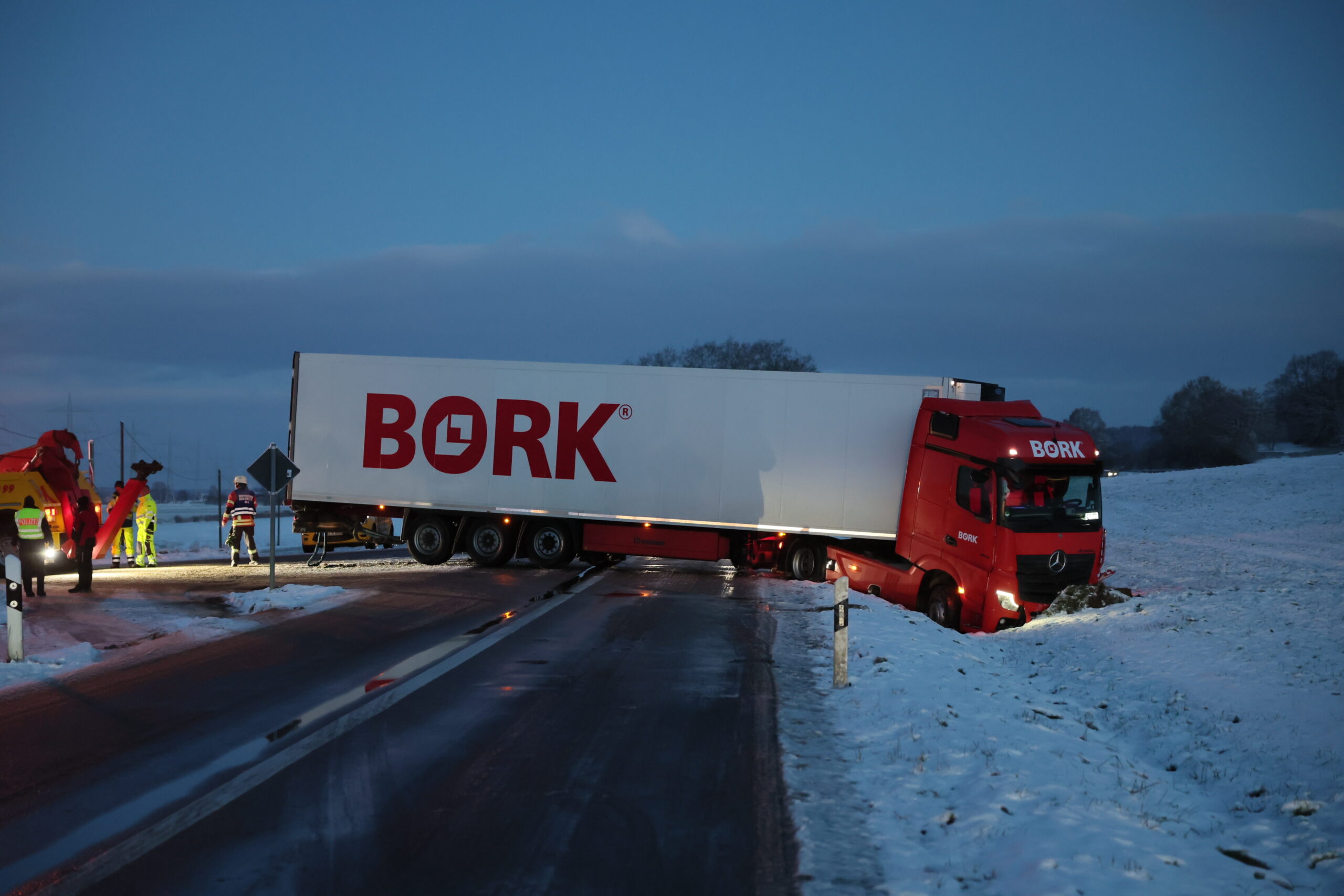 Ein Kühlsattelzug ist am Freitagmorgen bei einem Unfall auf der St2020, in der Nähe von Babenhausen-Oberroth, im Graben gelandet. Der Lkw, der aus Osterberg kommend in Richtung Babenhausen unterwegs war, dürfte mit zu viel Schwung die Kreuzung passiert haben. Anstatt in die gewünschte Richtung zur BAB A7 abzubiegen, rutschte der Sattelzug über die Kreuzung hinweg und landete schließlich im Graben.