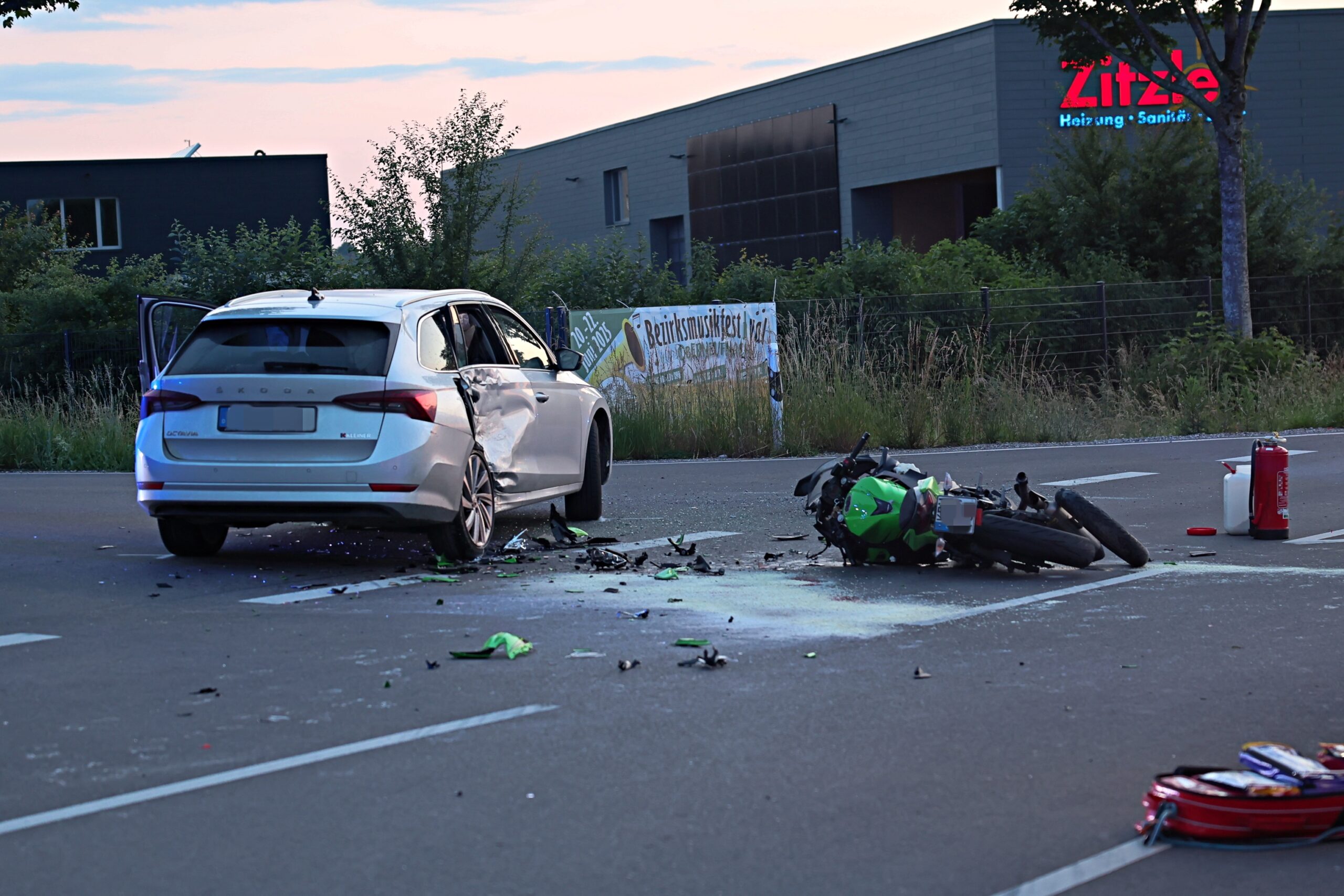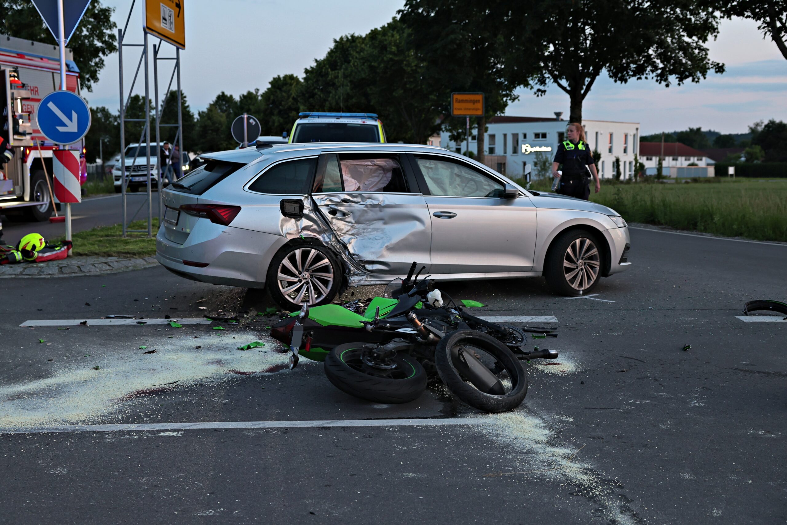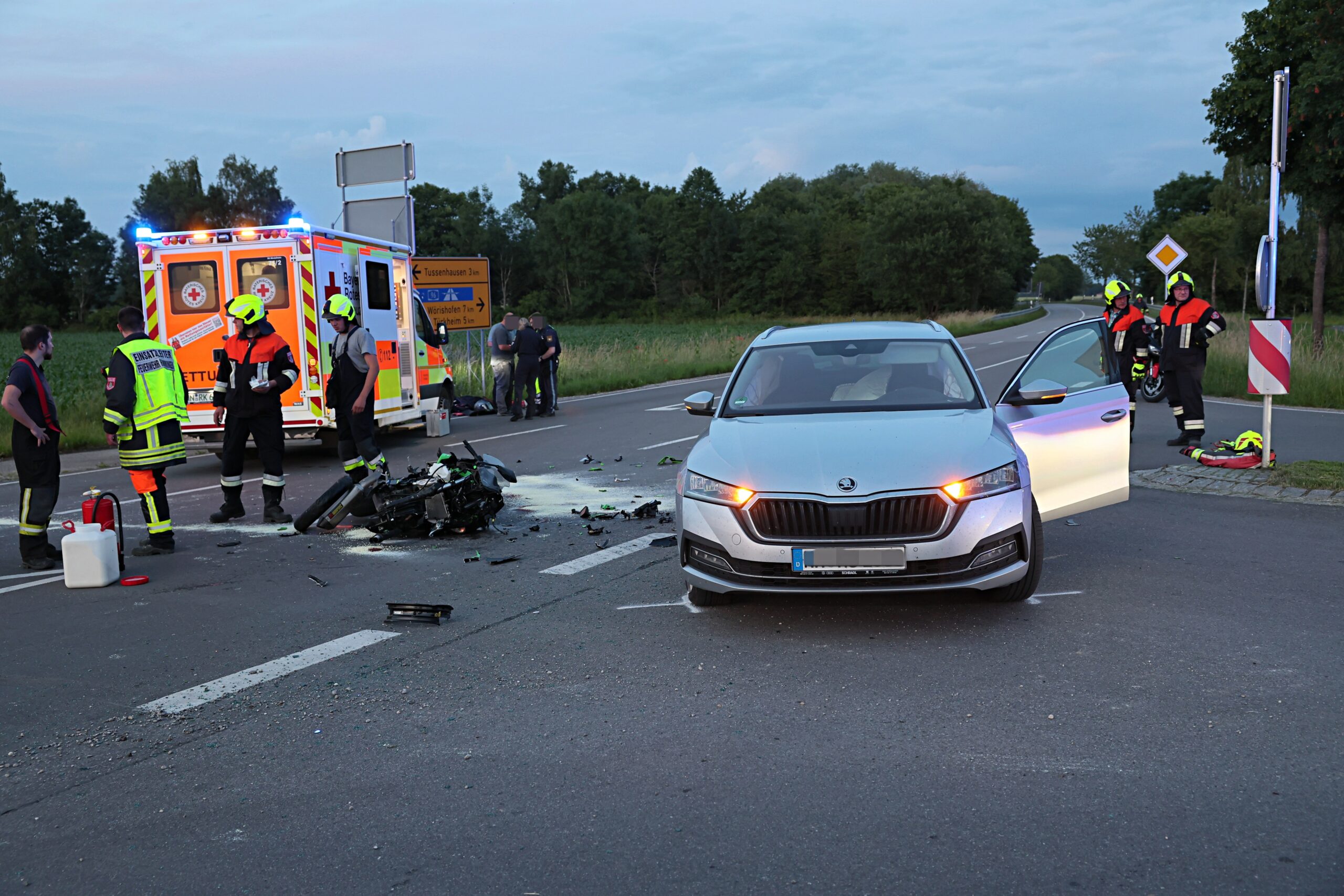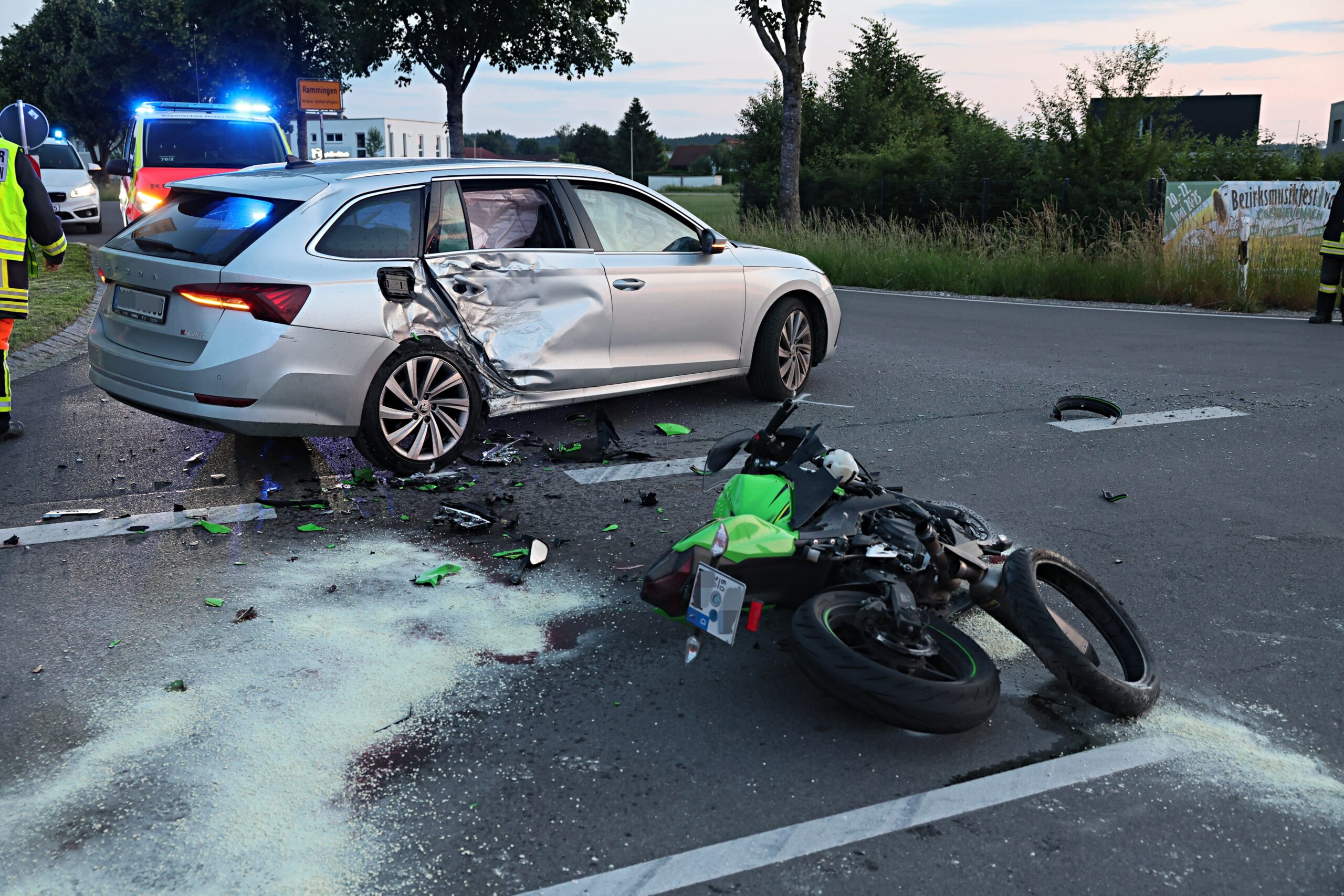 Am Montagabend, dem 16. Juni 2025, ereignete sich gegen 20:44 Uhr ein schwerer Verkehrsunfall an der Kreuzung der Kreisstraßen MN2 und MN23 bei Rammingen (Landkreis Unterallgäu). Ein 28-jähriger Autofahrer wollte aus Rammingen kommend auf die MN23 in Richtung Tussenhausen abbiegen. Dabei übersah er offenbar eine vorfahrtsberechtigte 21-jährige Motorradfahrerin, die sich aus Richtung Bad Wörishofen näherte.
