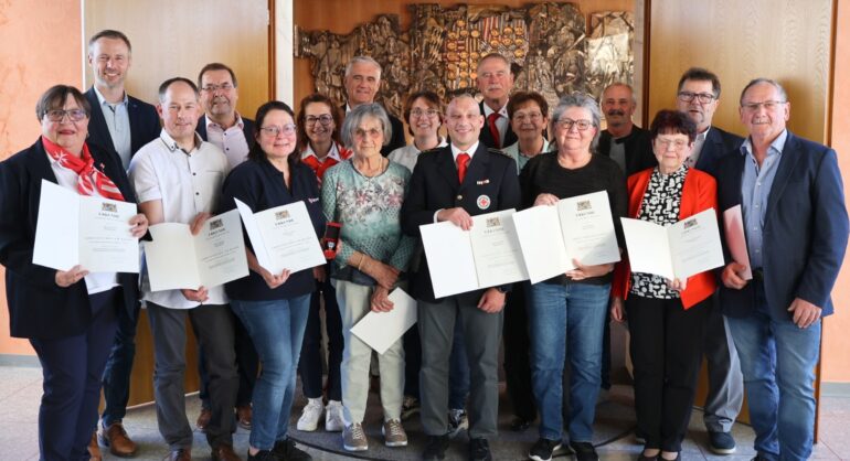 Geehrt wurden Helferinnen und Helfer mit 25, 40 und sogar 50 Dienstjahren. Sie engagieren sich unter anderem im Sanitätsdienst, Katastrophenschutz, bei der Wasserwacht, in der Seniorenarbeit oder beim Blutspendedienst. Laut Landrat Eder leisten sie damit einen wichtigen Beitrag für eine funktionierende Gesellschaft.