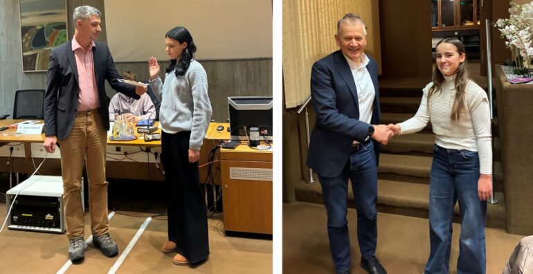 Zwei Nachrückerinnen von der Otl-Aicher-Realschule haben sofort zugesagt und bereits ihre Arbeit aufgenommen: Jana Pfau wurde im November von Bürgermeister Dr. Daniel Gallasch vereidigt, Sophie Fimpel folgte im Januar und sprach die Verpflichtungsformel mit Oberbürgermeister Hans-Jörg Henle.