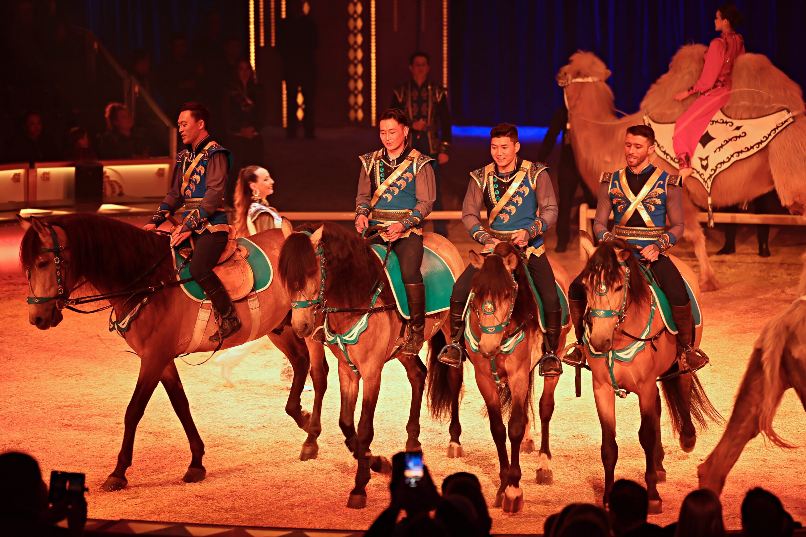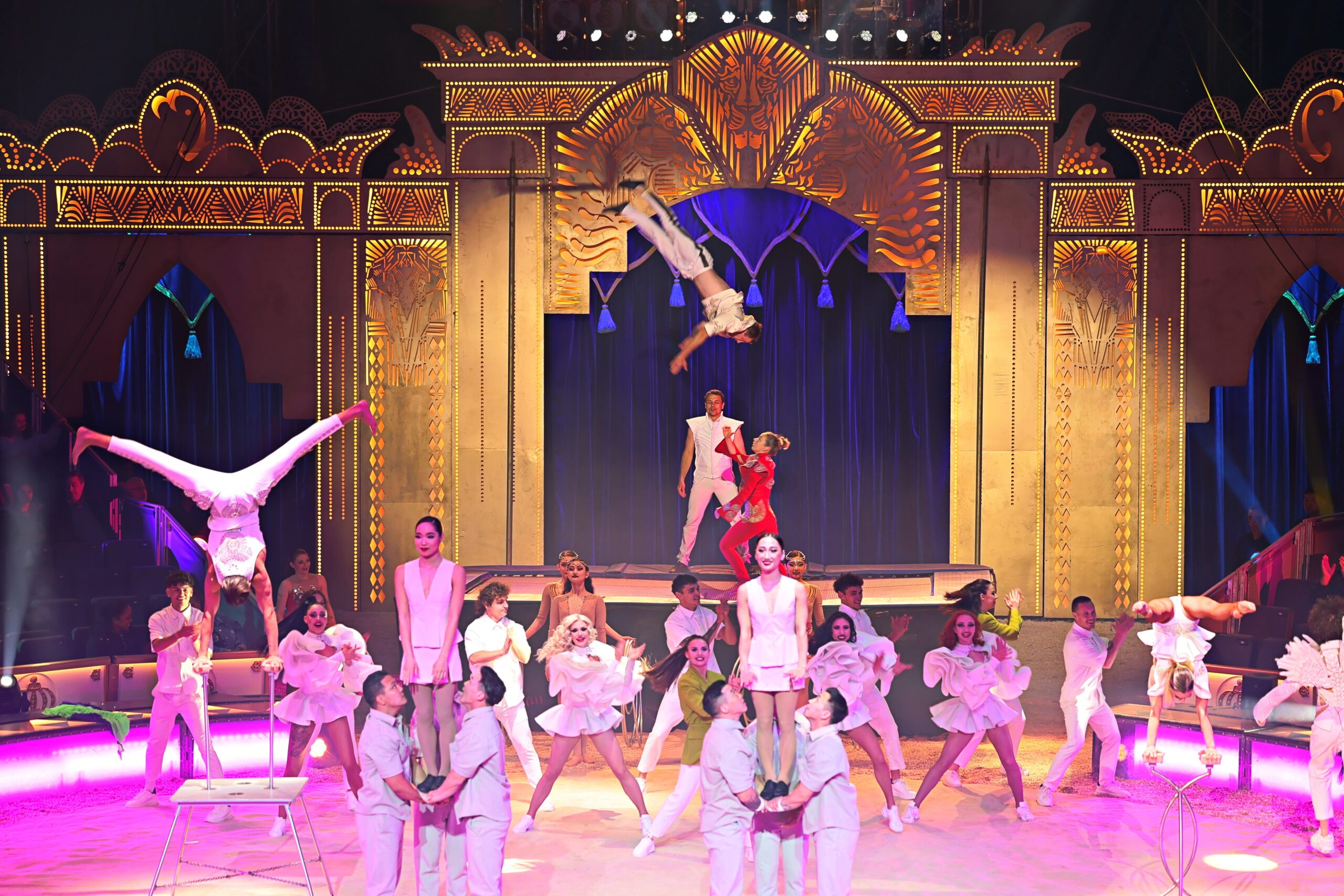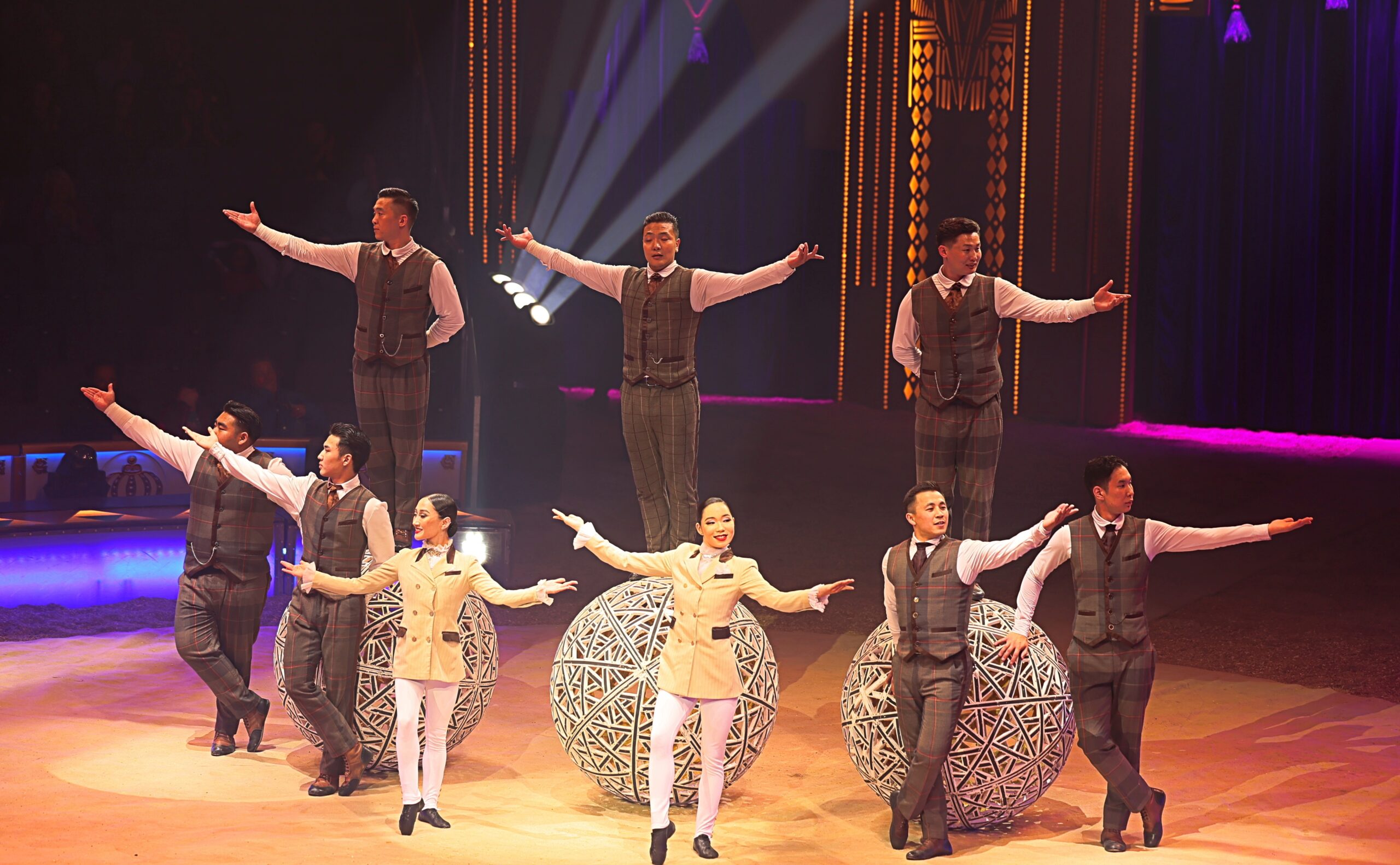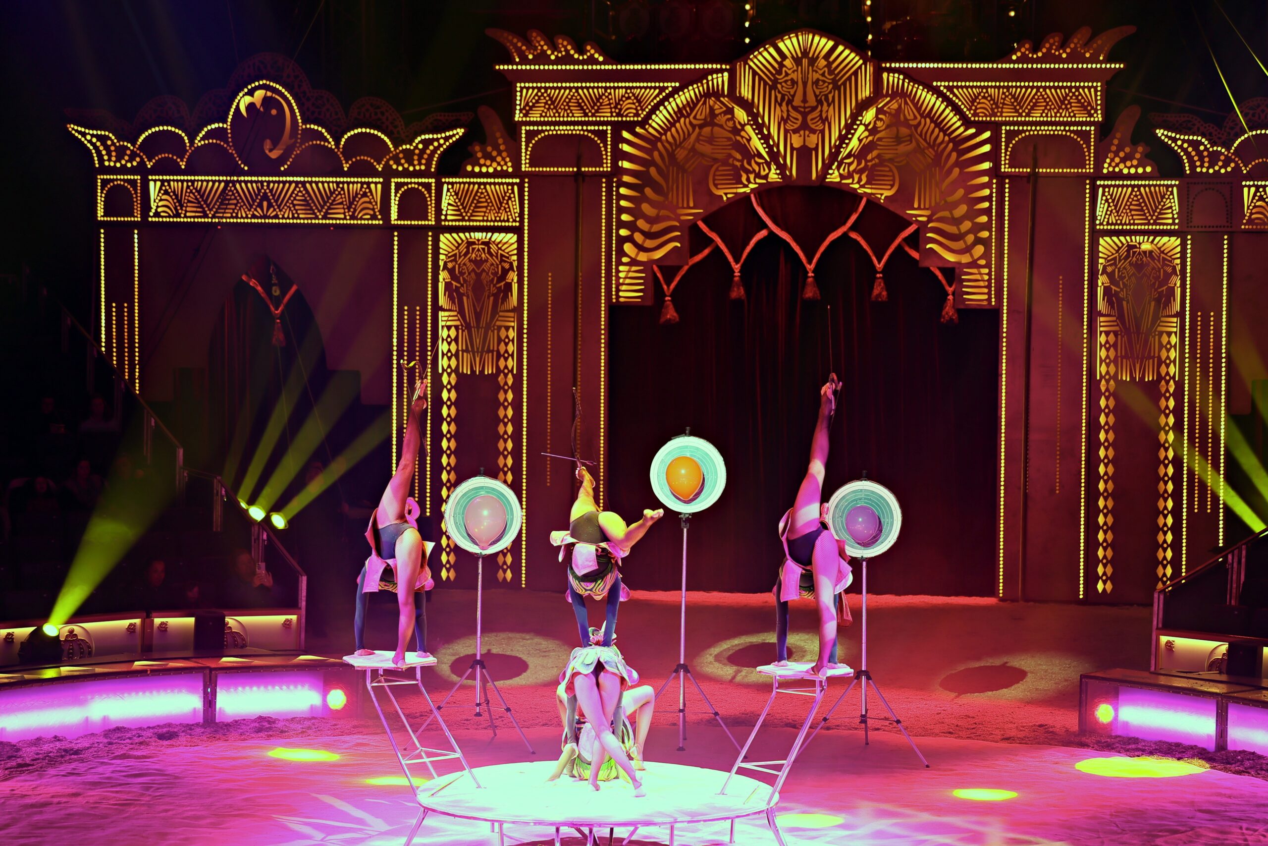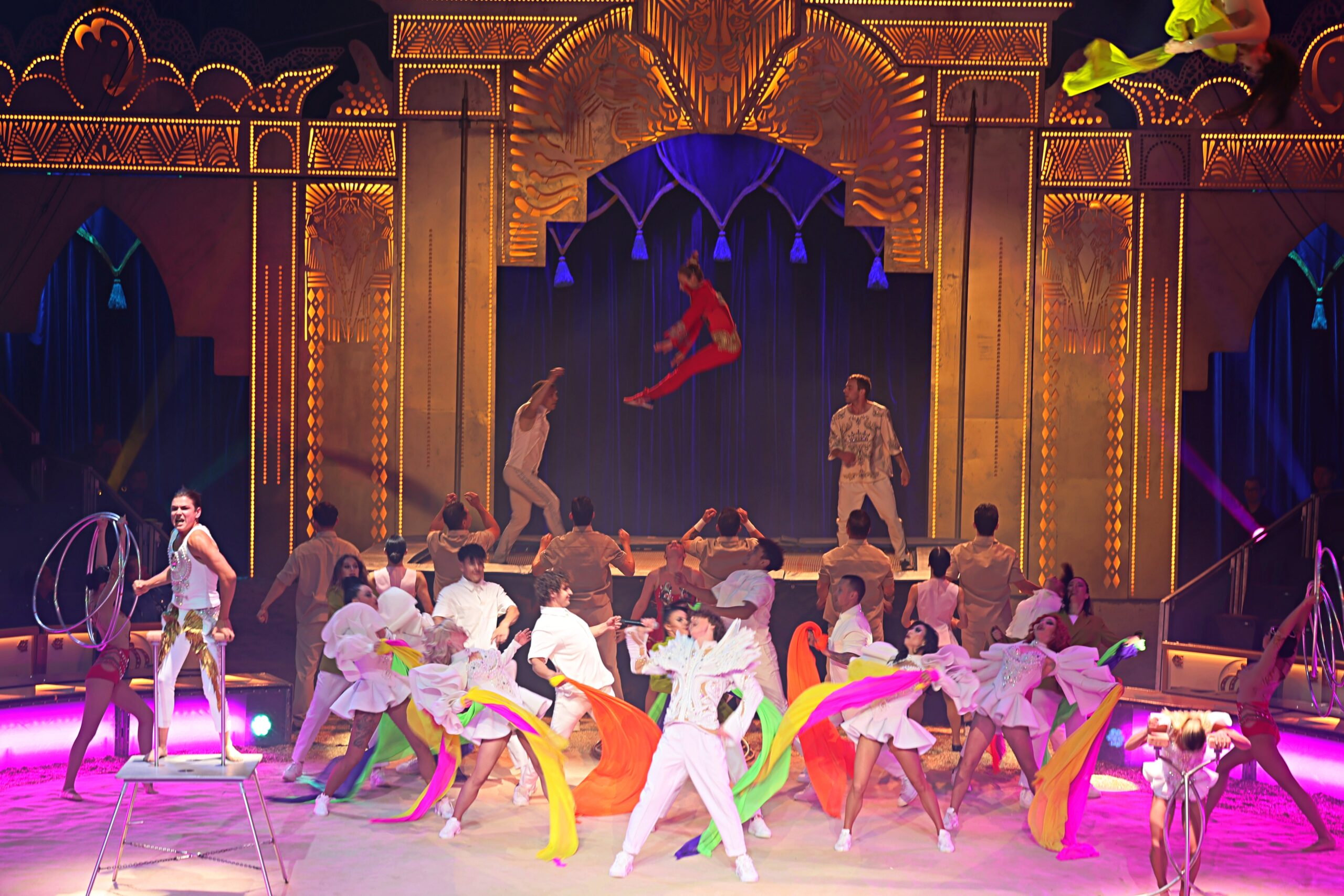 Die Show selbst ist ein Feuerwerk aus Bewegung, Licht und Emotion. Diabolo-Künstler Chu Chuan-Ho aus Taiwan begeistert mit Präzision und Tempo, während Akrobatinnen aus der Mongolei mit Balancekünsten und pfeilschnellen Fußschüssen beeindrucken. In luftiger Höhe sorgt die US-amerikanische Truppe „Flying Tabaras“ mit waghalsigen Sprüngen für Herzklopfen im Publikum. Moderne LED-Performances mit tanzenden Lichtern und Breakdance-Einlagen schlagen eine Brücke zur Gegenwart.