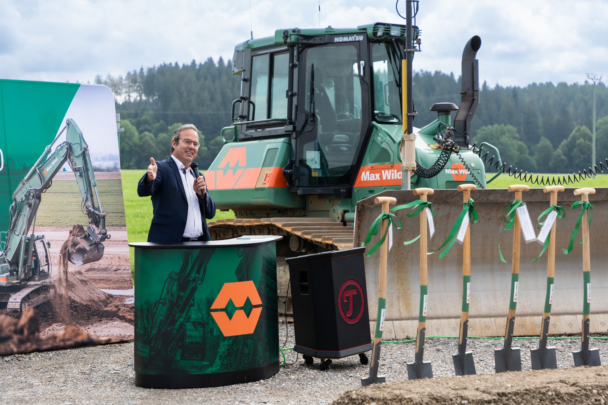 „Unser Standort im Allgäu hat sich toll entwickelt. Für uns war es daher nur folgerichtig, dass wir ihn weiter ausbauen. Es freut mich ganz besonders, dass wir einen modernen Neubau in Friesenhofen bekommen und die Bauarbeiten dafür jetzt beginnen“, betont Christian Wild, Geschäftsführer der Max Wild GmbH. In Leutkirch ist das Familienunternehmen bereits seit sieben Jahren mit einem Standort im Ortsteil Urlau vertreten. Auf dem Gelände des ehemaligen Bahnhofs wurden bislang Container genutzt. „Das hatte immer den Charakter einer Art Übergangslösung. Für uns ist es aber wichtig, hier in der Region einen festen Sitz zu haben, daher der Neubau“, ergänzt Christian Wild.