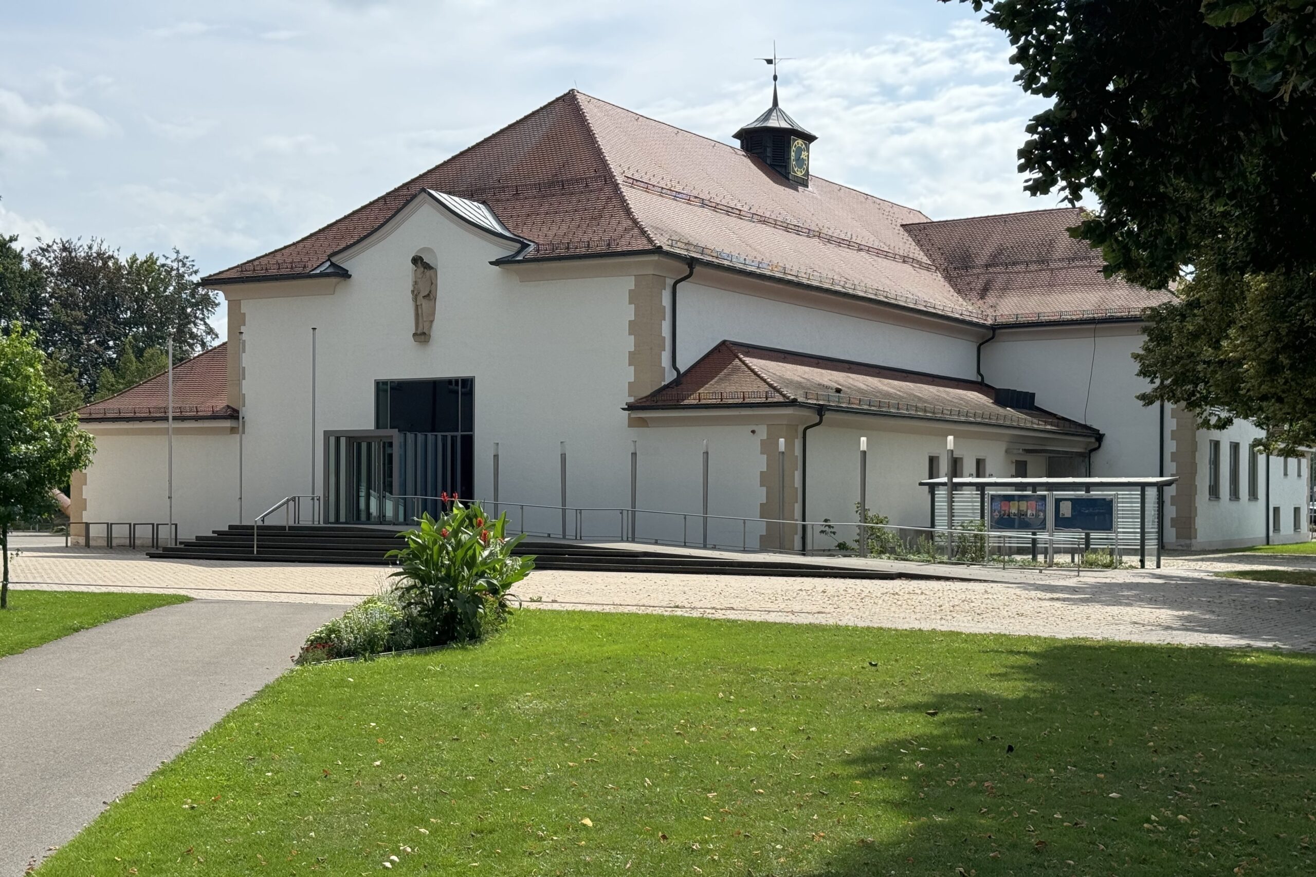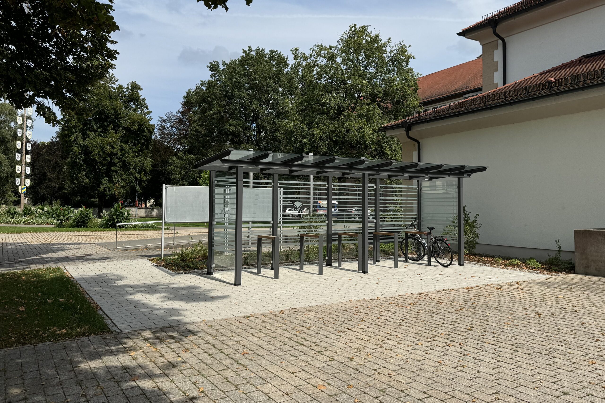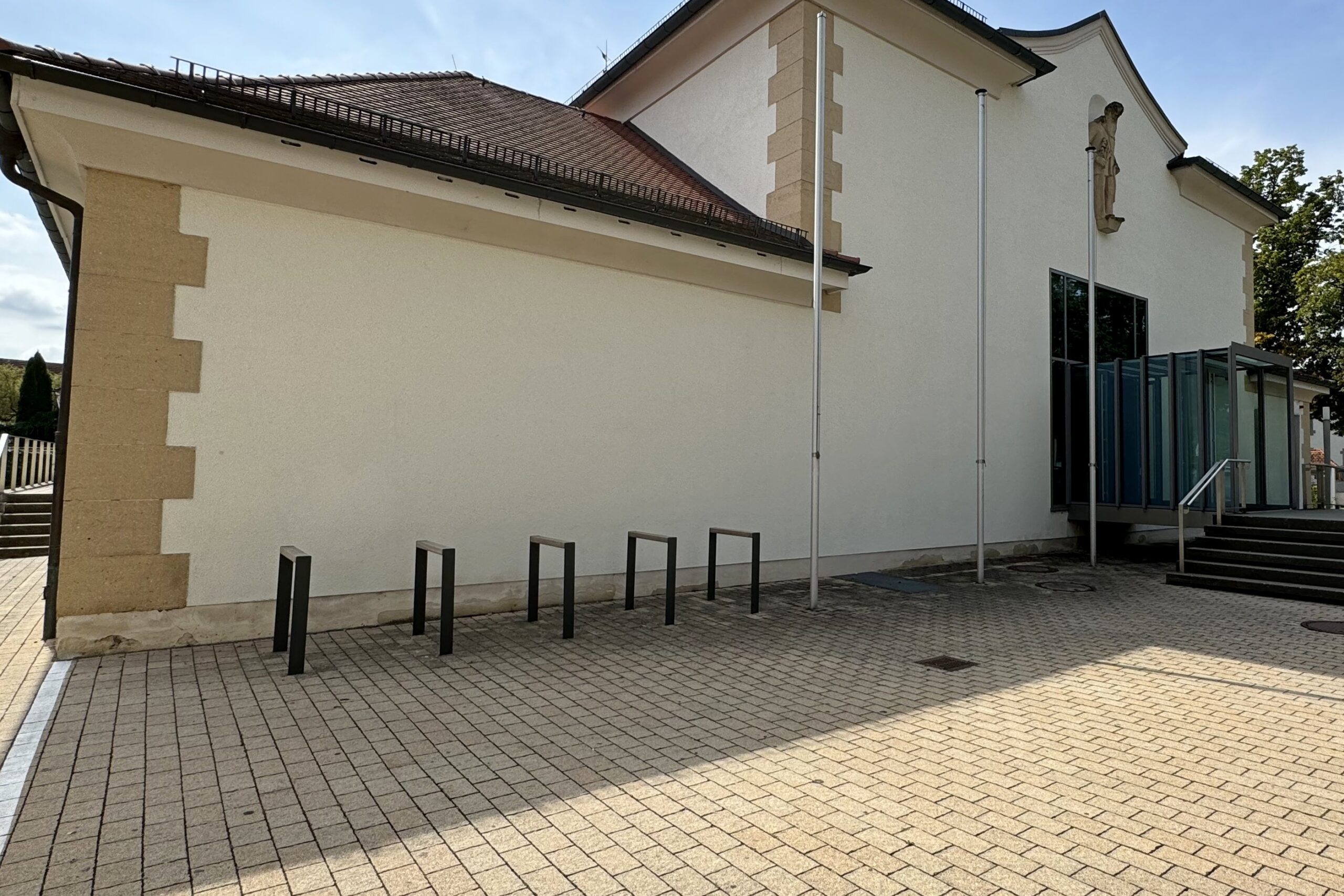 Die Stadt Leutkirch hat an der Festhalle eine neue, moderne Fahrradabstellanlage errichtet. Die Anlage bietet Platz für bis zu zehn Fahrräder, die an fünf stabilen Anlehnbügeln sicher abgestellt werden können. Eine Überdachung schützt die Fahrräder vor Regen und sorgt für wetterfesten Komfort. Zusätzlich wurden am Eingangsbereich der Festhalle fünf weitere Anlehnbügel installiert, um die Kapazität zu erweitern und den Radverkehr zu fördern.