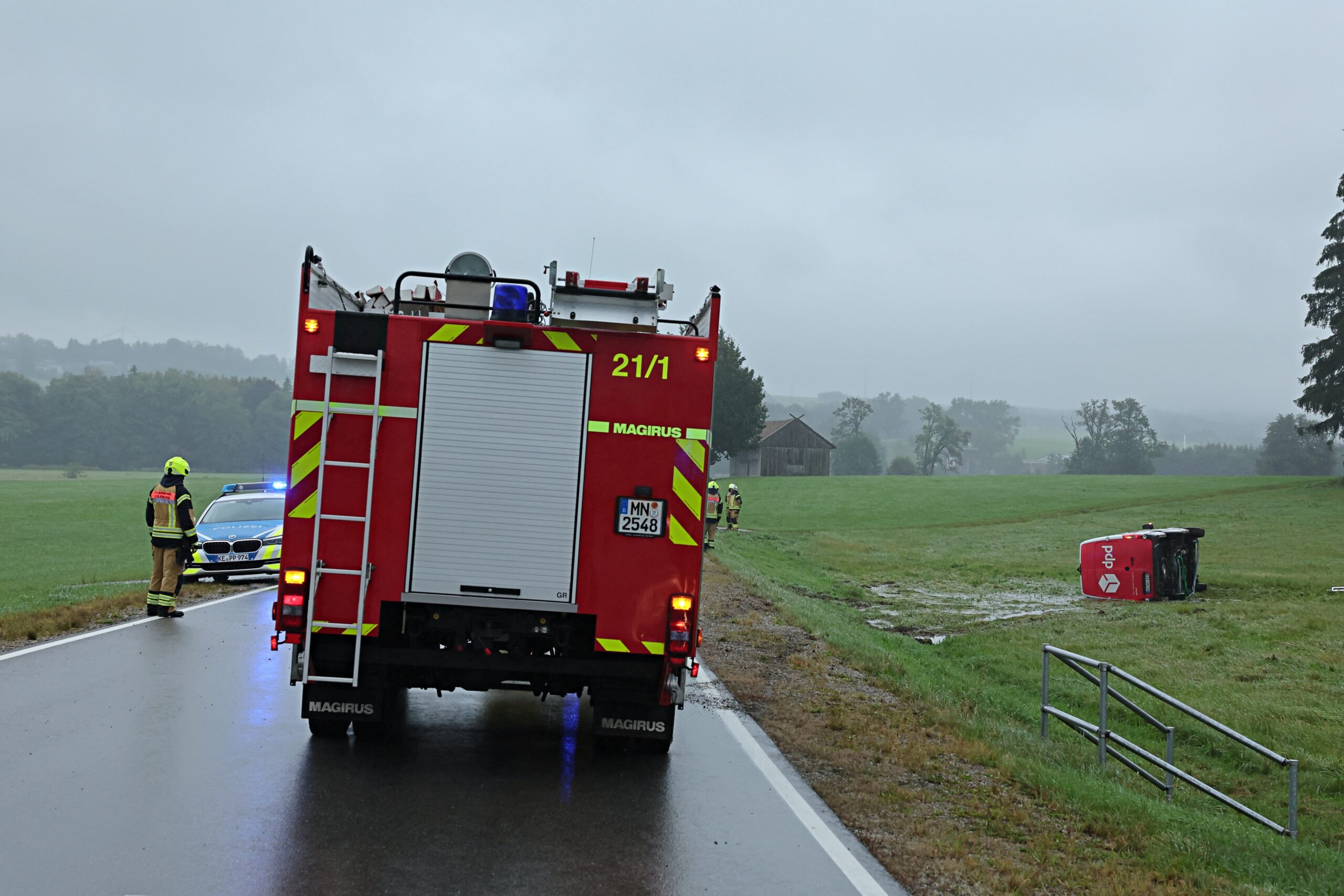 Am späten Montagnachmittag, dem 16. September 2024, ereignete sich auf der Ortsverbindungsstraße Unteregg in Richtung Warmisried, Landkreis Unterallgäu, ein Unfall mit einem Paketzustellfahrzeug. In einer Rechtskurve kam der Fahrer des Transporters nach rechts ins Bankett und verlor die Kontrolle über das Fahrzeug. Der Transporter kippte seitlich um und kam auf dem angrenzenden Feld zum Liegen. Der Fahrer erlitt bei dem Unfall Verletzungen.
