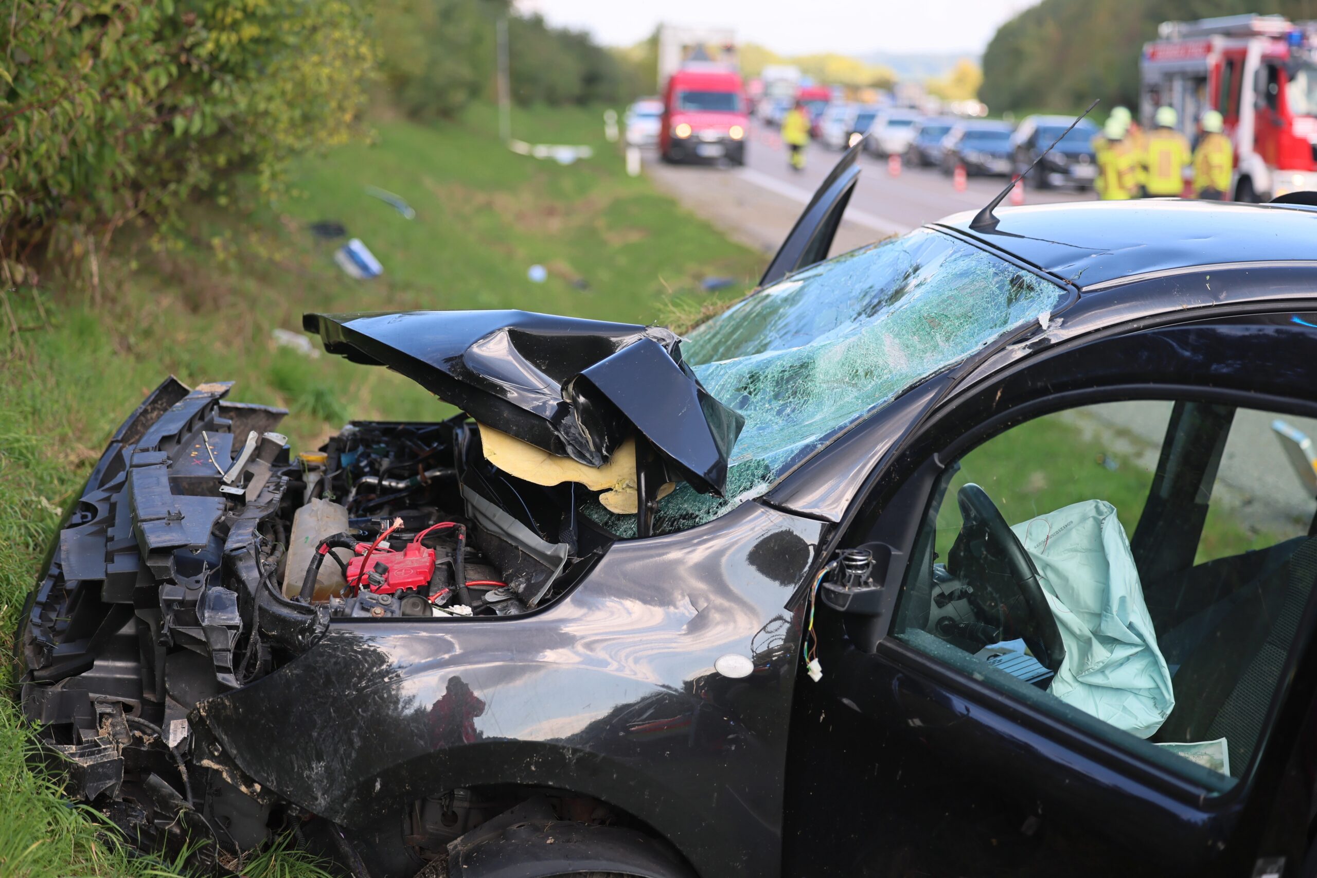 Eine 32-jährige Mitfahrerin, die mutmaßlich nicht angegurtet war, wurde aus dem Fahrzeug geschleudert. Sie erlitt schwere Verletzungen und wurde mit einem Rettungshubschrauber in eine Klinik gebracht. Die Fahrerin sowie der 38-jährige Beifahrer wurden leicht verletzt vom Rettungsdienst in Krankenhäuser gebracht. Am Mercedes entstand wirtschaftlicher Totalschaden in Höhe von rund 10.000 Euro. Das Fahrzeug wurde vom Abschleppdienst geborgen. Der Sachschaden an der Verkehrseinrichtung wird auf rund 5.000 Euro beziffert. Neben dem Rettungsdienst und der Polizei war auch die Freiwillige Feuerwehr am Unfallort im Einsatz. Die Ermittlungen zur Unfallursache dauern derzeit an. Die Autobahn war während der Unfallaufnahme bis kurz nach 16.30 Uhr teilweise voll gesperrt. Es kam zu einem enormen Rückstau und entsprechenden Behinderungen auf der Umleitungsstrecke.
