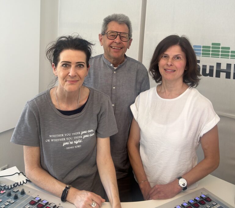 Bildunterschrift: Armin Walch – Geschäftsführer der Burgenwelt und Irene Eigler – stellvertretende Geschäftsführerin der Burgenwelt Ehrenberg und Moderatorin Marion Daltrozzo // Foto: AllgäuHIT