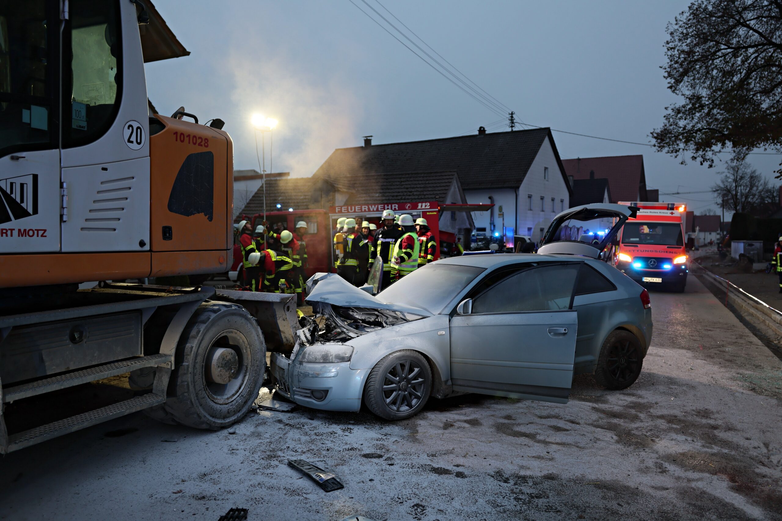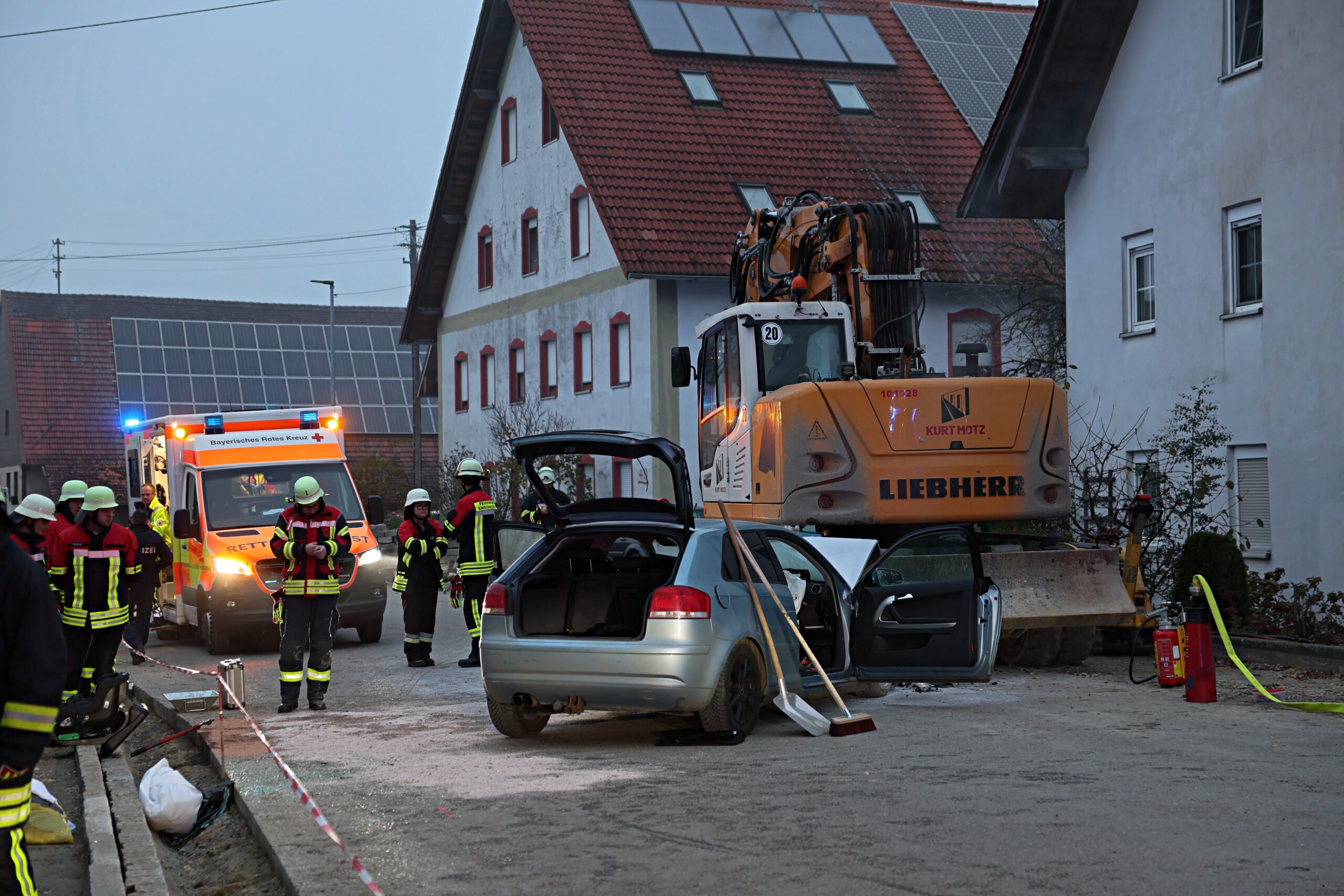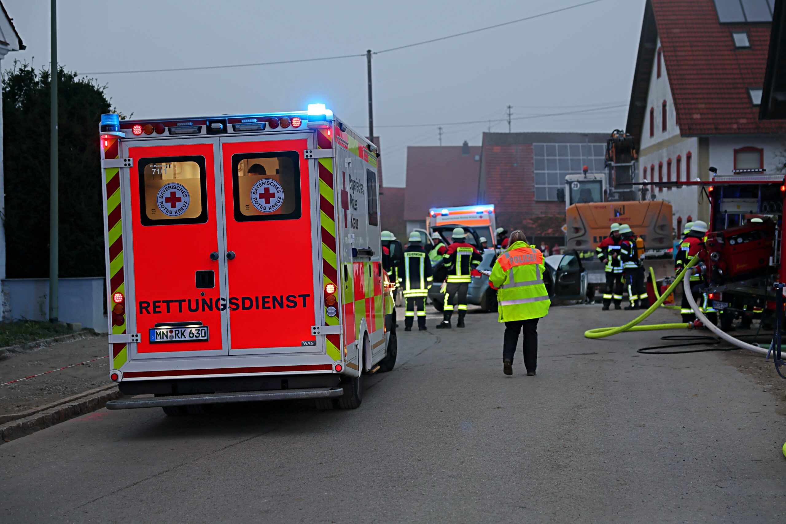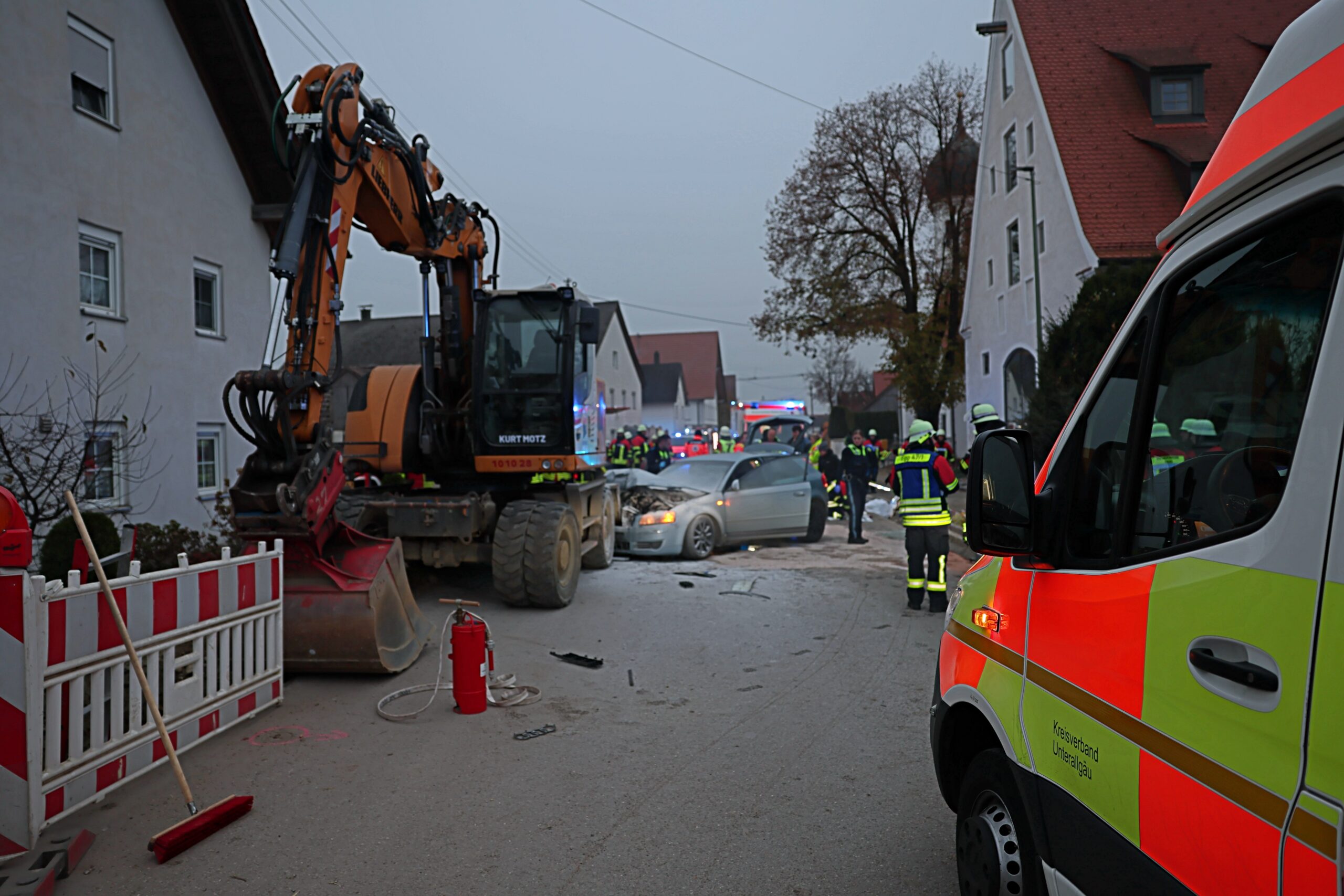 Allgäu Bagger Blaulicht Brand Egg An der Günz Einsatz Ersthelfer Polizei schwerverletzte Verkehrsunfall