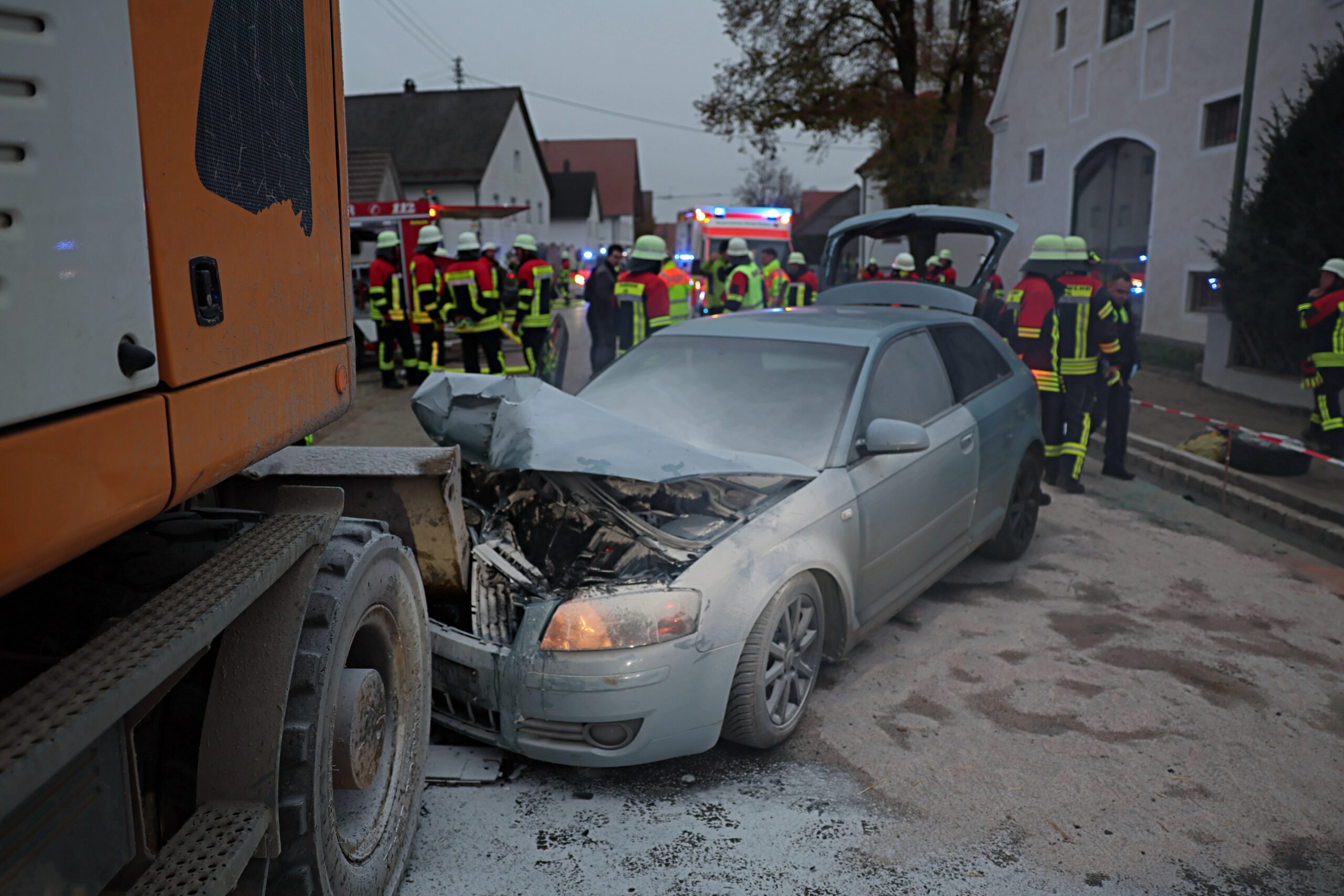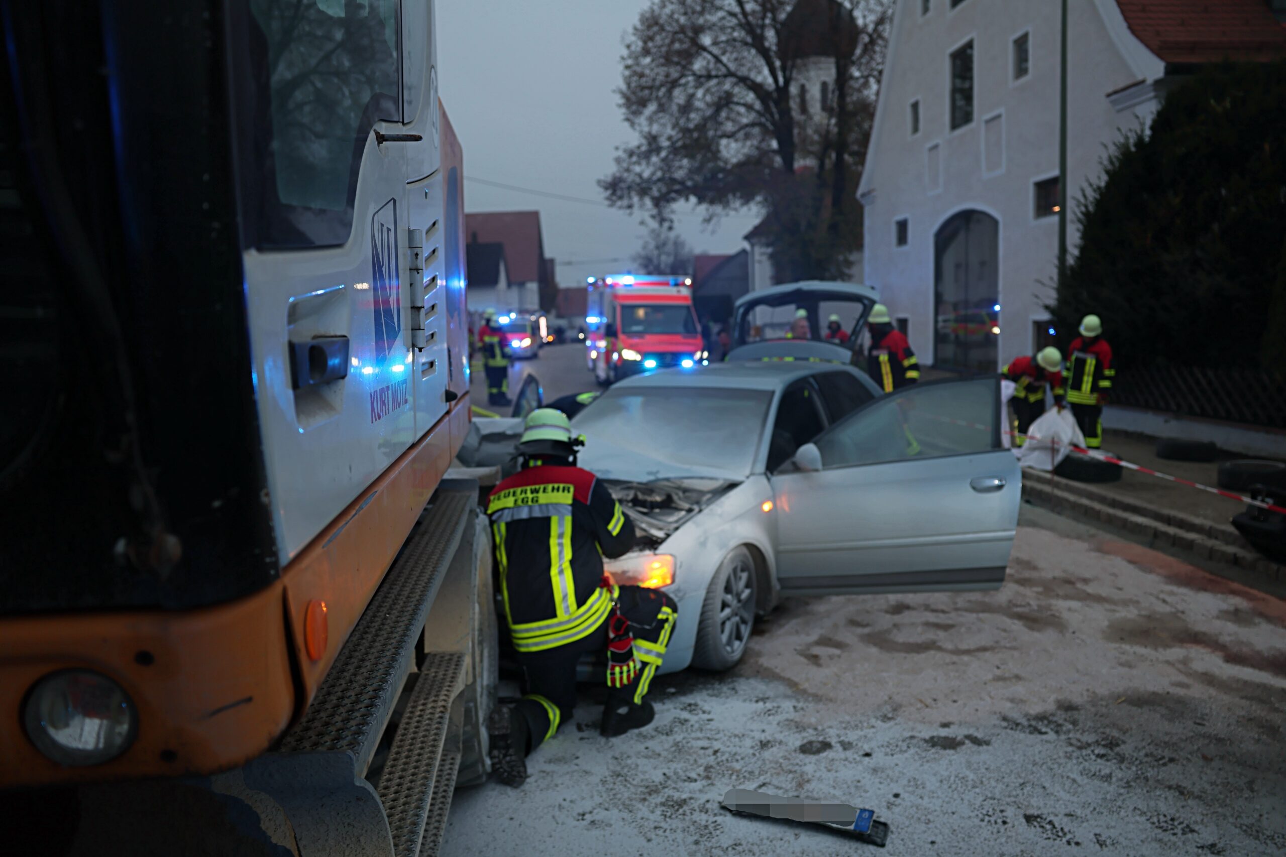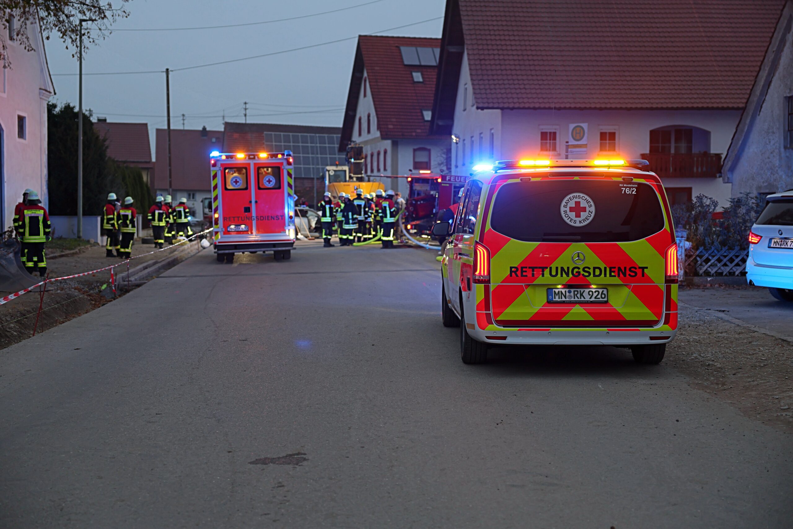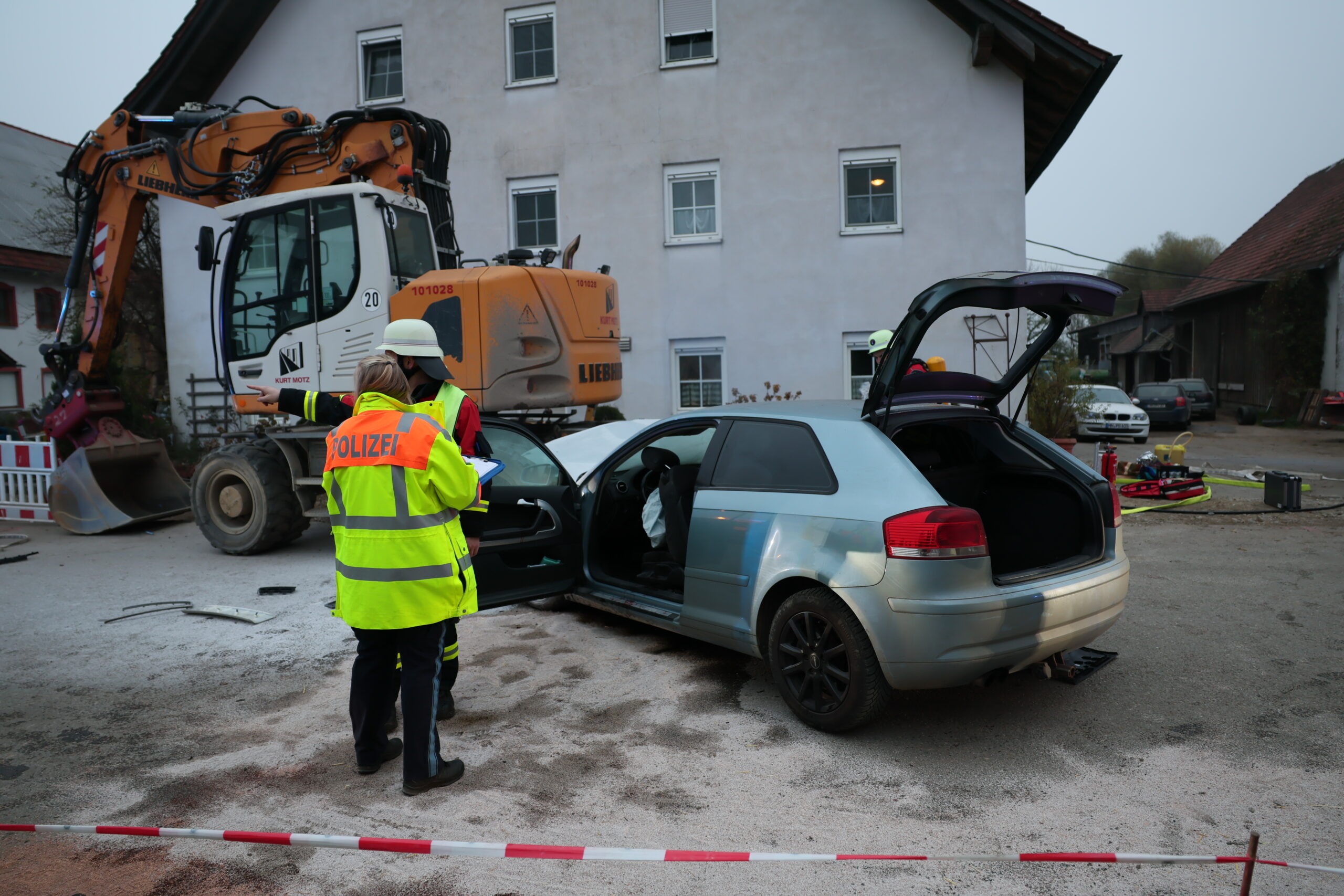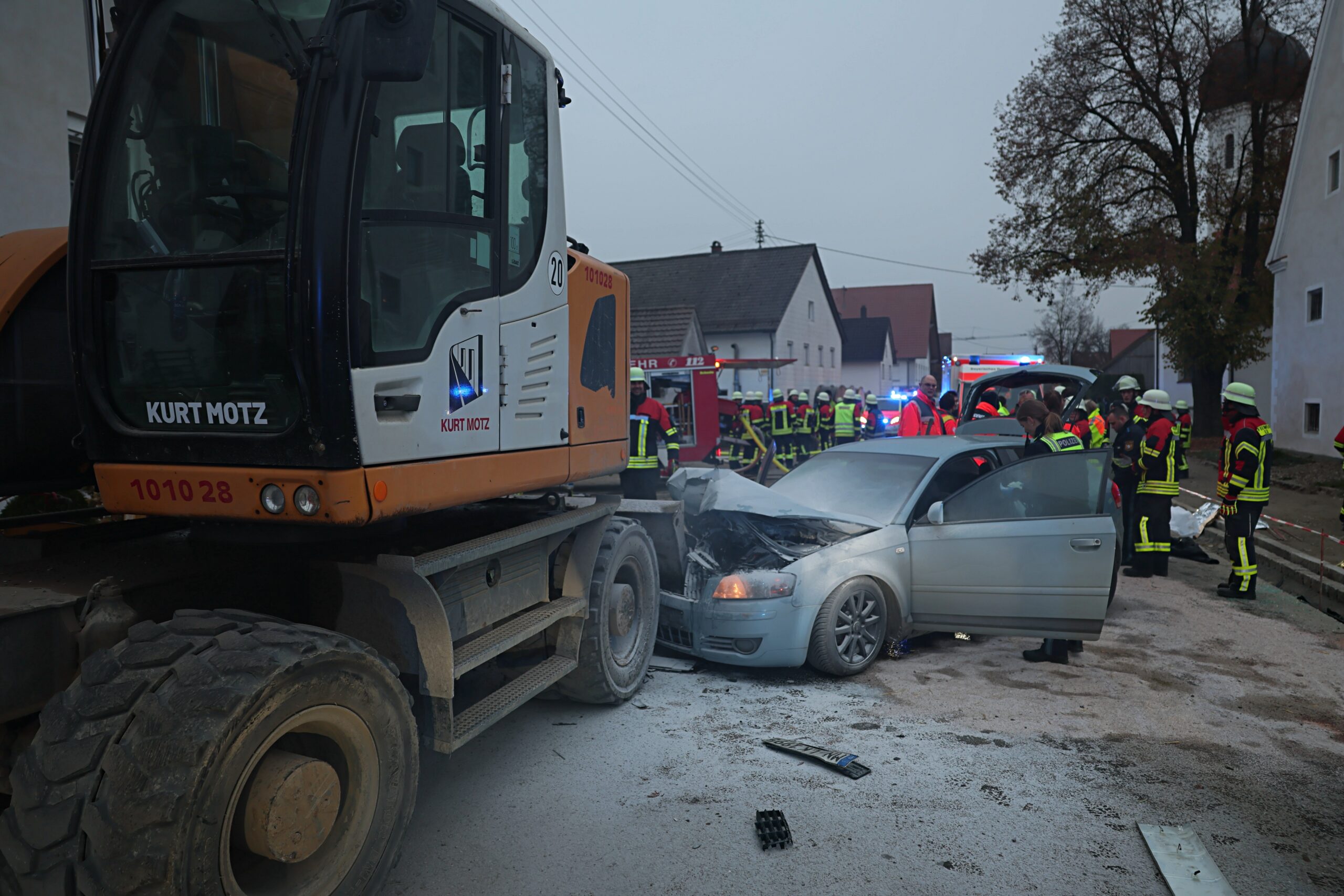 Allgäu Bagger Blaulicht Brand Egg An der Günz Einsatz Ersthelfer Polizei schwerverletzte Verkehrsunfall