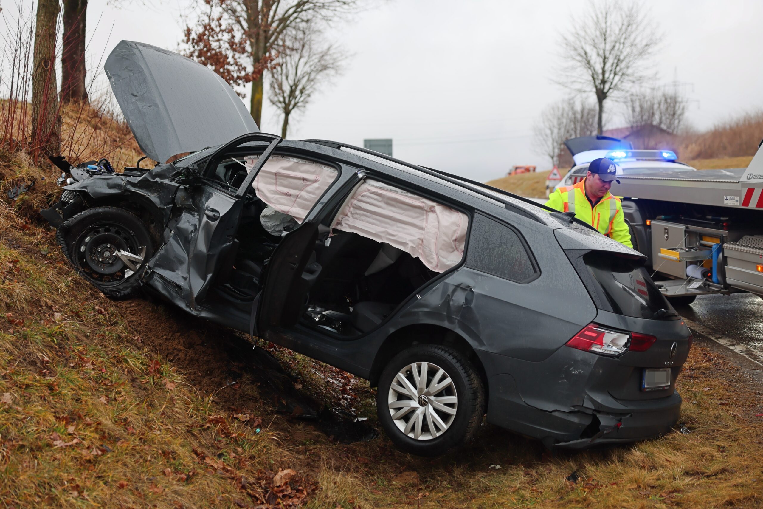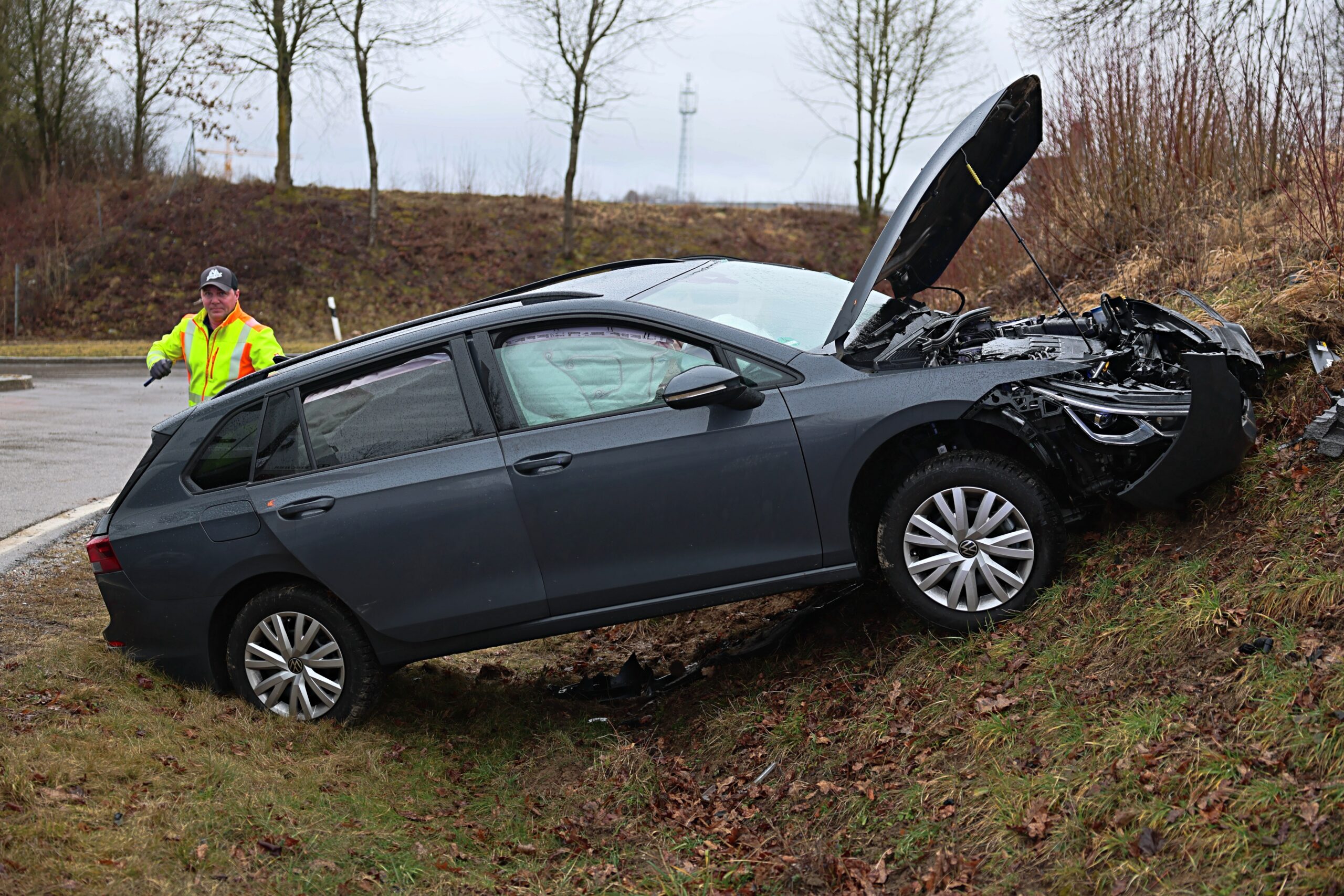 Ein ziviles Polizeifahrzeug der Bereitsschaftspolizei, das aus Richtung München kommend auf der A96 unterwegs war, fuhr an der Anschlussstelle Stetten ab. Dabei übersah der Polizist einen vorfahrtsberechtigten Pkw, der in Richtung Oberauerbach unterwegs war. Es kam zu einer Kollision zwischen den beiden Fahrzeugen, bei der das Polizeifahrzeug in der Böschung landete.