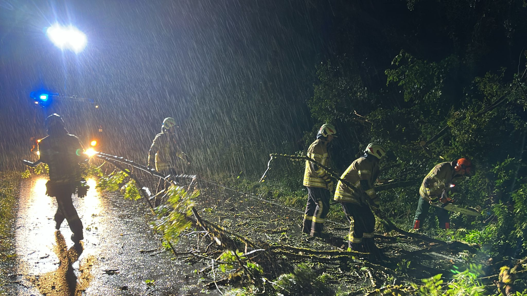 Hauptsächlich mussten umgestürzte Bäume von Straßen entfernt und lose Dachziegel gesichert werden, die von beschädigten Dächern herabzufallen drohten.