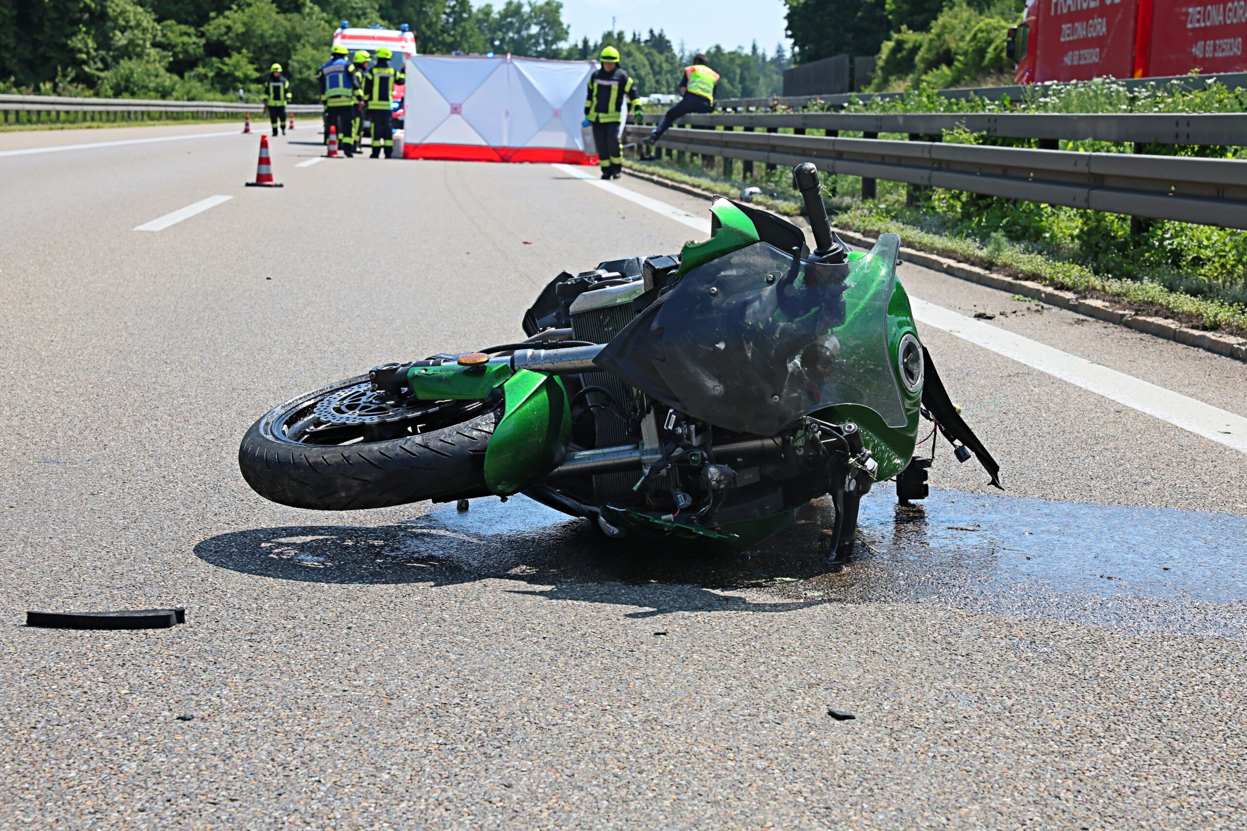 Am Dienstag gegen 14:10 Uhr kam es auf der Autobahn A7 in nördlicher Fahrtrichtung, kurz nach der Anschlussstelle Altenstadt, zu einem schweren Verkehrsunfall mit tödlichem Ausgang. Ein 62-jähriger Motorradfahrer war mit hoher Geschwindigkeit auf seiner Kawasaki unterwegs, als er nach einer Kurve auf einen deutlich langsameren Nissan auffuhr. Durch den Zusammenstoß stürzte der Biker und erlitt dabei so schwere Verletzungen, dass er noch an der Unfallstelle verstarb.