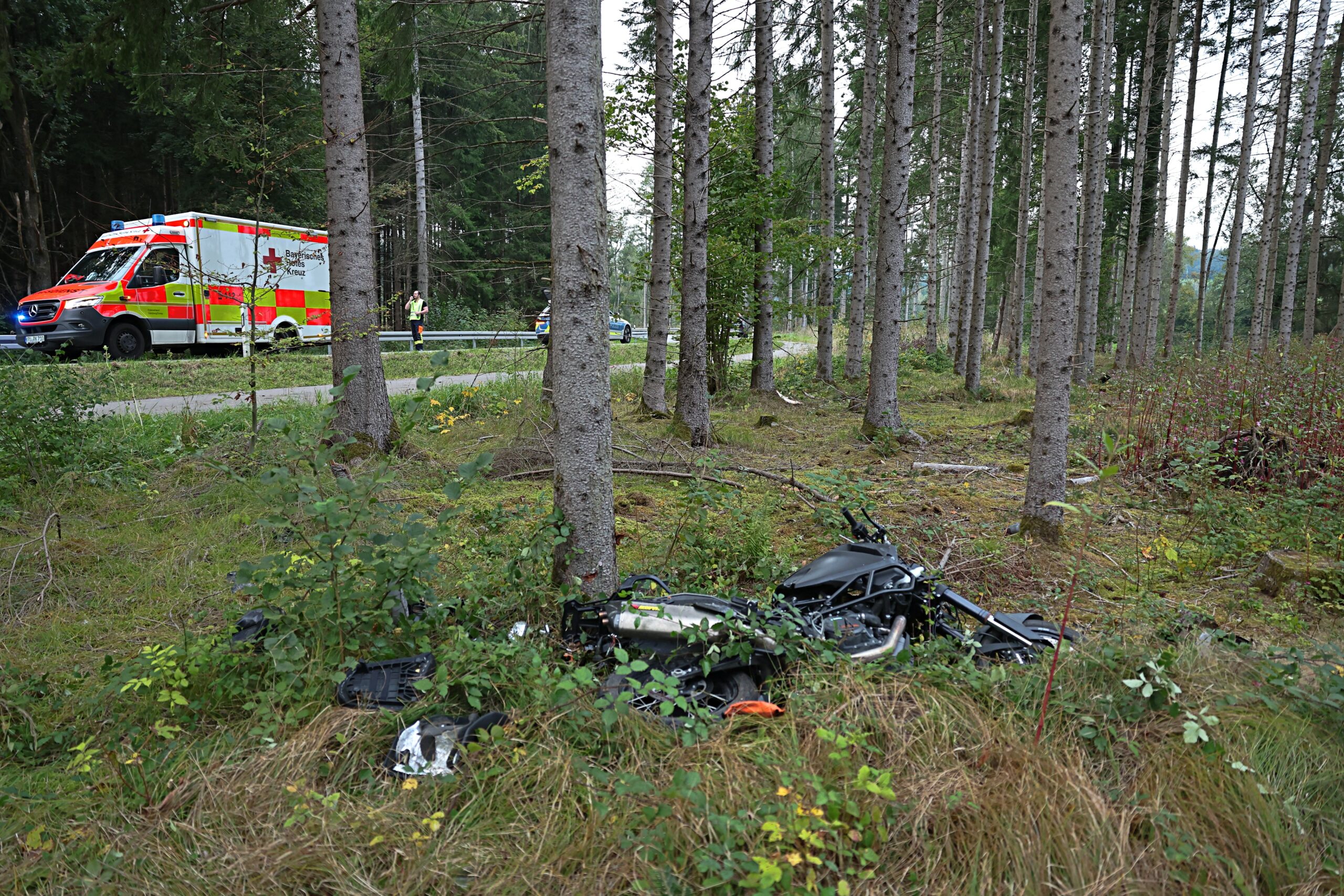 Am Sonntagnachmittag, ereignete sich gegen 17:10 Uhr auf der Staatsstraße St 2027 ein tragischer Verkehrsunfall mit einem Motorradfahrer, der tödlich endete. Ein 57-jähriger Mann war mit seinem Motorrad auf der Strecke von Obergessertshausen in Richtung Könghausen unterwegs, als er in einer langgezogenen Rechtskurve die Kontrolle über sein Fahrzeug verlor. Aus bislang ungeklärter Ursache kam er nach links von der Fahrbahn ab, überquerte einen parallel verlaufenden Radweg und prallte in einem angrenzenden Waldstück gegen mehrere Bäume.