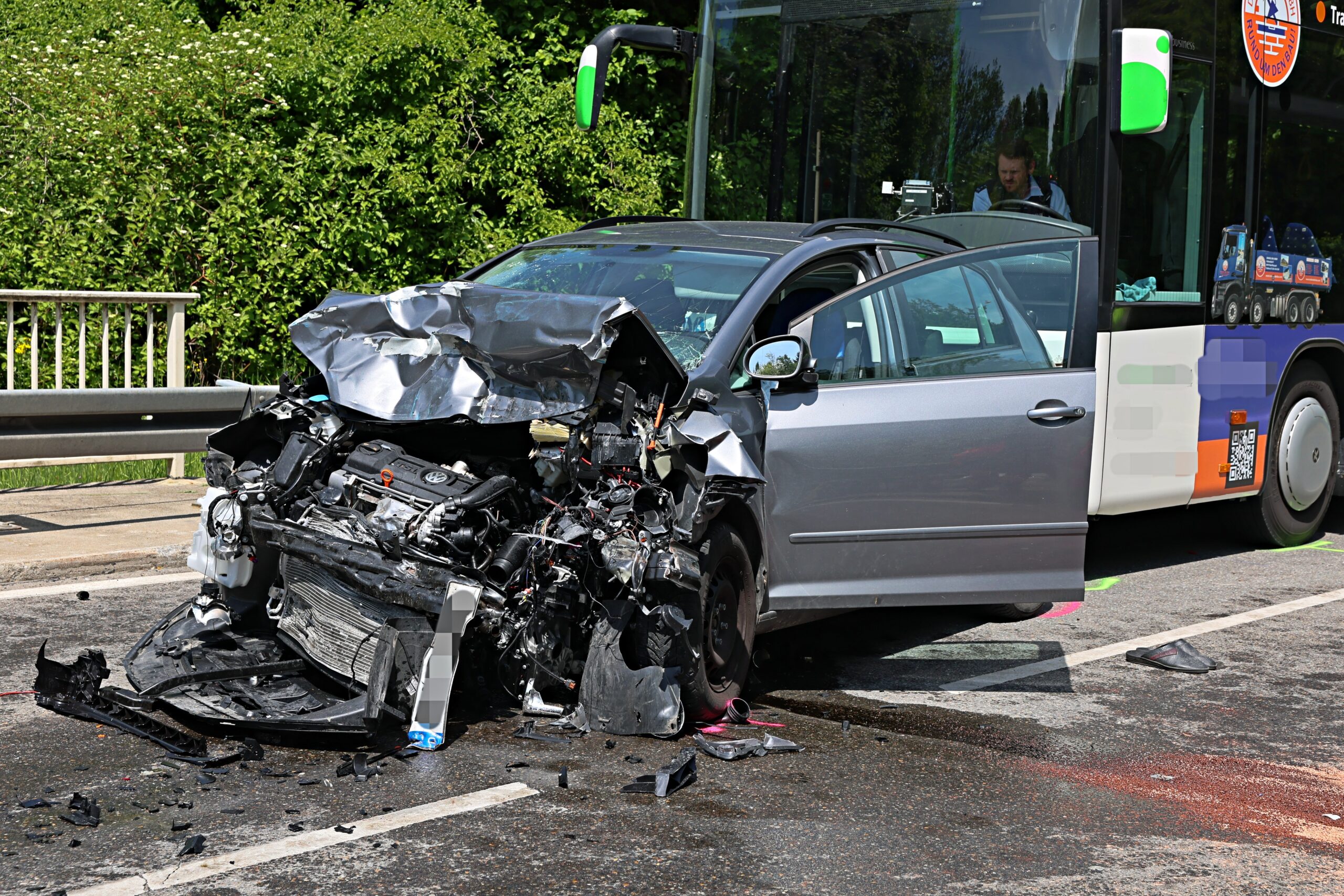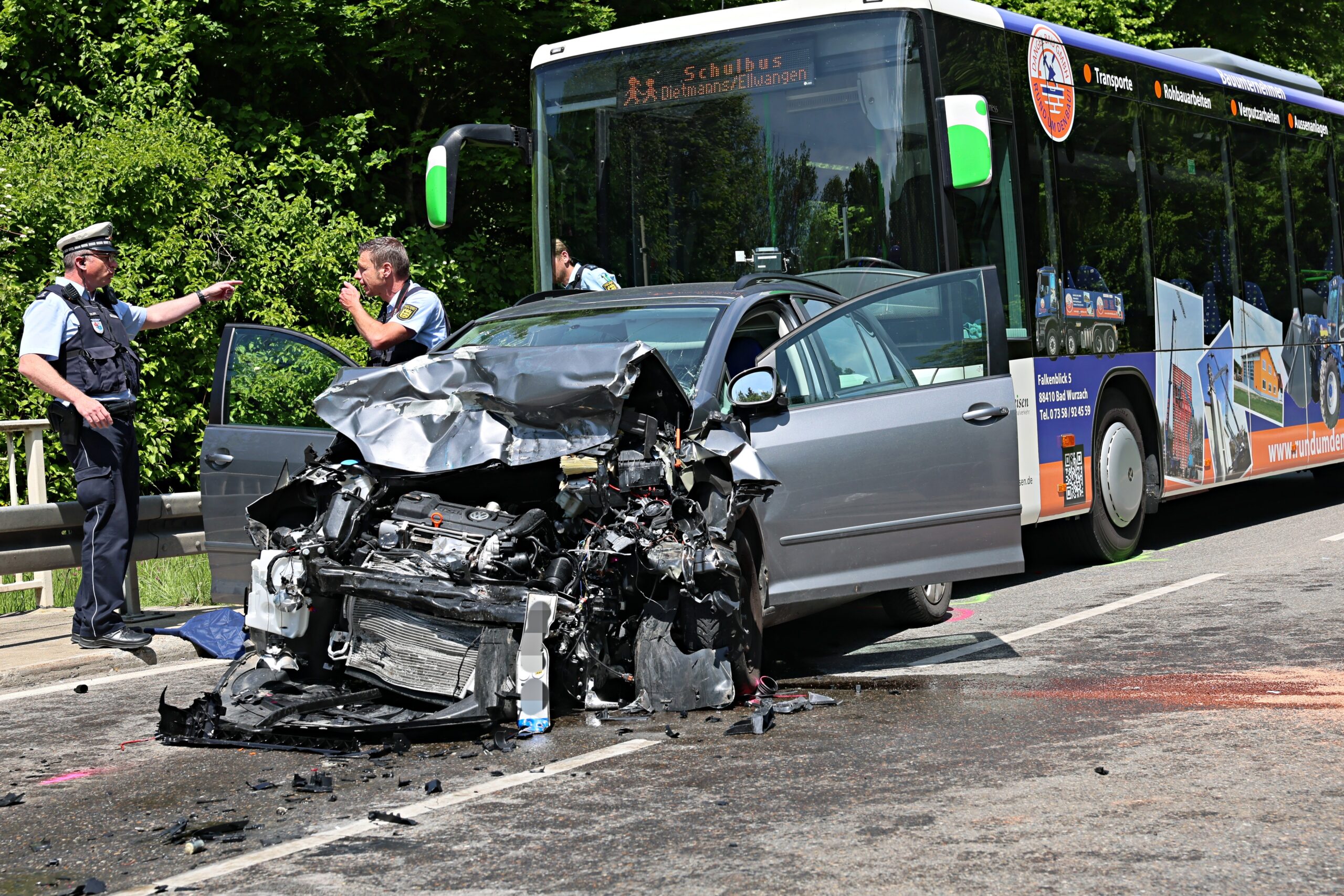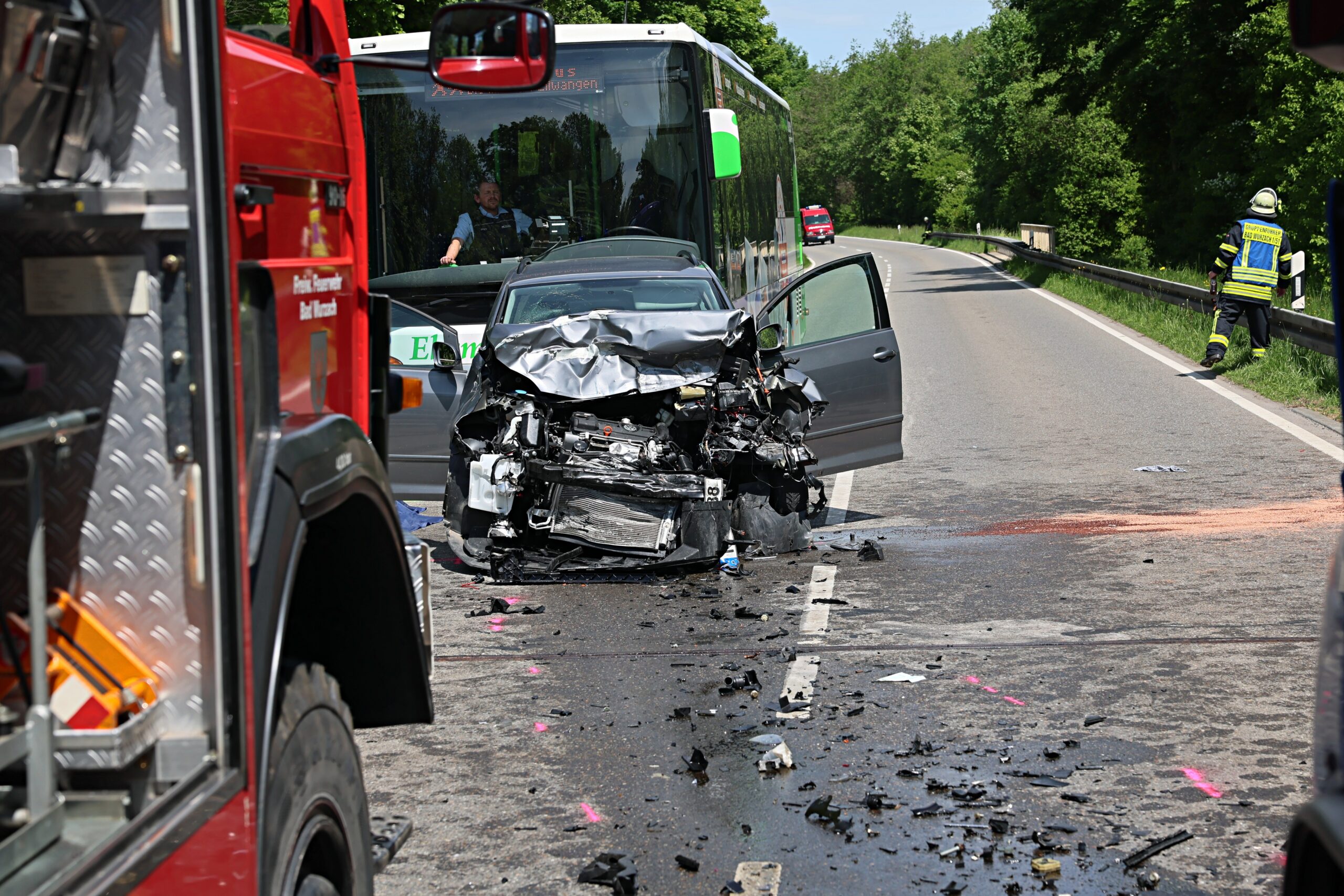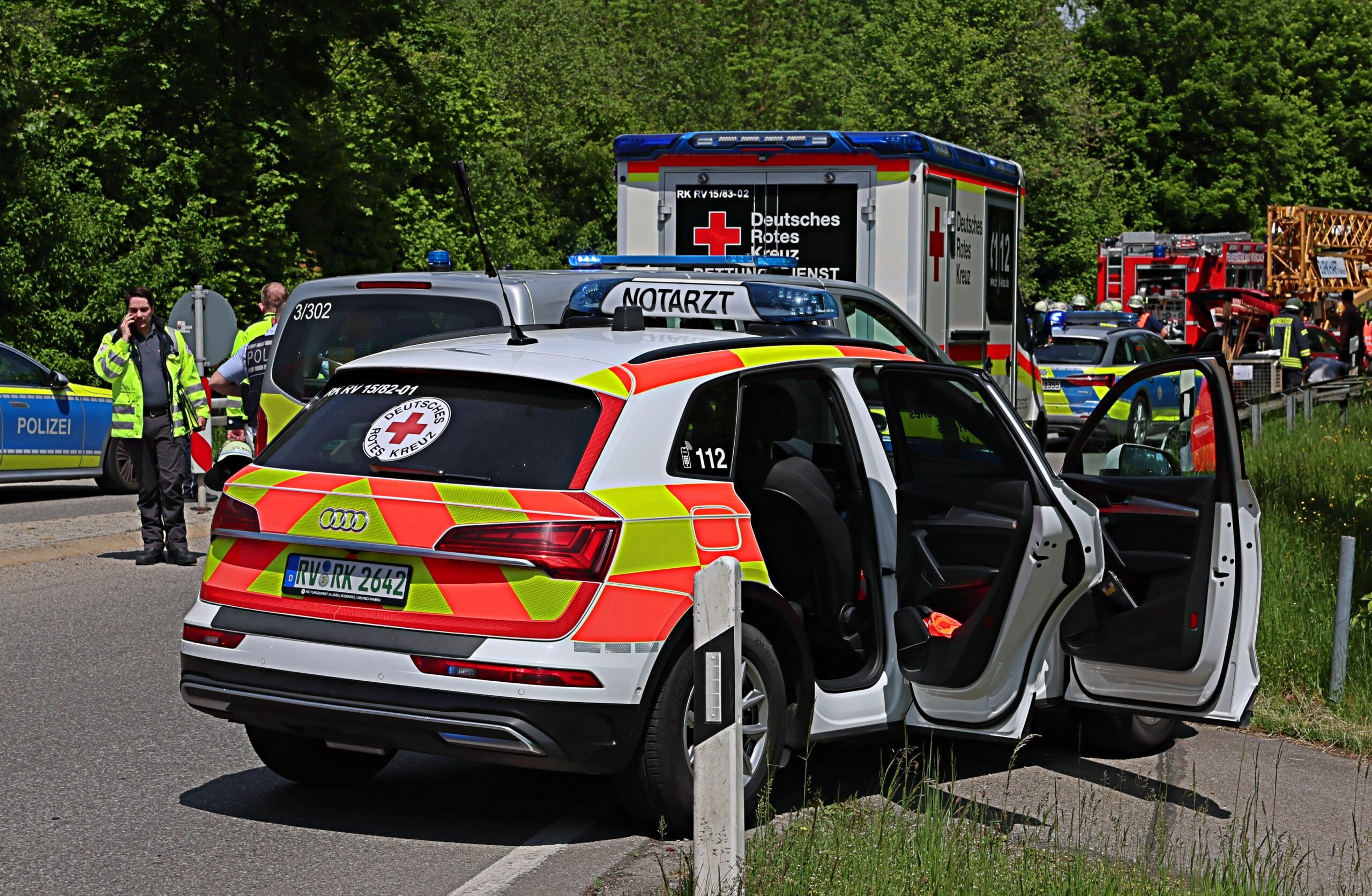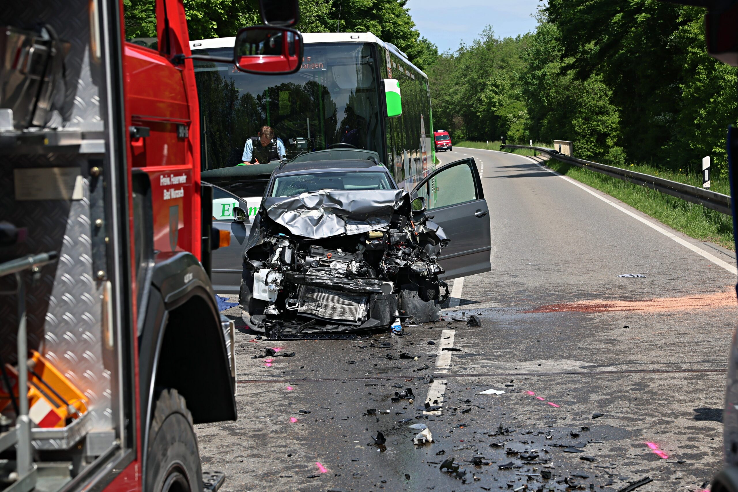 Bei einem schweren Verkehrsunfall am Dienstagnachmittag auf der L 314 bei Bad Wurzach sind eine 88-jährige Pkw-Insassin tödlich sowie drei weitere Personen zum Teil lebensbedrohlich verletzt worden. Den bisherigen Ermittlungen der Verkehrspolizei zufolge befuhr der 87-jährige Lenker eines VW Golf zusammen mit seiner ein Jahr älteren Beifahrerin kurz nach 13 Uhr die L 314 aus Richtung Aitrach kommend in Richtung Einmündung zur B 465. Wenige hundert Meter vor der Einmündung setzte der 87-Jährige zum Überholen eines Linienbusses an und übersah dabei offenbar einen ordnungsgemäß entgegenkommenden Lkw.