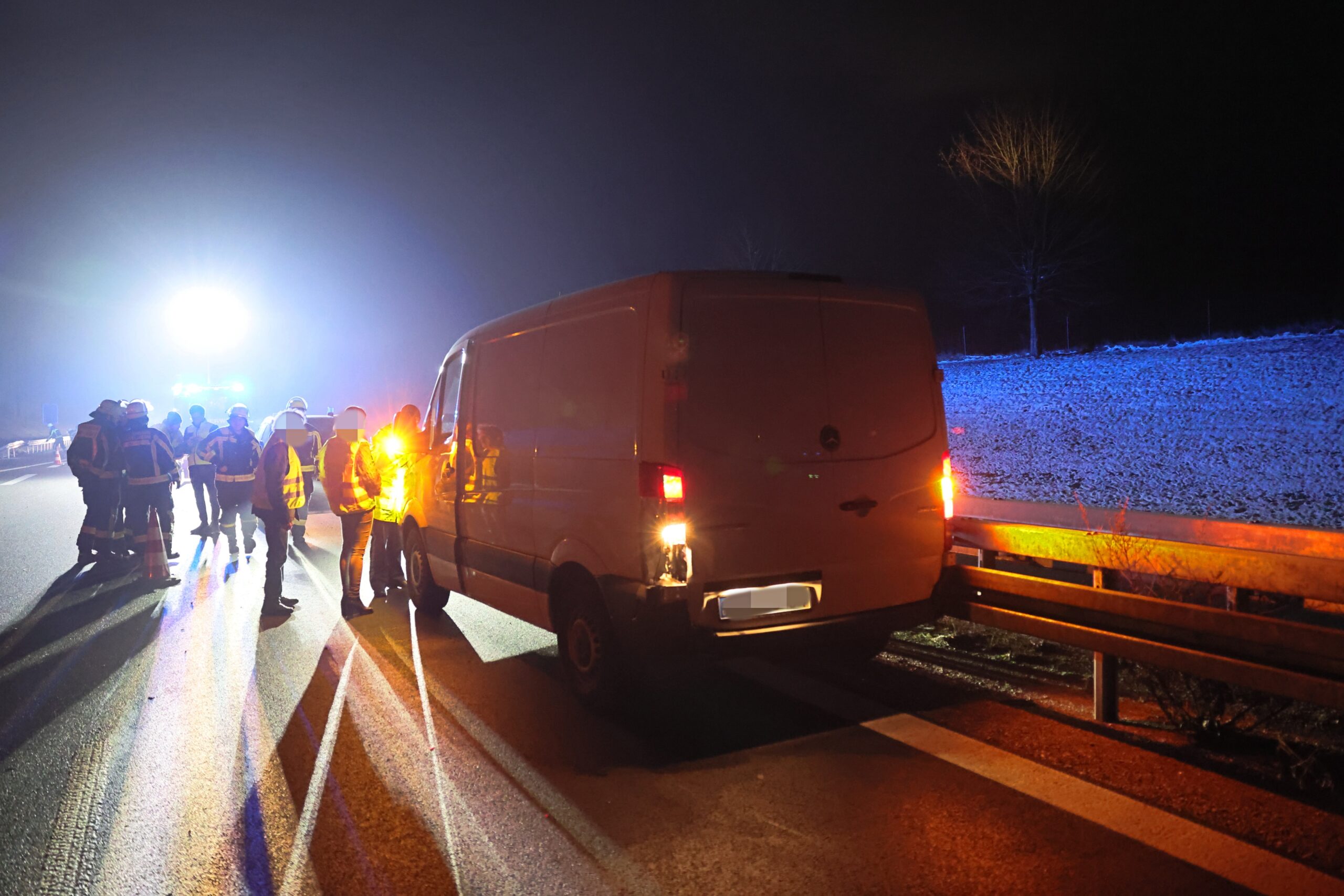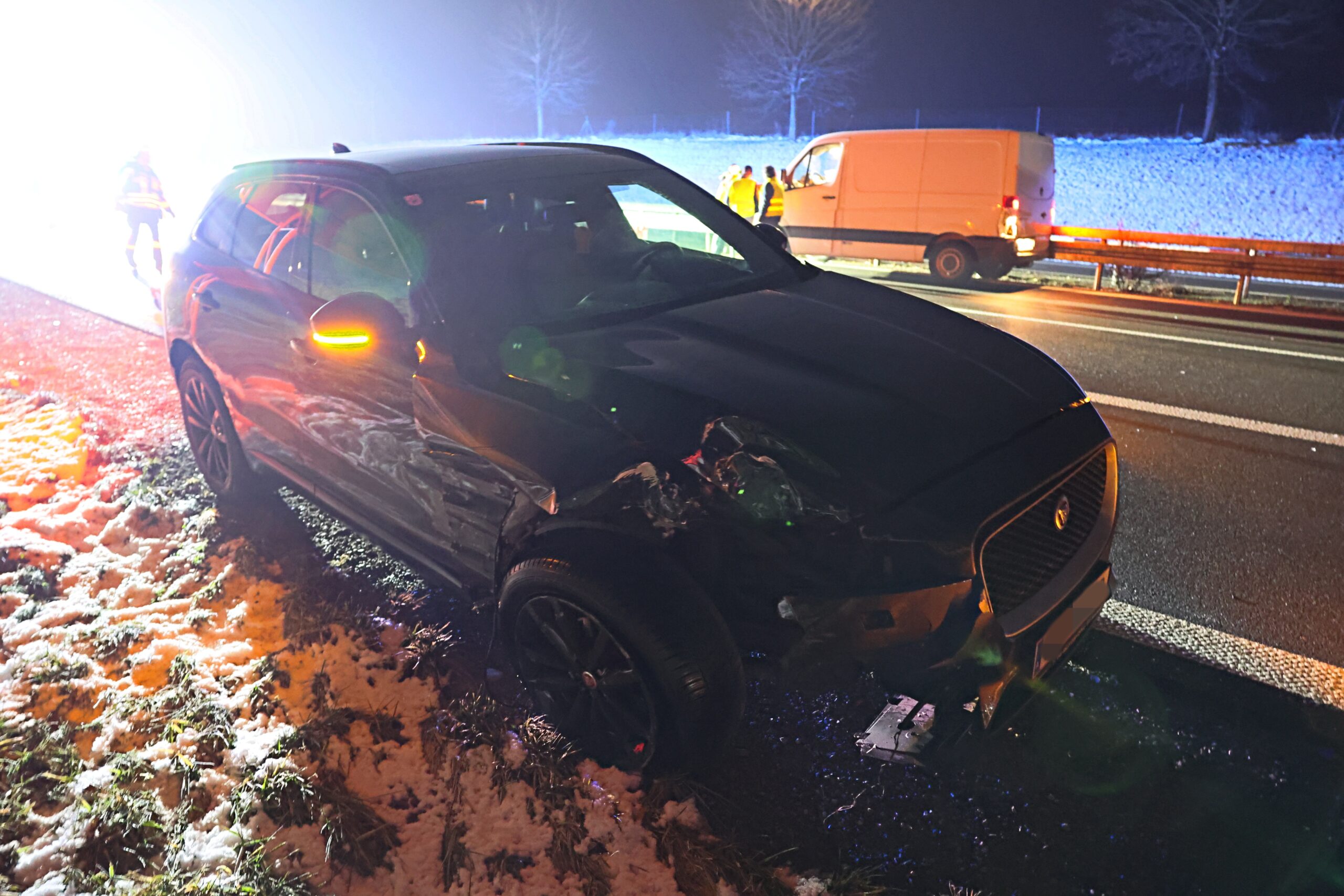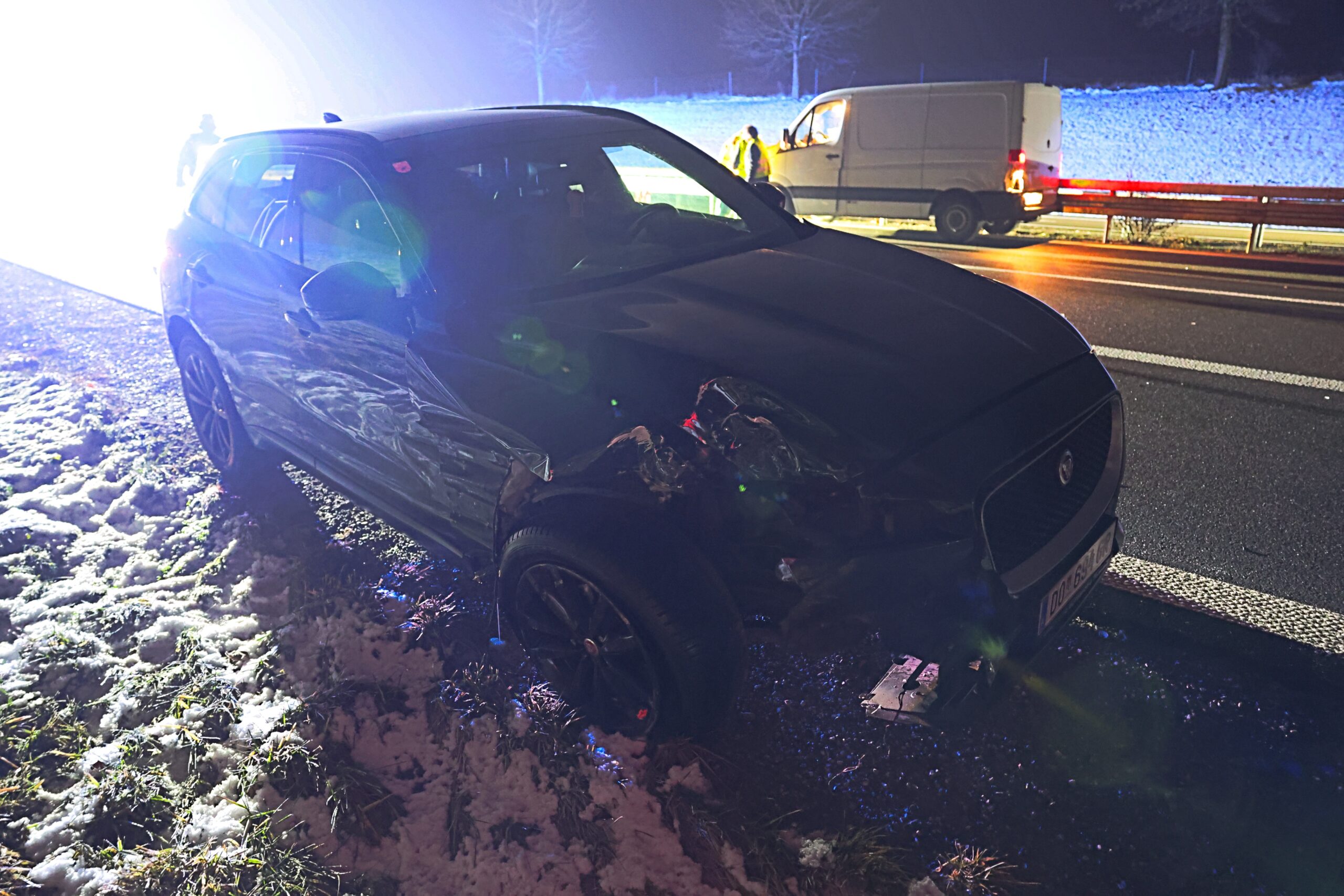 Der Transporter war nach dem Unfall noch fahrbereit und konnte seine Fahrt fortsetzen. Der Sportwagen hingegen musste abgeschleppt werden.