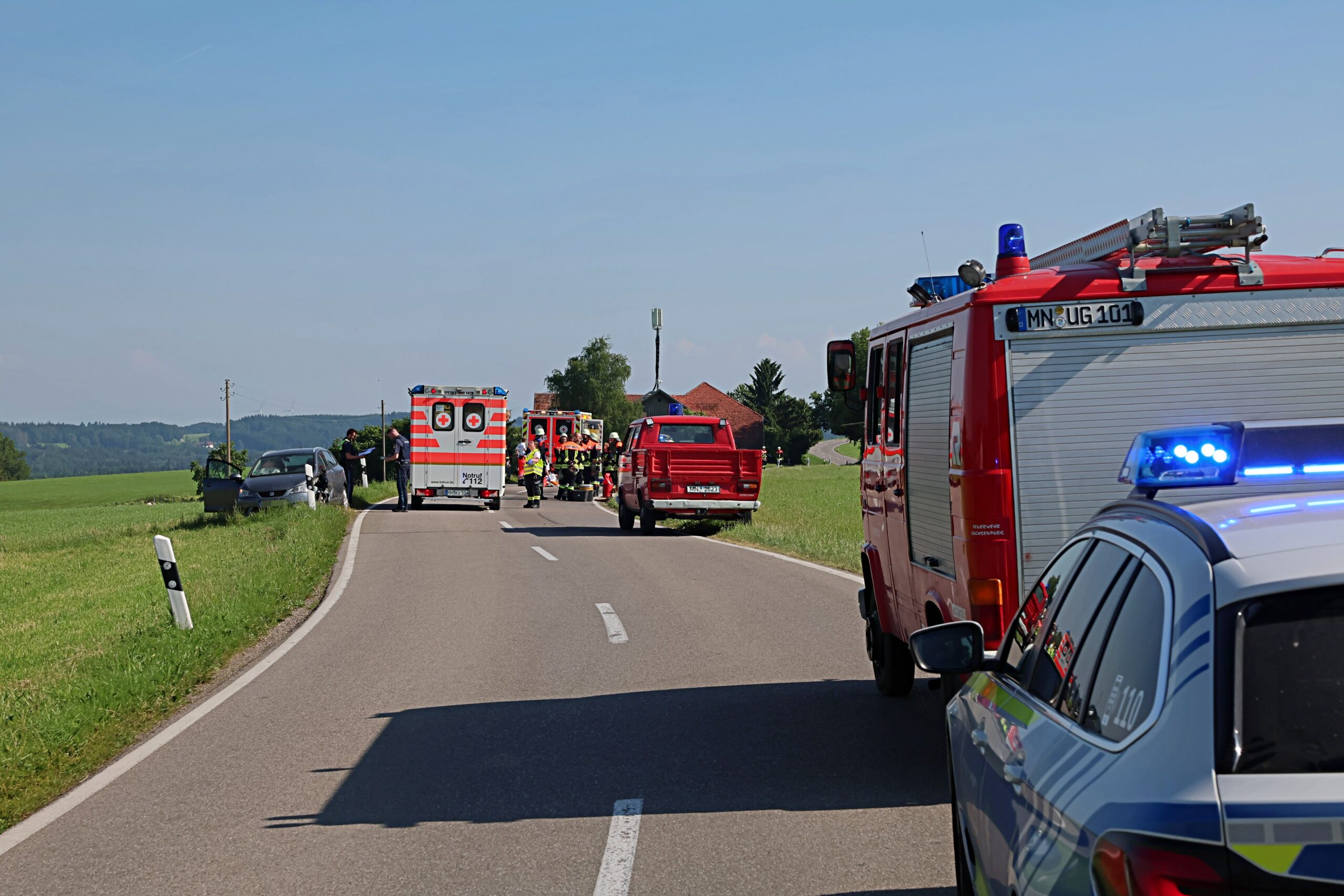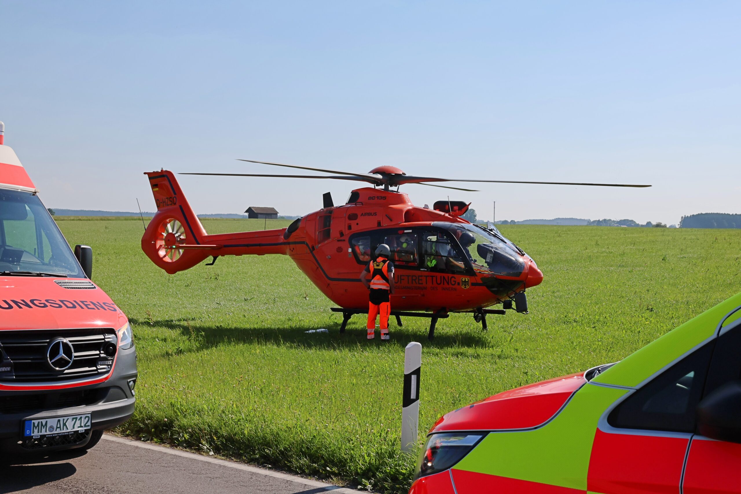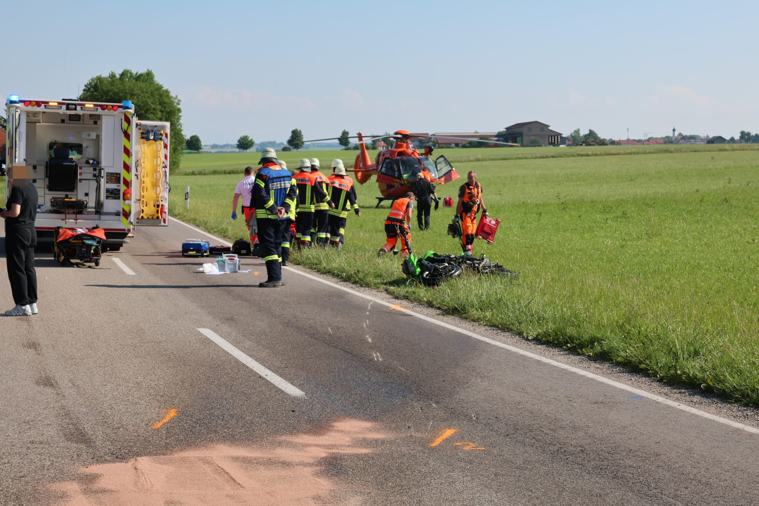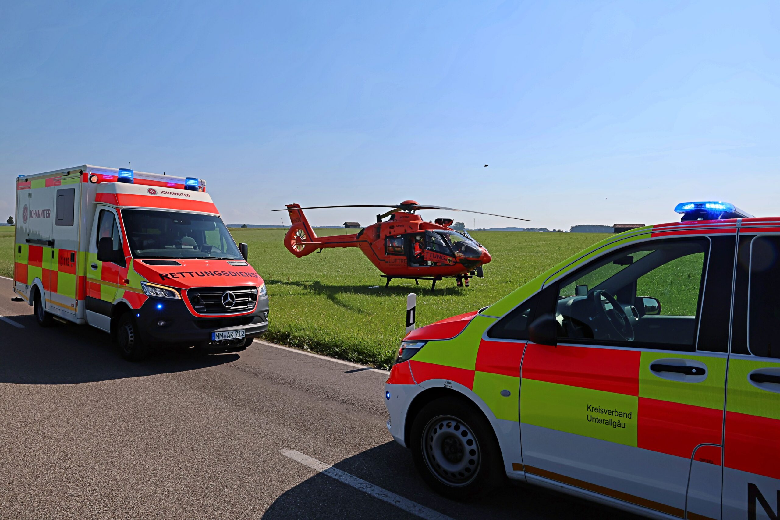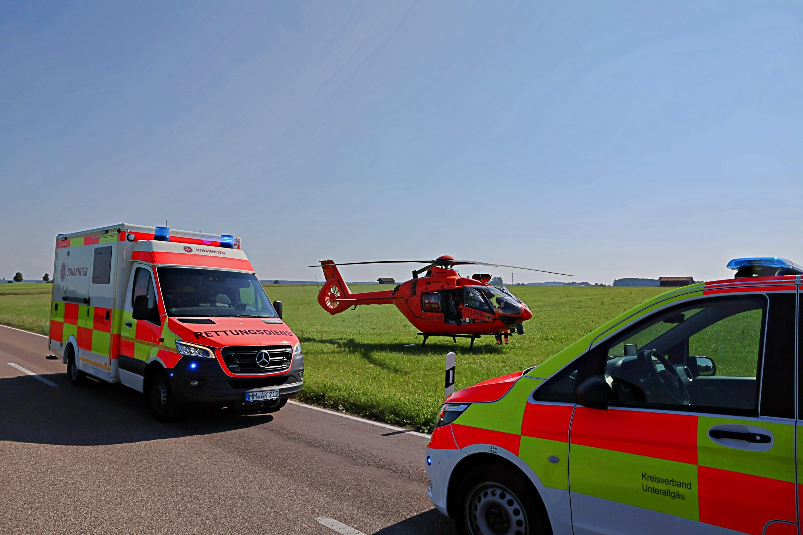 Einsatz Motorradfahrer Polizei rettungshubschrauber Unfall Unterallgäu