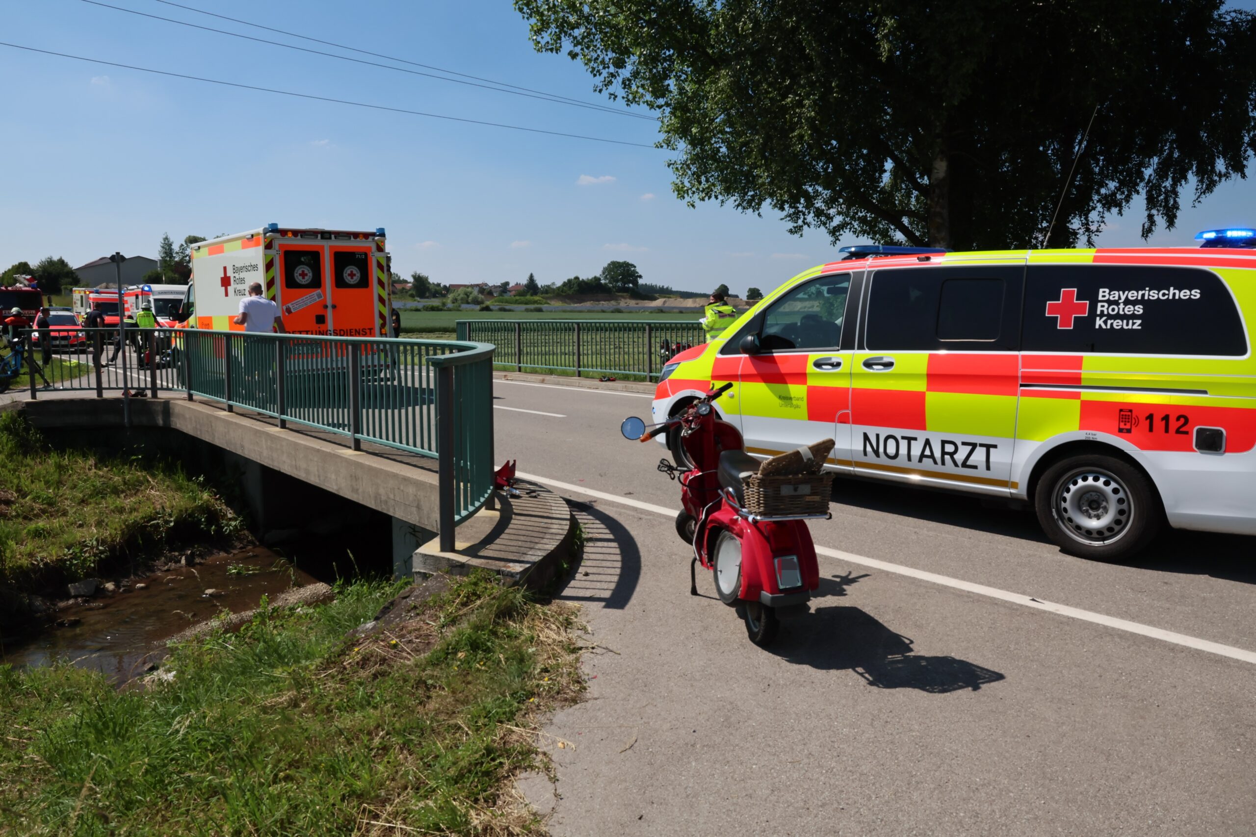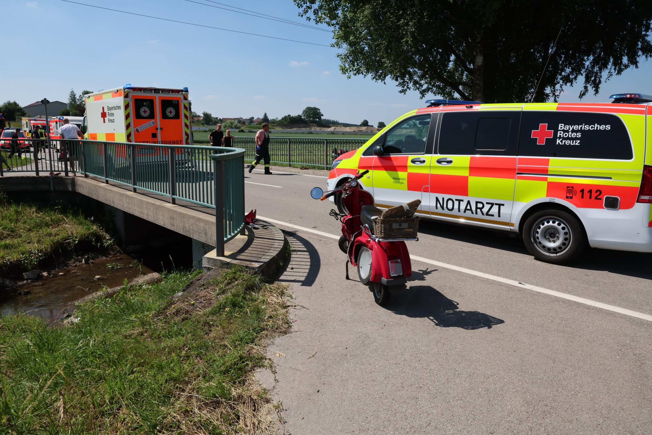 Am Donnerstag, den 19. Juni 2025, kam es gegen 15:10 Uhr auf der Strecke zwischen Saulengrain und Erisried zu einem schweren Verkehrsunfall. Ein 67-jähriger Motorradfahrer mit Sozius wollte eine sechsköpfige Rollergruppe überholen. Während des Überholmanövers bog der erste Mopedfahrer der Gruppe nach links ab, um zu wenden.