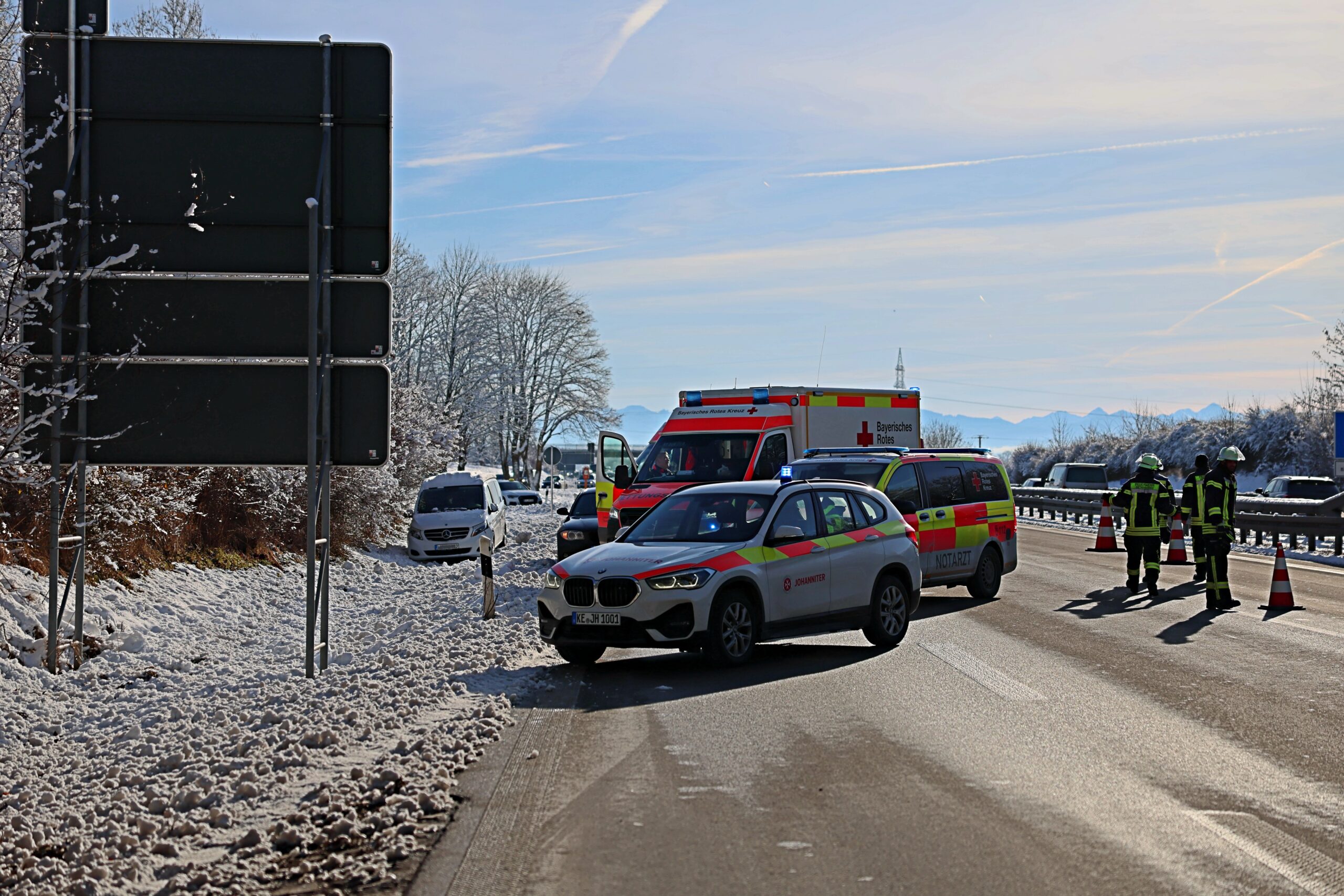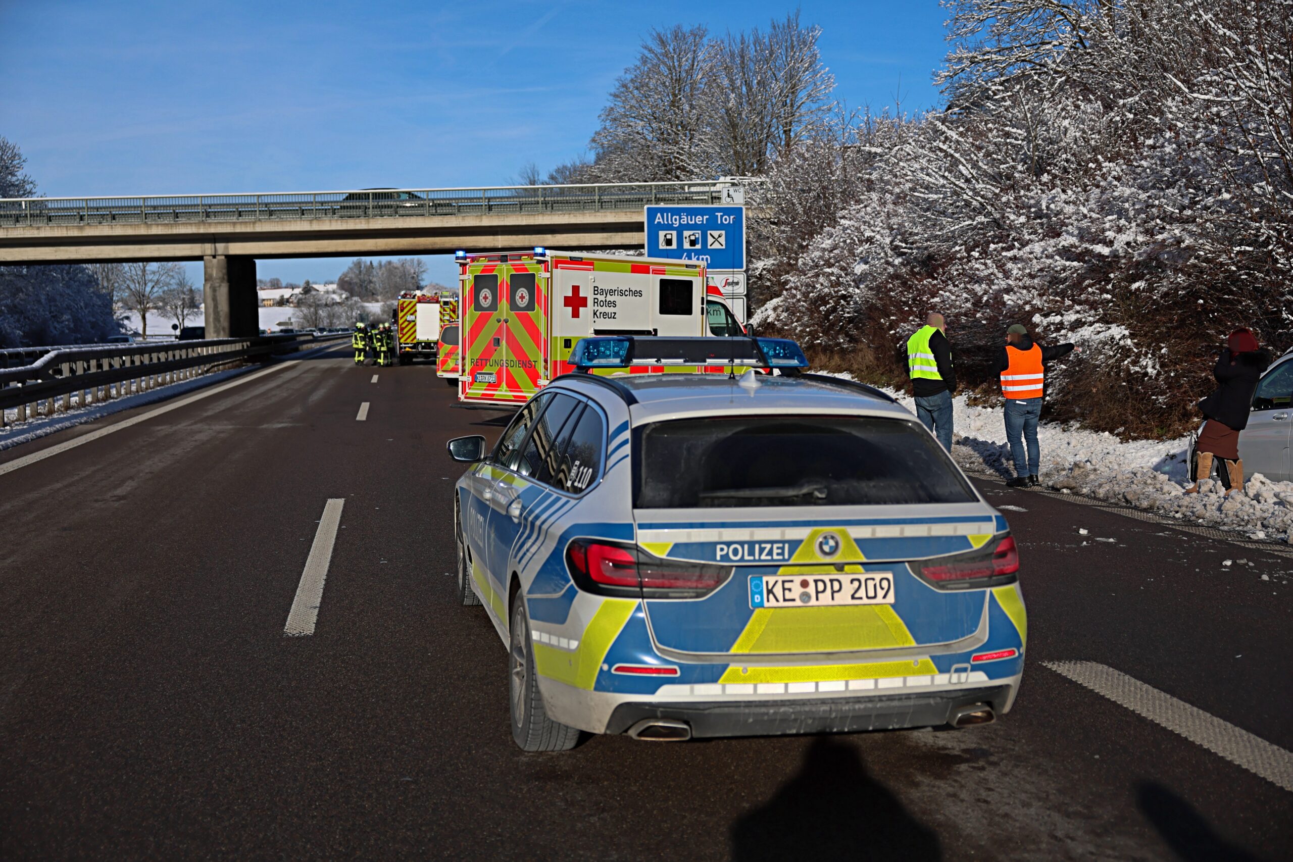 Ein nachfolgendes Auto versuchte, durch einen Fahrstreifenwechsel auszuweichen, kollidierte jedoch seitlich mit einem anderen Fahrzeug, das in den Graben geschoben wurde. Ein weiteres Auto konnte einen Zusammenstoß nicht mehr verhindern. Insgesamt wurden zwei Personen verletzt, der Sachschaden beläuft sich auf rund 40.000 Euro. Die Freiwilligen Feuerwehren Dietmannsried und Überbach waren mit 30 Einsatzkräften vor Ort. Die Autobahn war zeitweise komplett gesperrt.