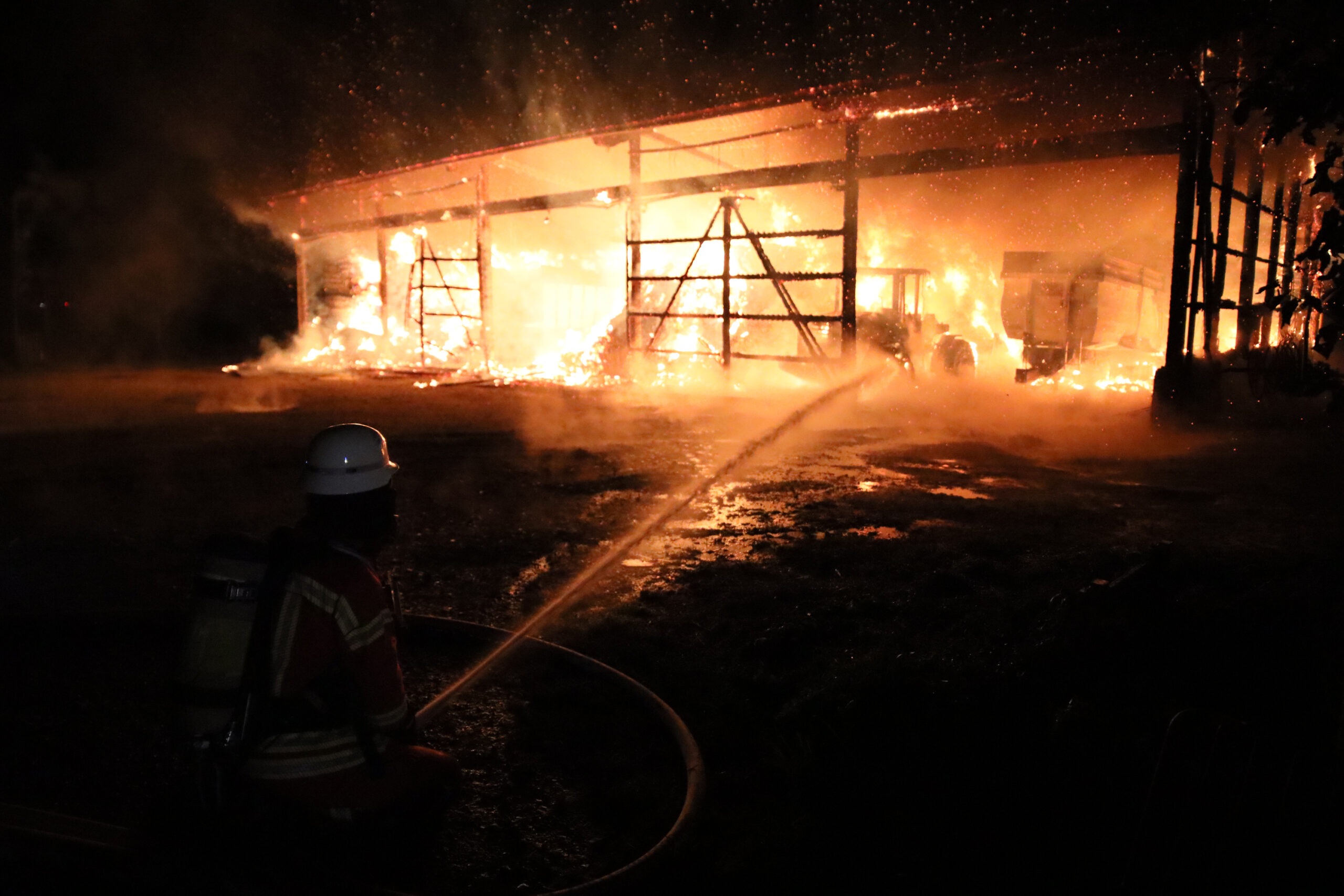 Rund 100 Feuerwehrleute aus den umliegenden Gemeinden waren mobilisiert worden, um das Feuer zu bekämpfen. Trotz ihres Einsatzes konnte die Halle nicht gerettet werden. Der Brand verursachte erhebliche Schäden, sowohl an der Gebäudestruktur als auch an den gelagerten Gütern.
