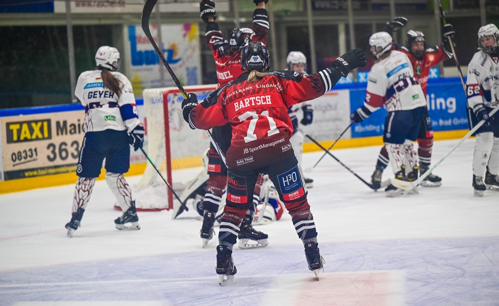 Die Eishockeyfrauen der Memminger Indians haben am vergangenen Wochenende eindrucksvoll sechs Punkte eingefahren. Zum ersten Mal in dieser Saison gelang es dem Team, an einem Wochenende beide Spiele zu gewinnen. Am Samstag setzte sich der Meister in einem spannenden und hart umkämpften Spiel mit 5:4 gegen die Eisbären Berlin durch. Am Sonntag folgte ein souveräner 3:0-Erfolg. Damit stehen die Memmingerinnen mit 21 Punkten auf dem dritten Tabellenplatz und haben nur noch zwei Punkte Rückstand auf die Eisbären Juniors (23 Punkte) und drei auf Tabellenführer Budapest (24 Punkte).